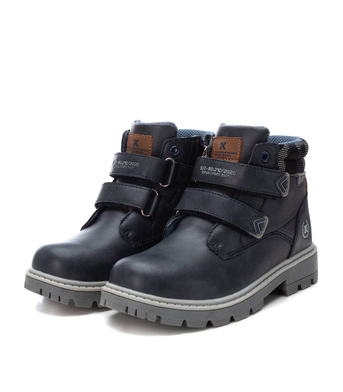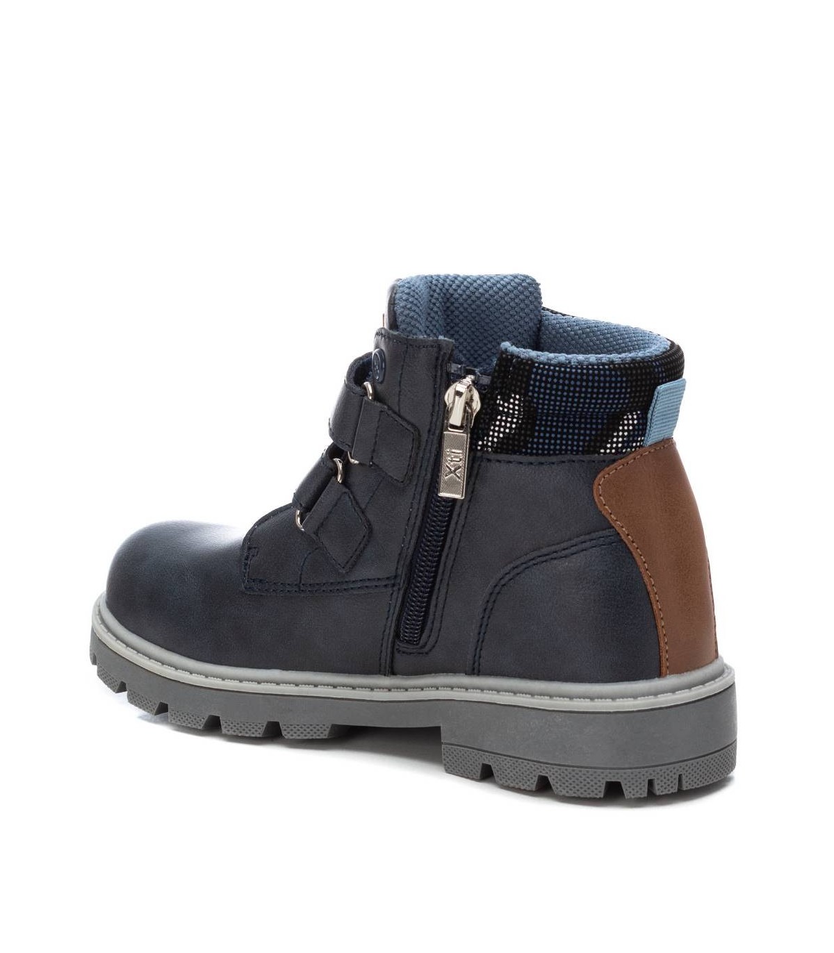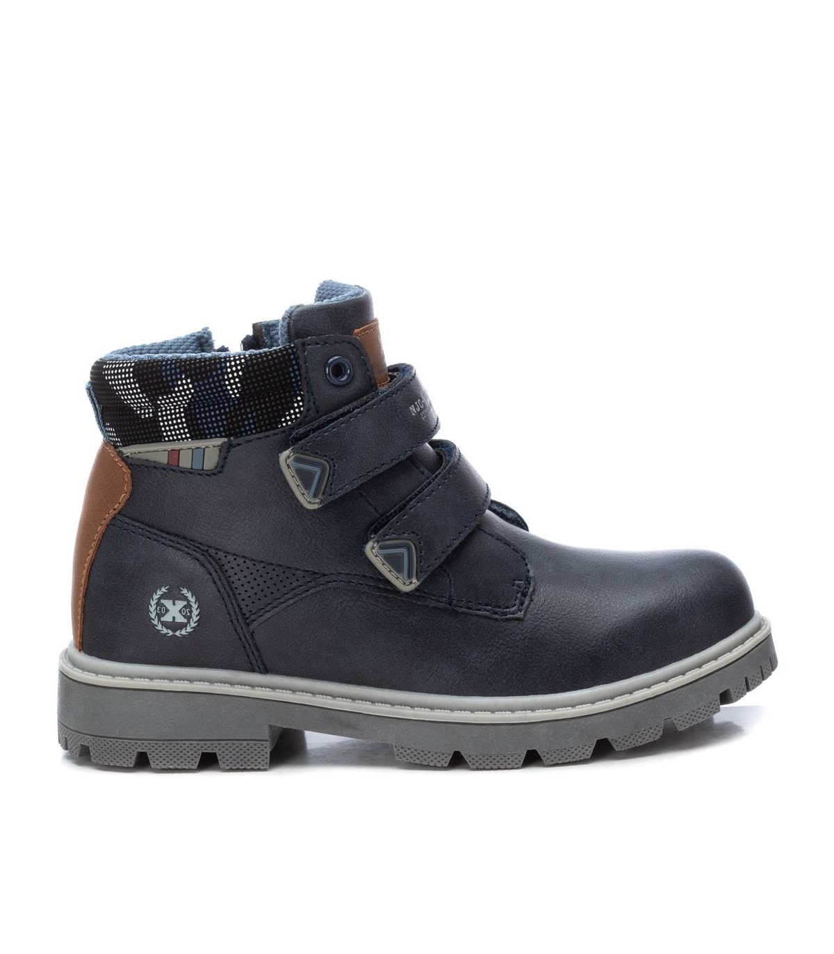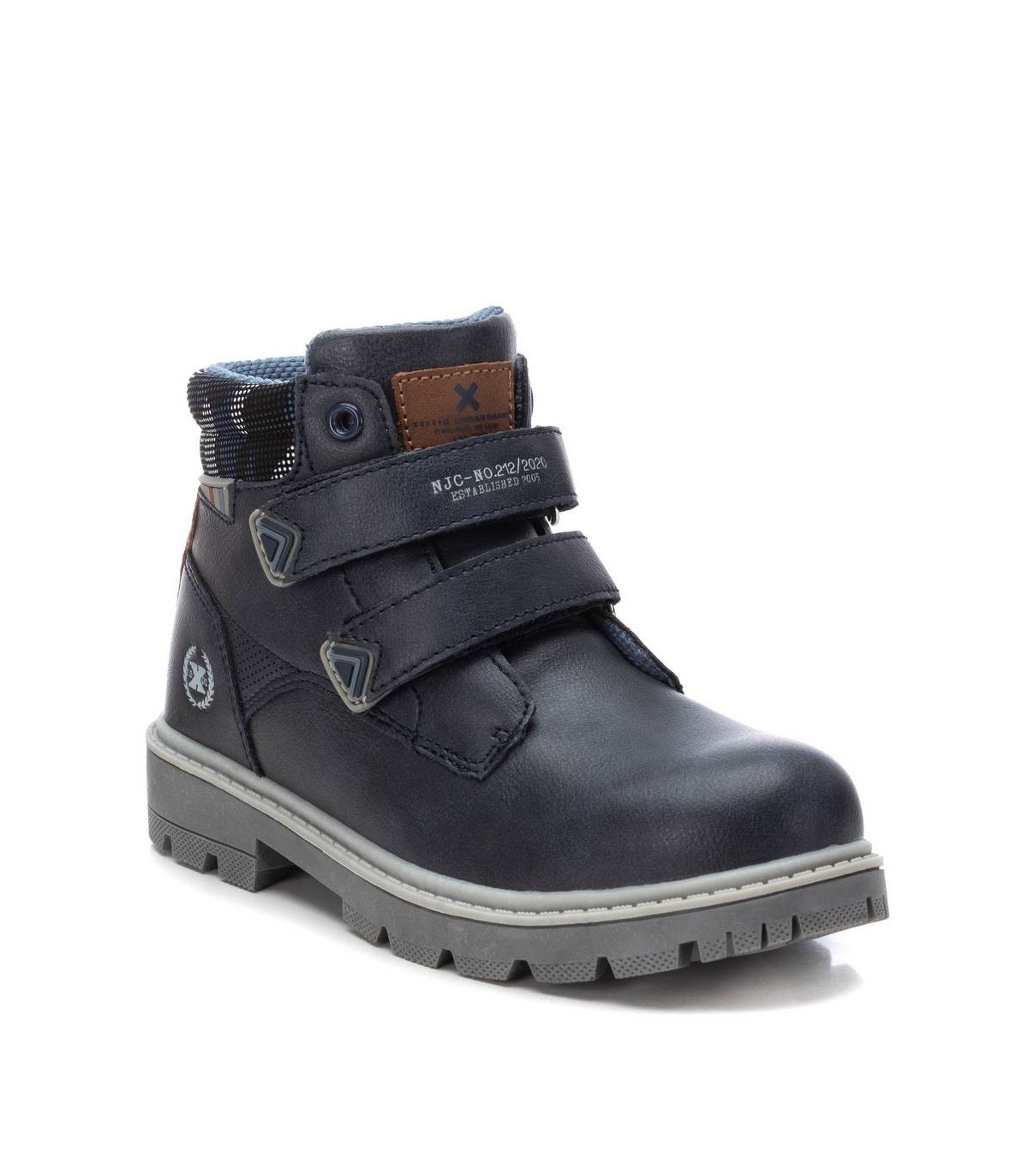 Botín de niño, de la marca Xti Kids. Fabricado en material que imita a la piel con collarín acolchado para mayor confort. Cierre mediante tiras adherentes. Tirador trasero para facilitar la puesta. Gruesa suela de goma antideslizante, perfecta para todos los terrenos. Este modelo ha obtenido el certificado vegano por la organización mundial PETA (Organización de los derechos de los animales).