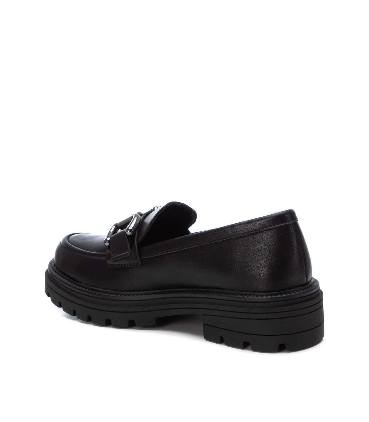 Mocasín de niña, de la marca Xti Kids. Fabricada en material que imita a la piel con adorno metálico. Cómoda planta y suela de goma antideslizante. Este modelo ha obtenido el certificado vegano por la organización mundial PETA (Organización de los derechos de los animales).