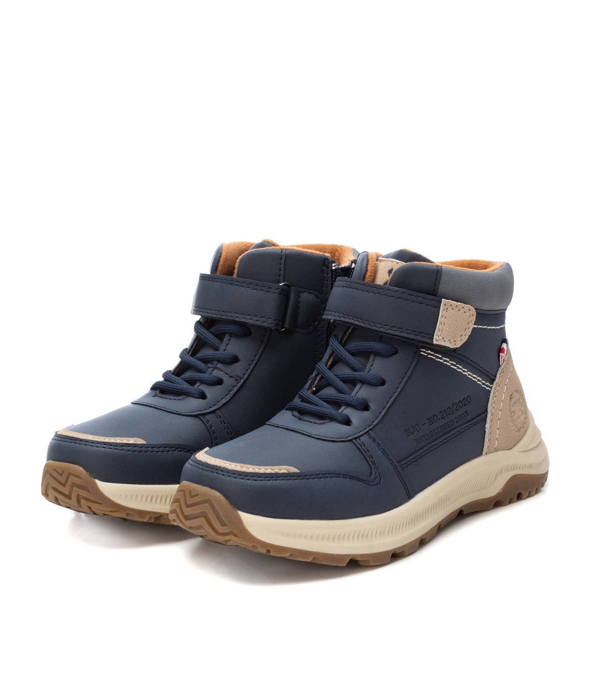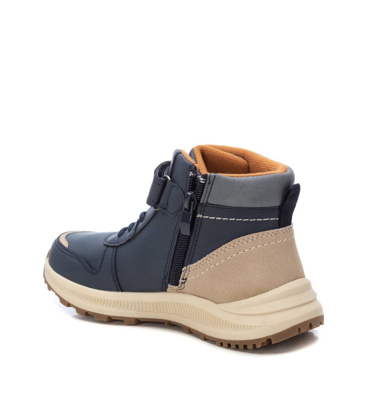 Botín casual de niño, de la marca Xti Kids. Fabricado en material que imita la piel. Con cierre de cremallera interior facilitando el uso y comodidad para el peque. Además de velcro para un mejor ajuste. Suelo de goma antideslizante. Con plantilla extraíble. Este modelo ha obtenido el certificado vegano por la organización mundial PETA (Organización de los derechos de los animales).