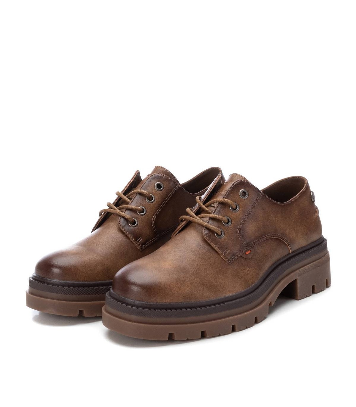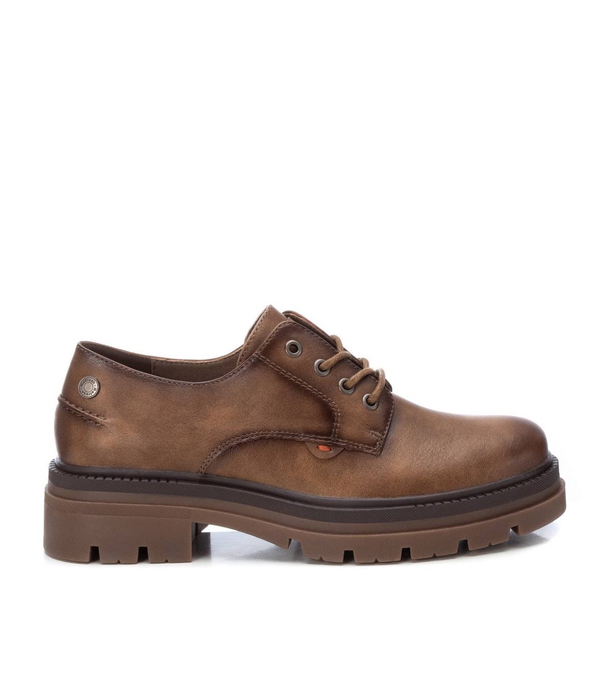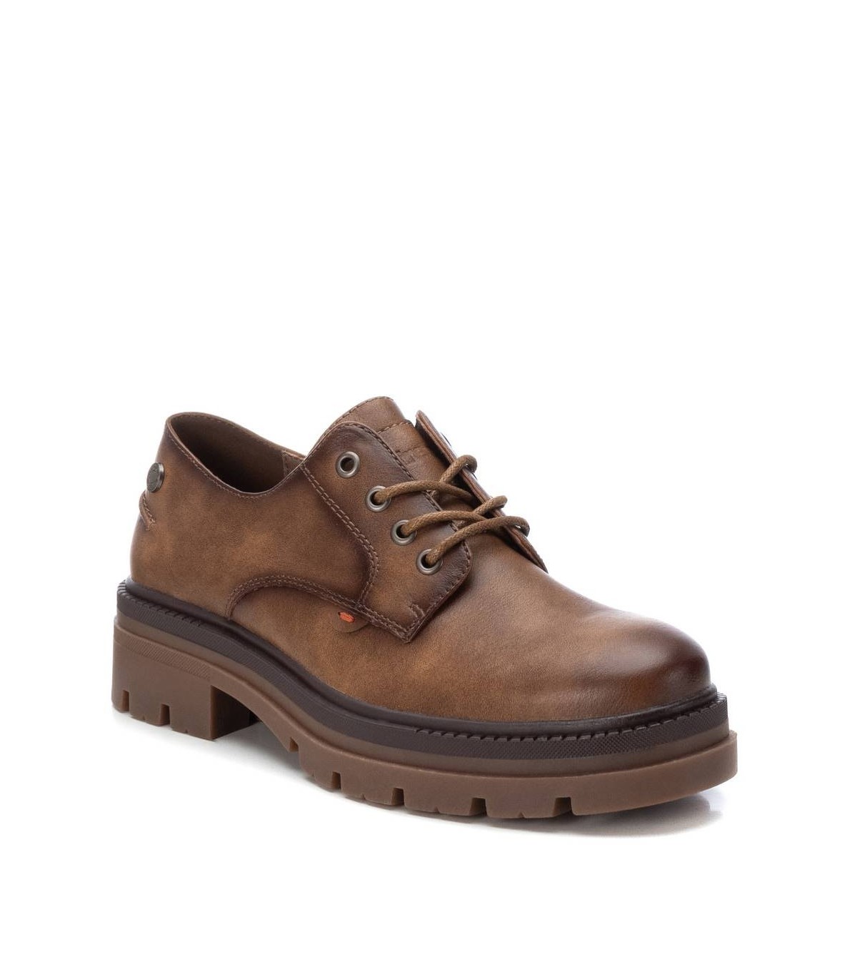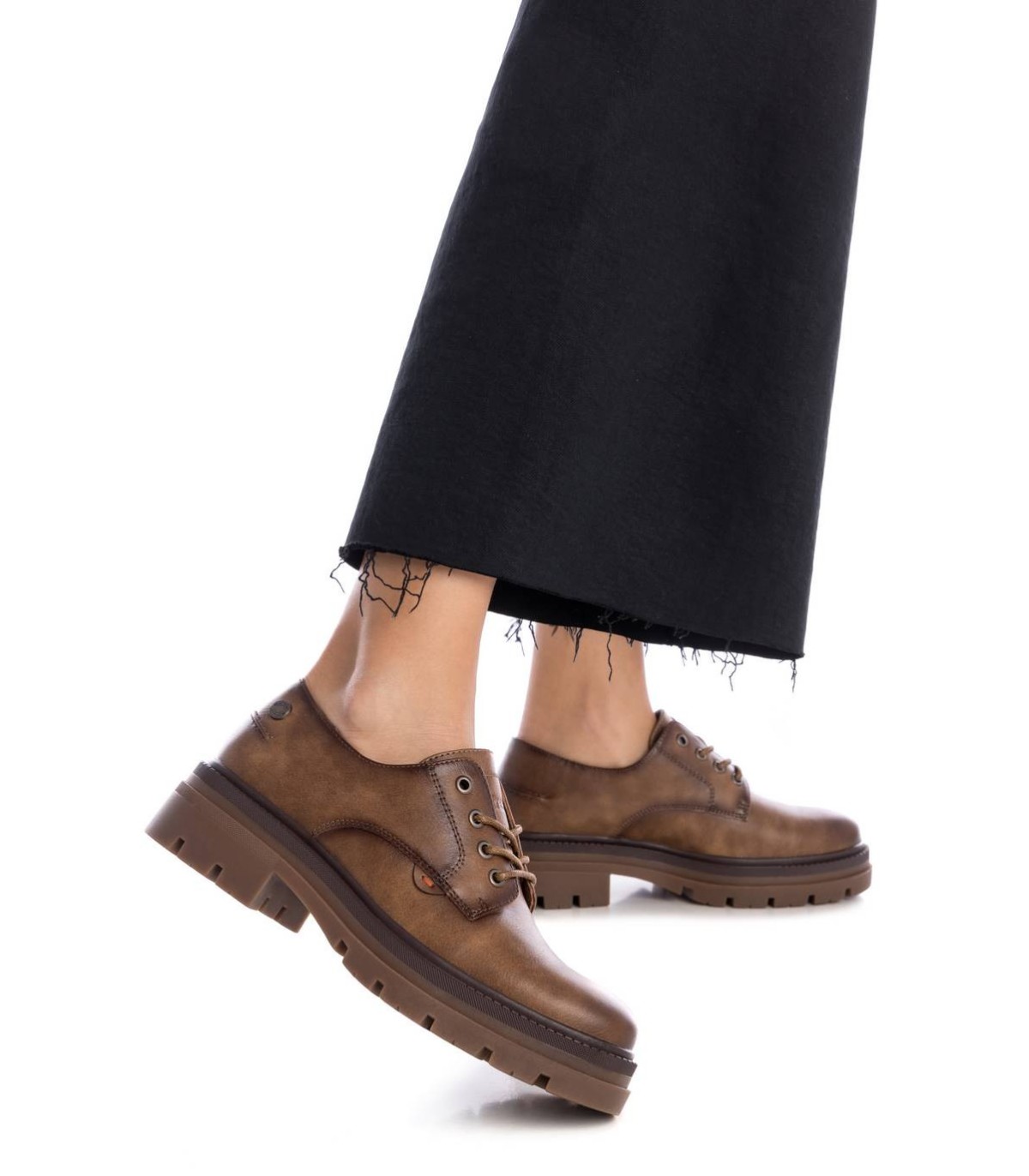 Mocasín de mujer, de la marca Refresh. Fabricado en un material que imita la piel. Cierre mediante cordones ajustables. Suela volumen de goma antideslizante. Básico de invierno. Este modelo ha obtenido el certificado vegano por la organización mundial PETA (Organización de los derechos de los animales).