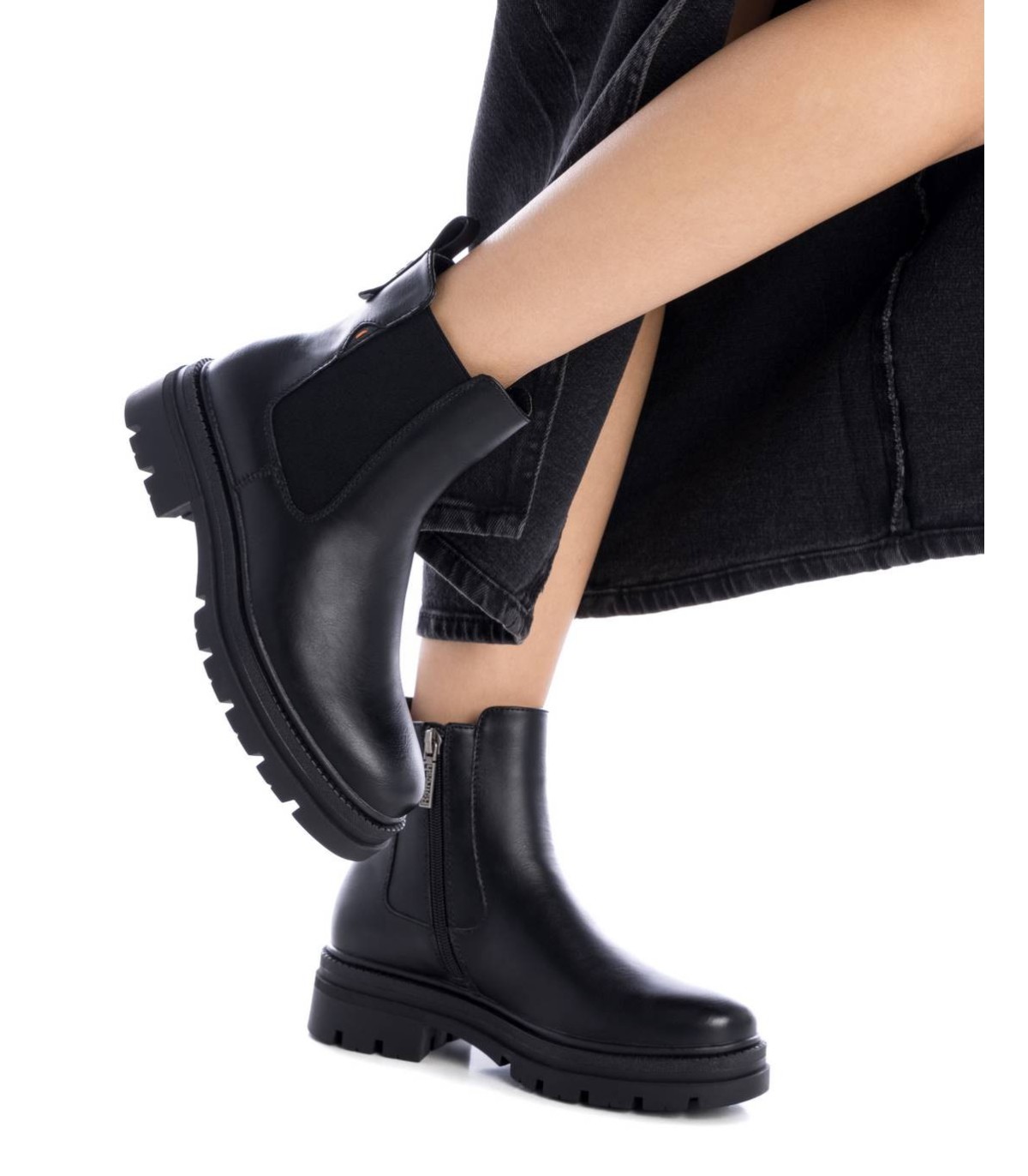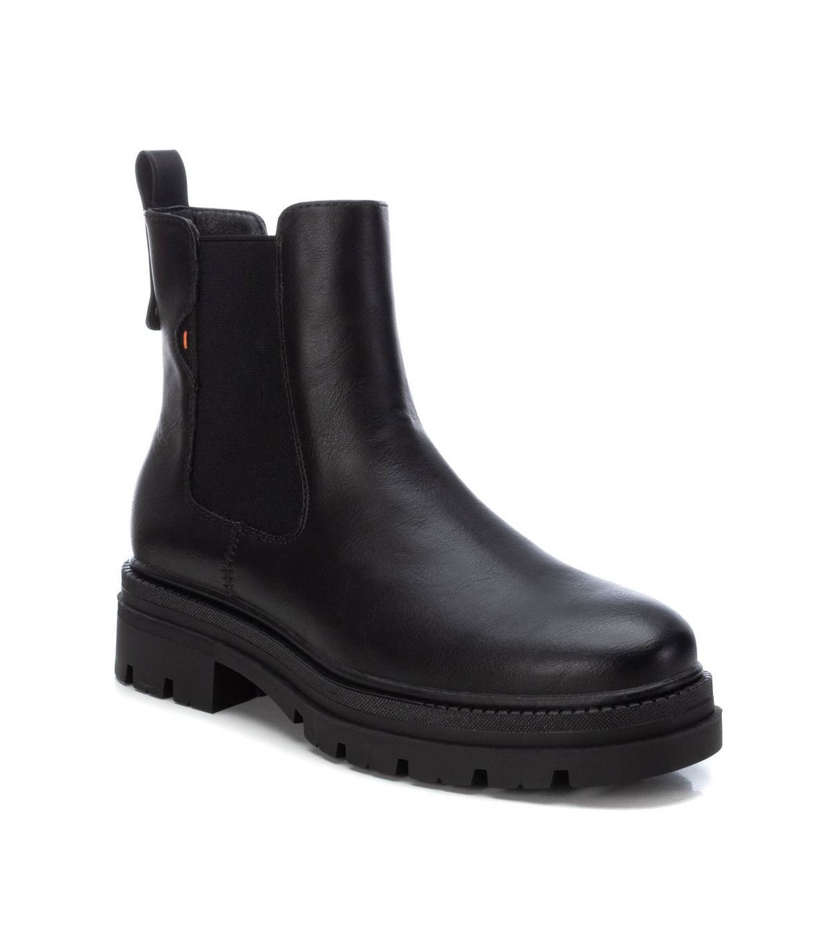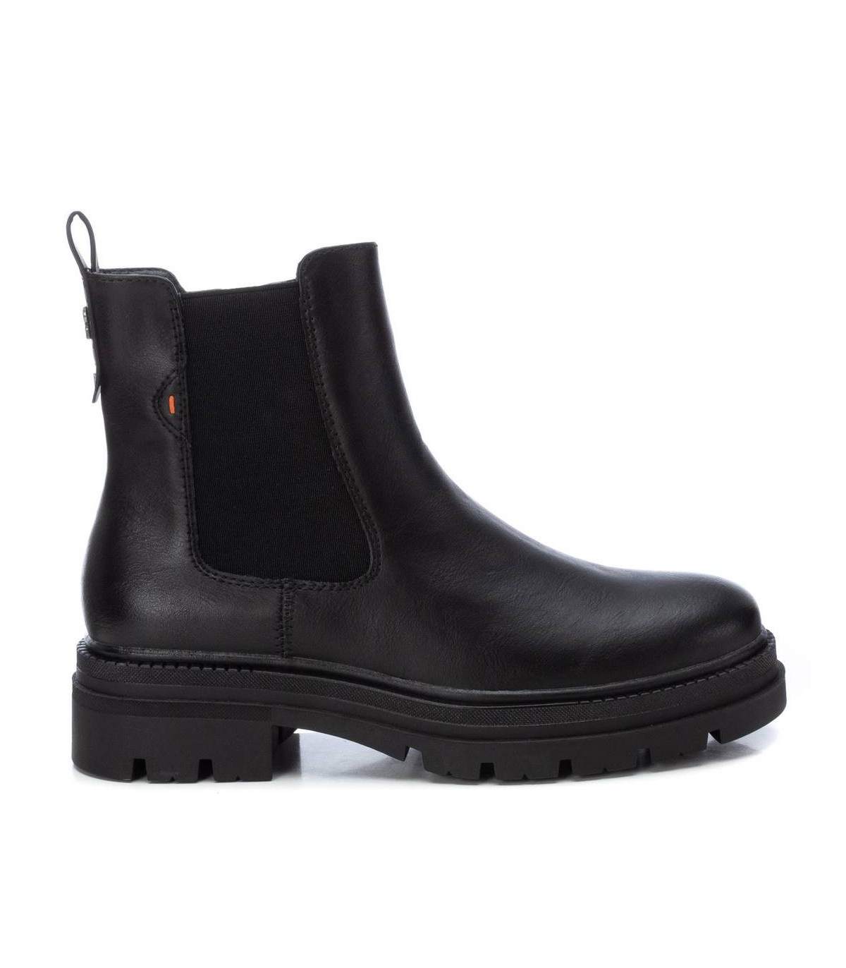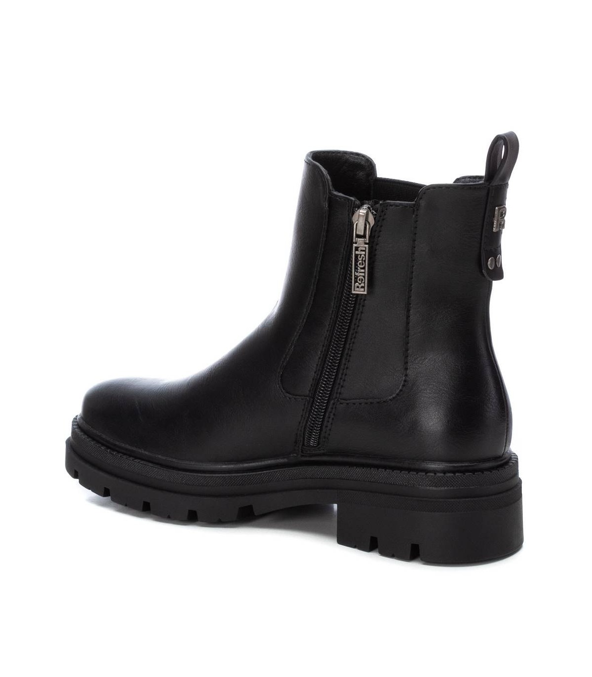 Botín de mujer, de la marca Refresh. Fabricado en un material que imita la piel. Cierre cremallera lateral. Botín tipo Chelsea con elástico lateral y tirador trasero para facilitar la puesta. Suela de volumen antideslizante. Este modelo ha obtenido el certificado vegano por la organización mundial PETA (Organización de los derechos de los animales).