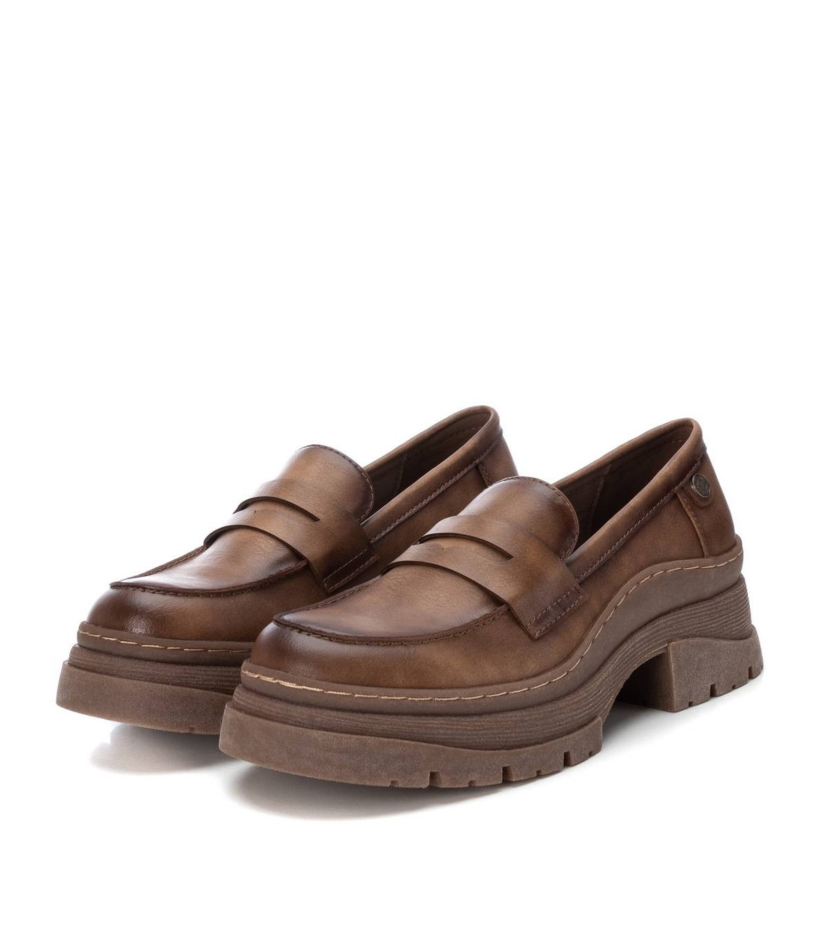 Mocasín de mujer, de la marca Refresh. Fabricado en un material que imita la piel. Detalle antifaz clásico que aporta un toque sofisticado. Suela gruesa de goma antideslizante. Este modelo ha obtenido el certificado vegano por la organización mundial PETA (Organización de los derechos de los animales).