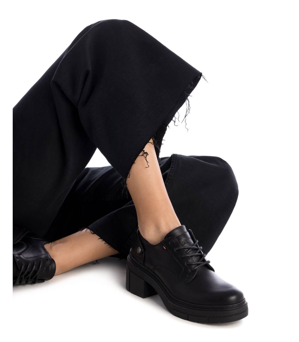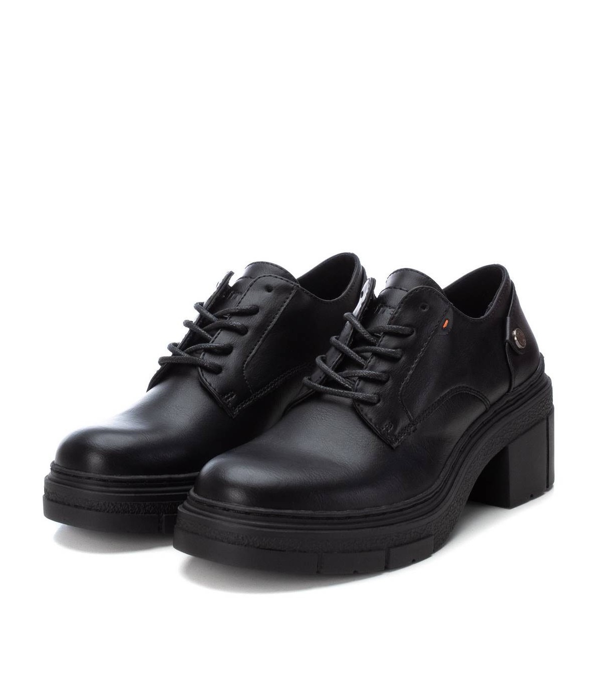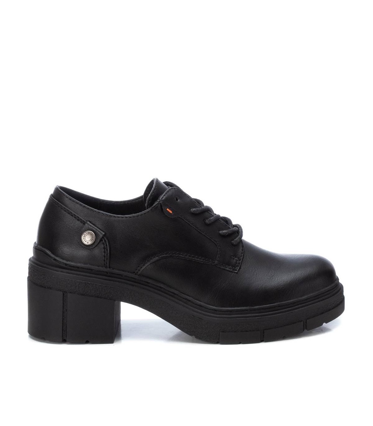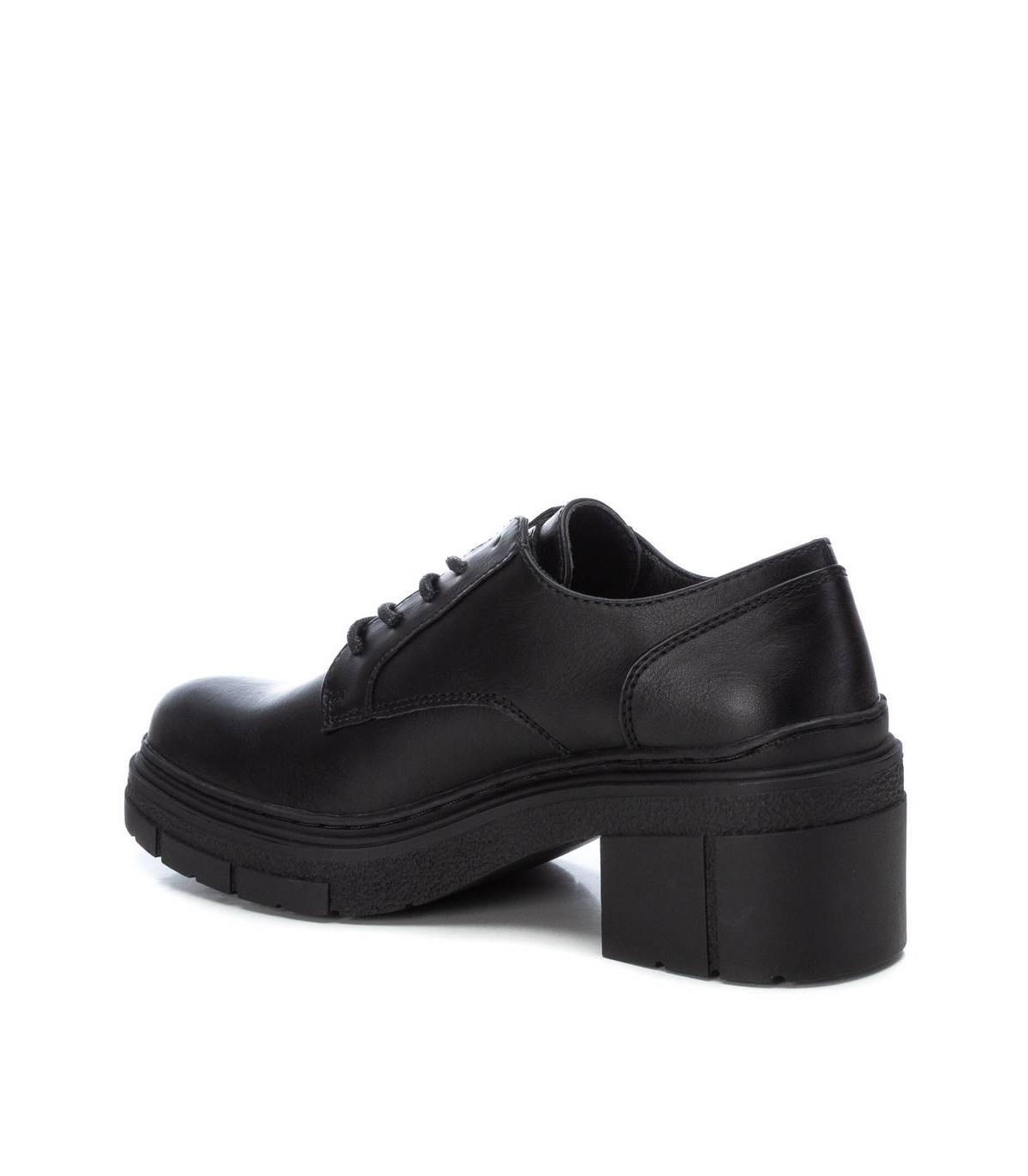 Mocasín de mujer, de la marca Refresh. Fabricado en un material que imita la piel. Cierre mediante cordones que aportan un toque sofisticado. Suela gruesa de goma antideslizante. Este modelo ha obtenido el certificado vegano por la organización mundial PETA (Organización de los derechos de los animales).