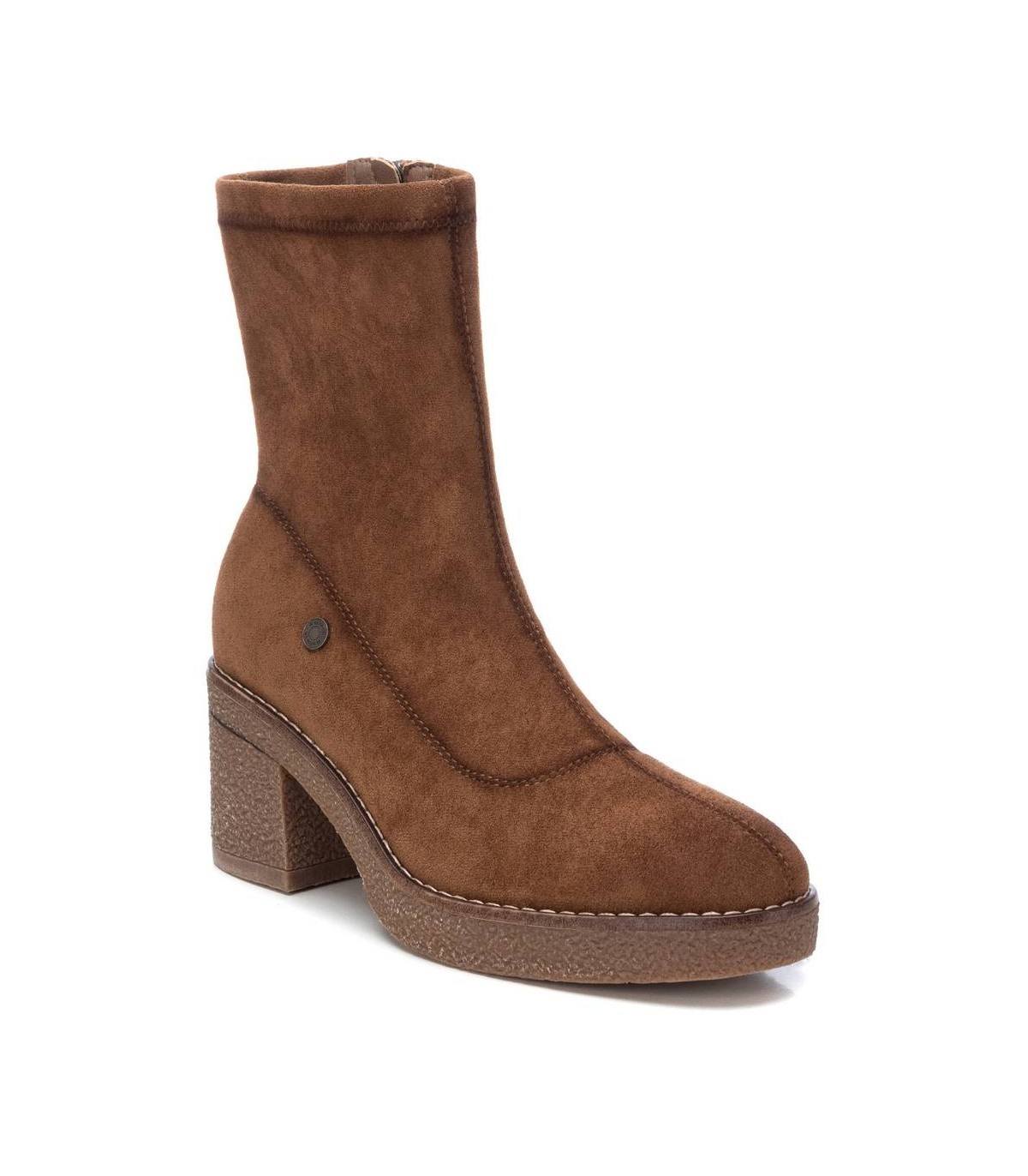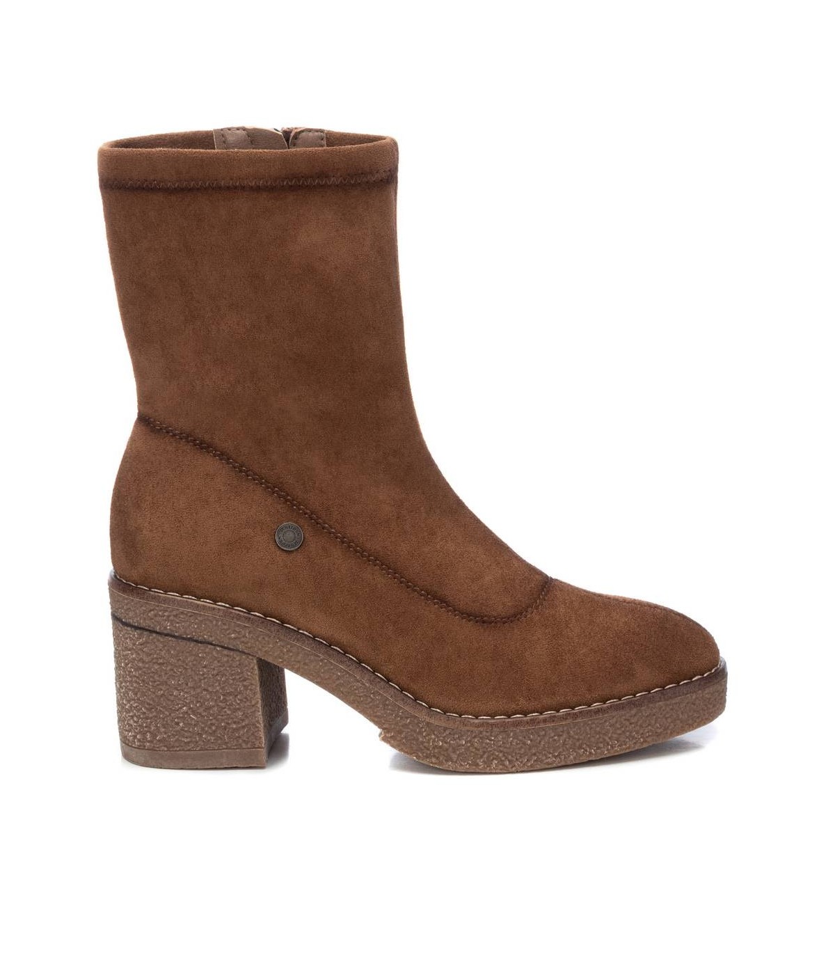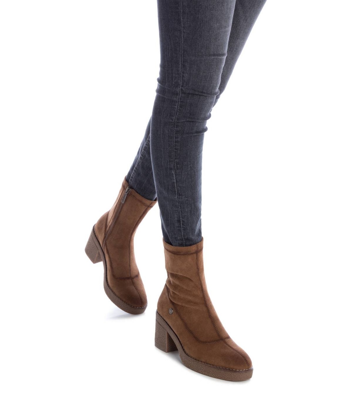Botín de mujer, de la marca Refresh. Fabricado en una suave antelina. Cierre mediante cremallera lateral. Suela volumen antideslizante. Un modelo básico para tu armario este invierno. Este modelo ha obtenido el certificado vegano por la organización mundial PETA (Organización de los derechos de los animales).