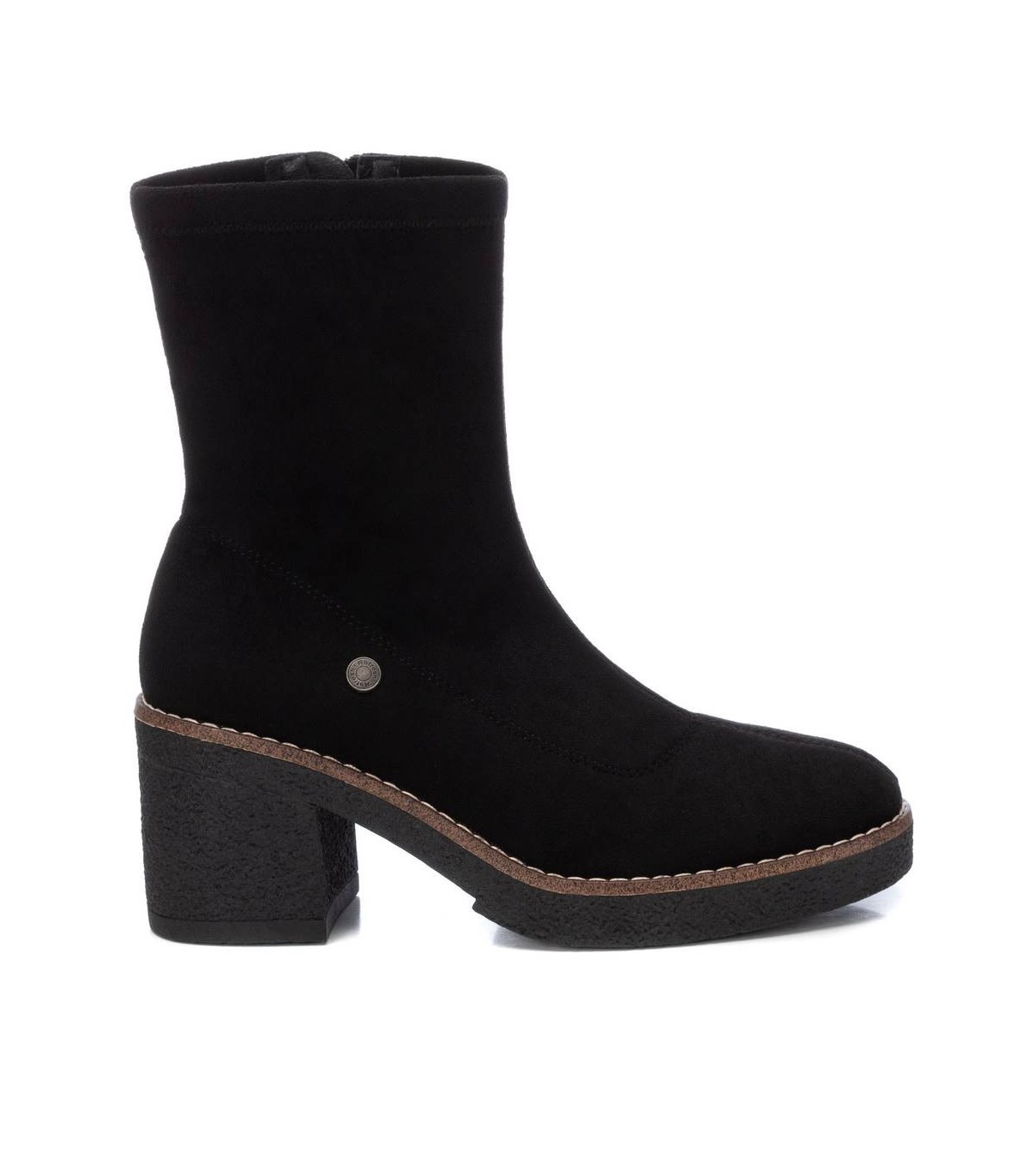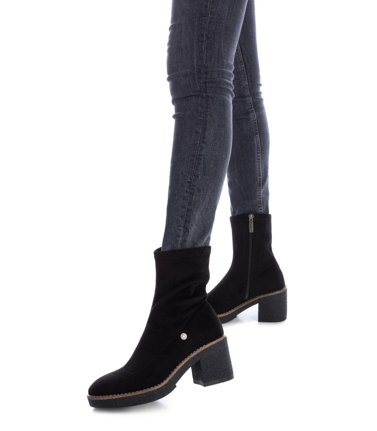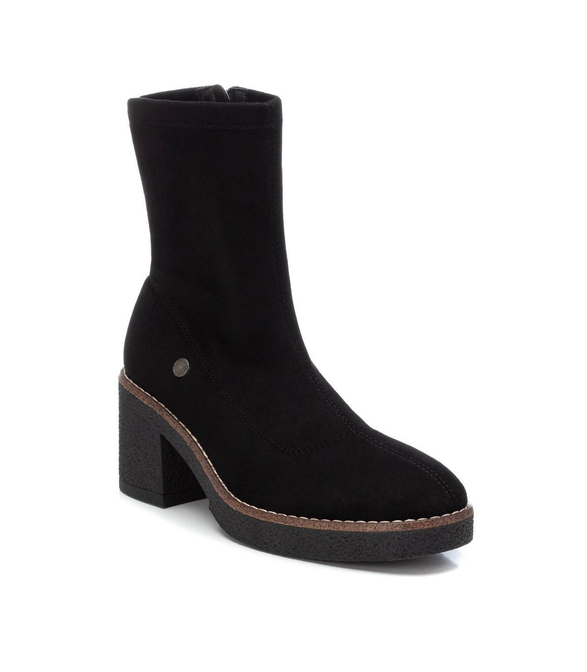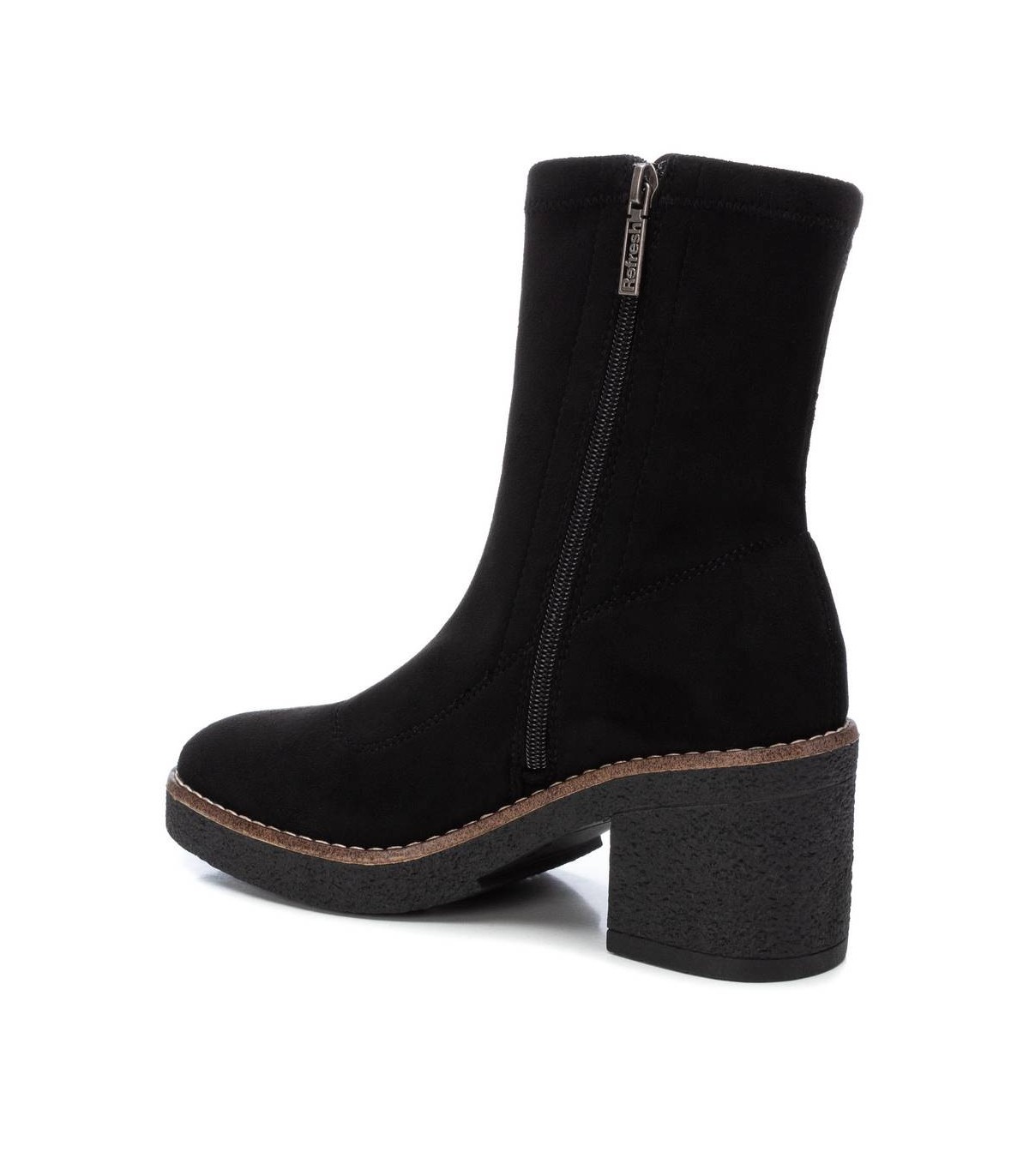 Botín de mujer, de la marca Refresh. Fabricado en una suave antelina. Cierre mediante cremallera lateral. Suela volumen antideslizante. Un modelo básico para tu armario este invierno. Este modelo ha obtenido el certificado vegano por la organización mundial PETA (Organización de los derechos de los animales).