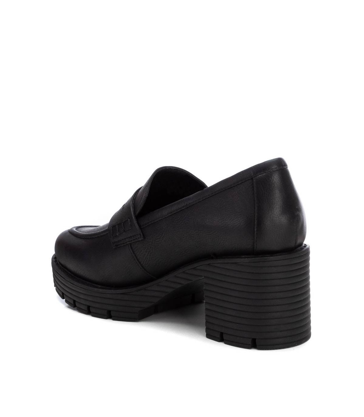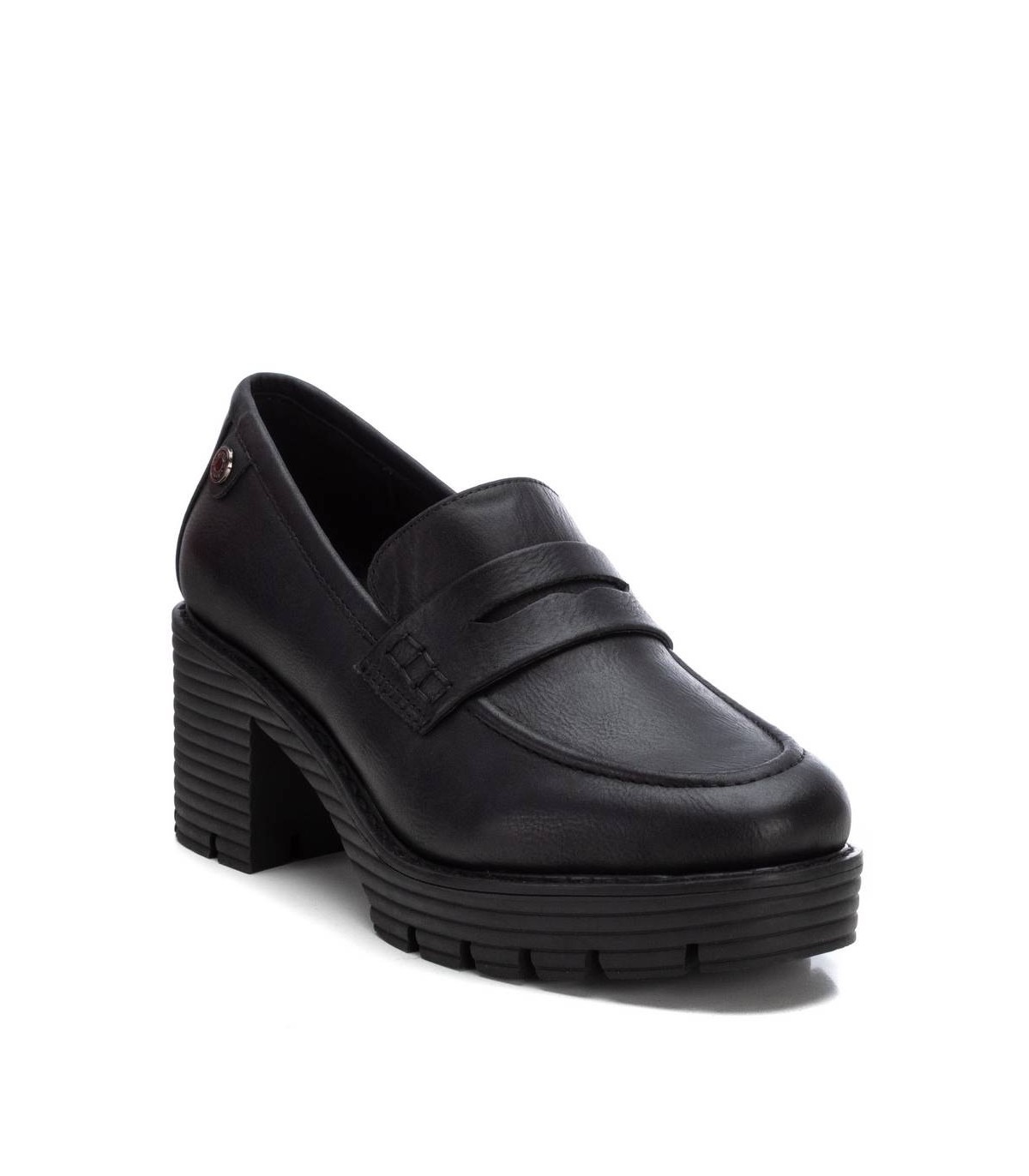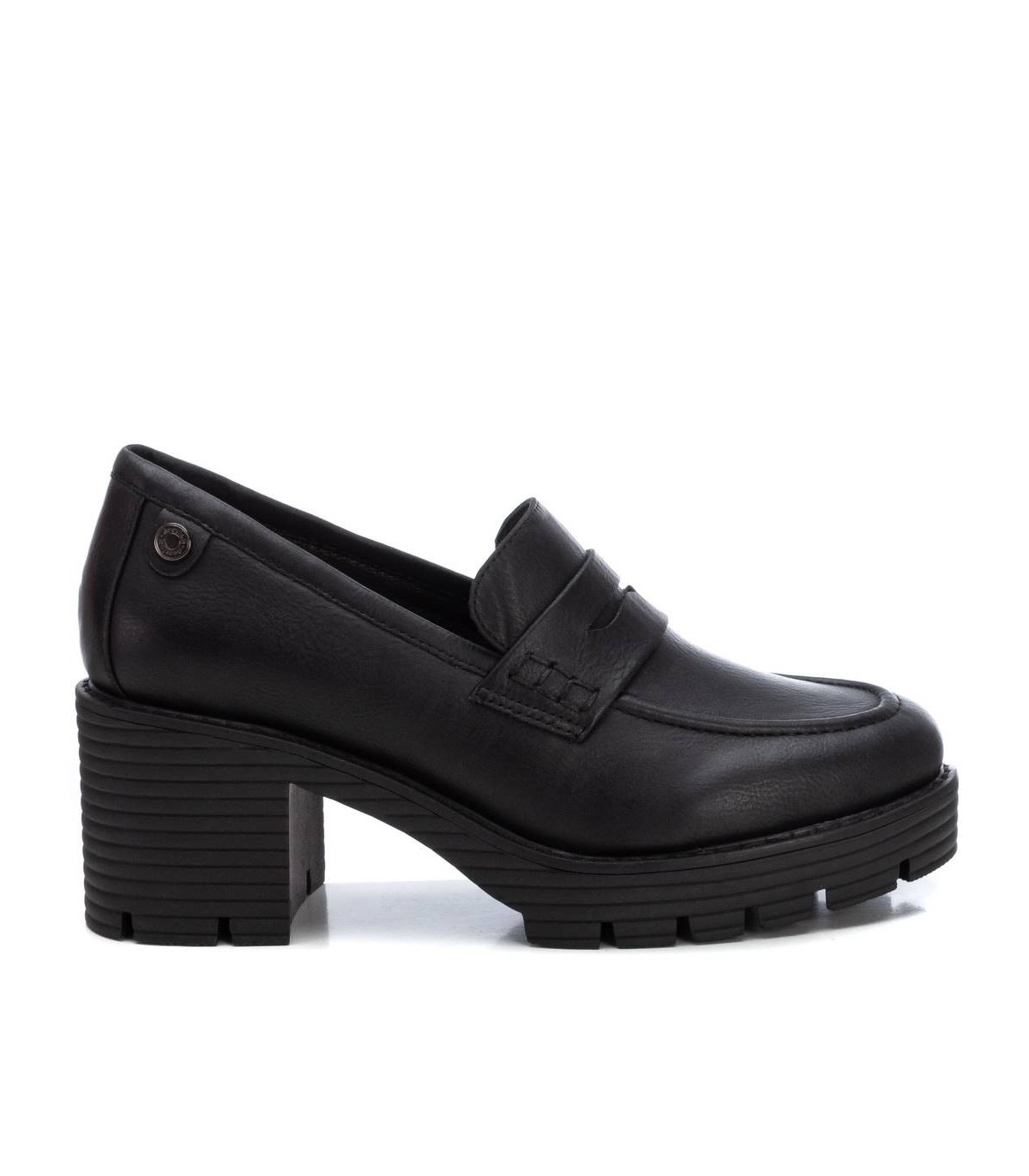 Mocasín de mujer, de la marca Refresh. Fabricado en un material que imita la piel. Modelo clásico y elegante. Con antifaz decorativo al frente. 7 cm de tacón y gruesa plataforma para mayor comodidad. Este modelo ha obtenido el certificado vegano por la organización mundial PETA (Organización de los derechos de los animales).