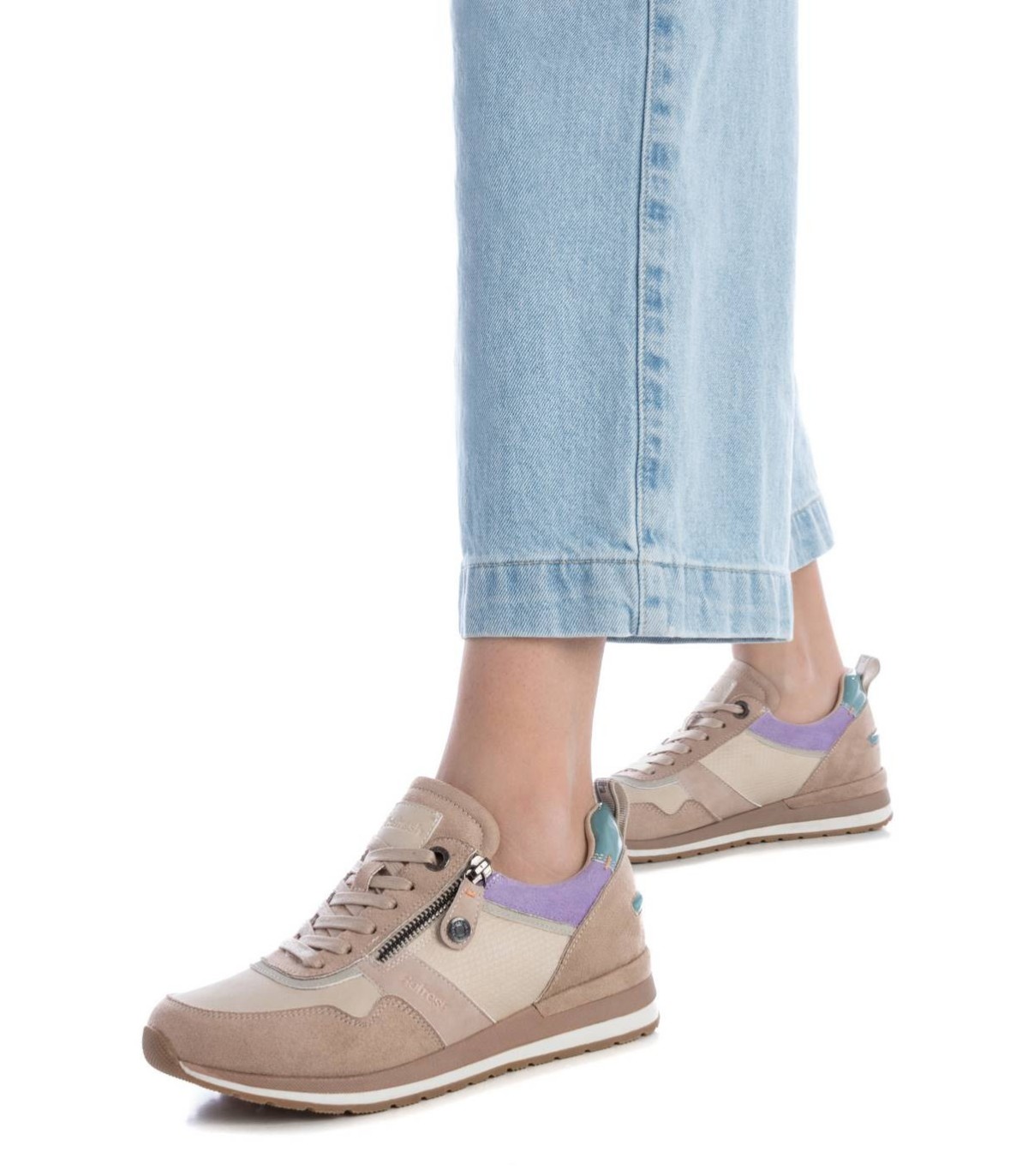 Zapatilla de mujer, de la marca Refresh. Fabricada en una suave antelina combinada con material que imita la piel. Cierre mediante cremallera lateral y cordones ajustables. Cómoda planta acolchada. Suela de goma antideslizante. Zapatilla básica para crear tus mejores looks. Con plantilla extraíble. Este modelo ha obtenido el certificado vegano por la organización mundial PETA (Organización de los derechos de los animales).