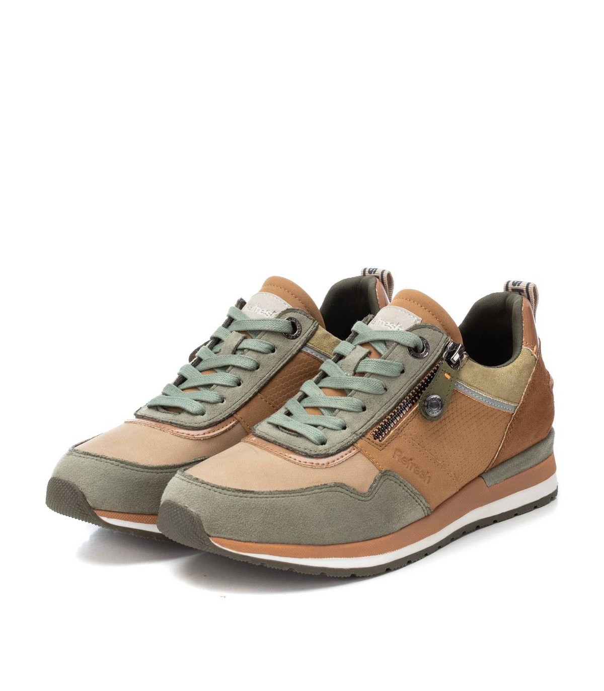 Zapatilla de mujer, de la marca Refresh. Fabricada en una suave antelina combinada con material que imita la piel. Cierre mediante cremallera lateral y cordones ajustables. Cómoda planta acolchada. Suela de goma antideslizante. Zapatilla básica para crear tus mejores looks. Con plantilla extraíble. Este modelo ha obtenido el certificado vegano por la organización mundial PETA (Organización de los derechos de los animales).