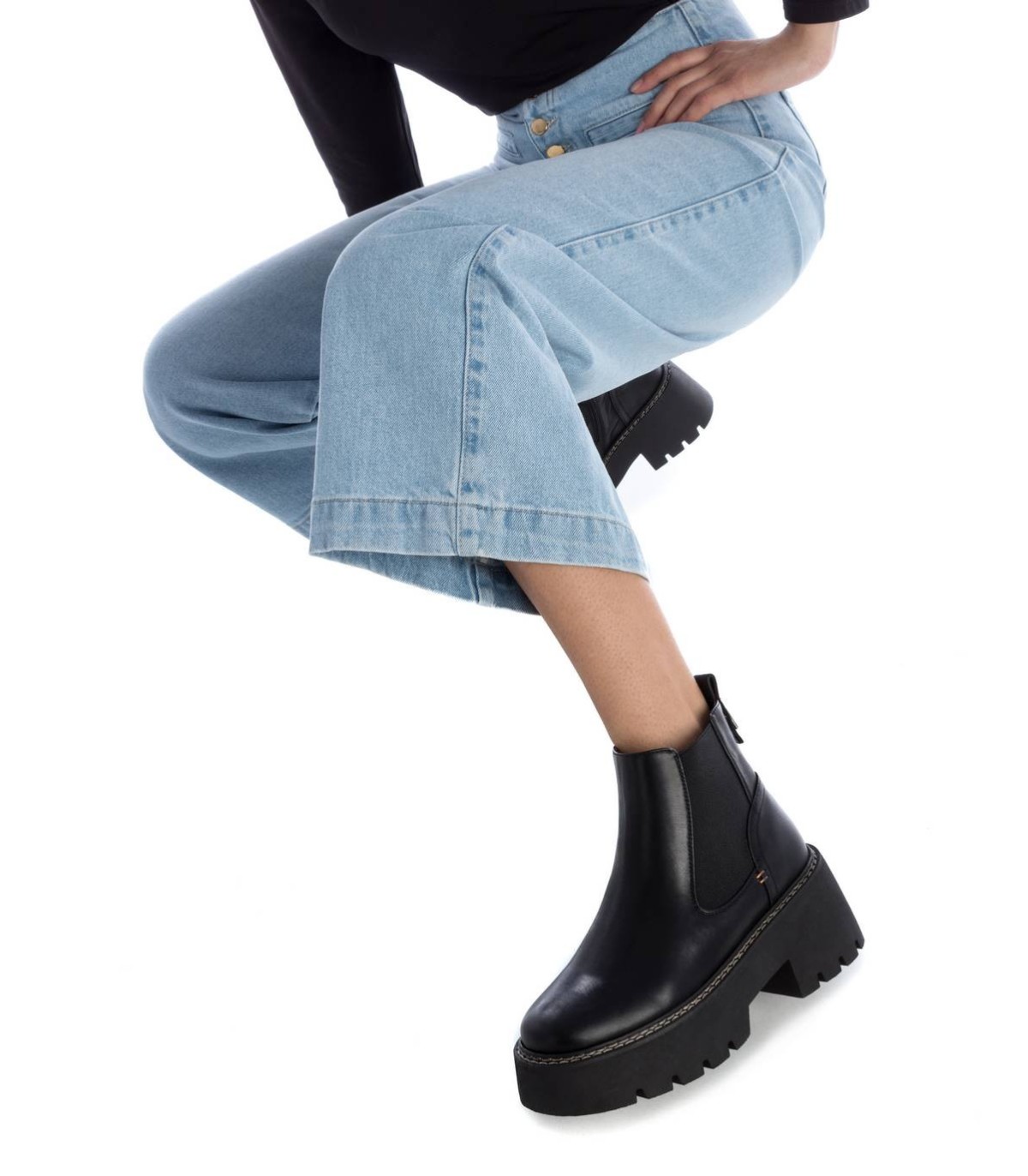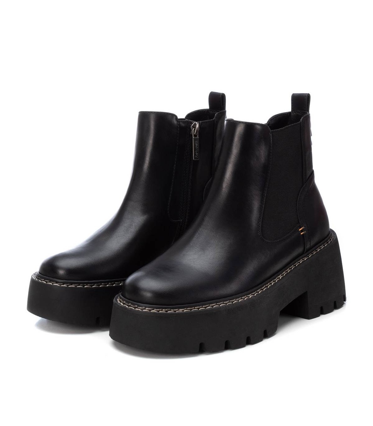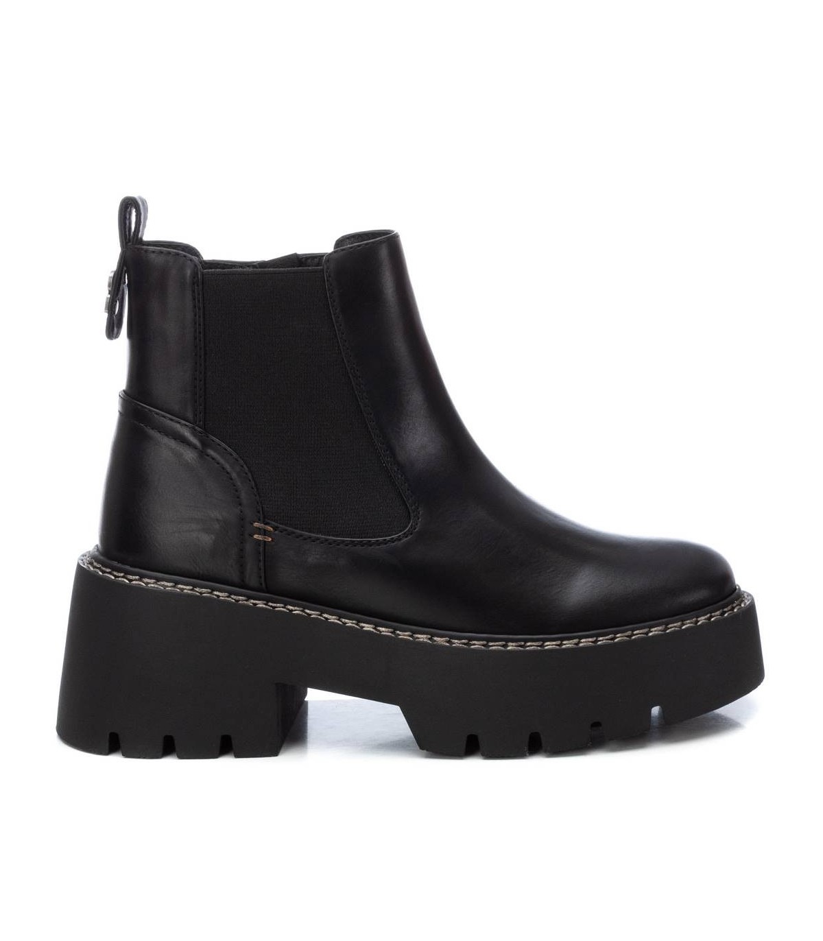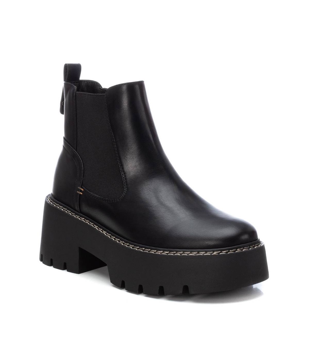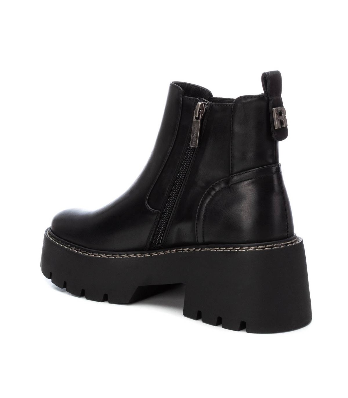 Botín de mujer, de la marca Refresh. Fabricado en un material que imita la piel. Botín estilo Chelsea, con cierre cremallera y elástico en el lateral. Tirador trasero para facilitar la puesta. Suela gruesa, dentada y antideslizante, cómoda planta acolchada. Este modelo ha obtenido el certificado vegano por la organización mundial PETA (Organización de los derechos de los animales).