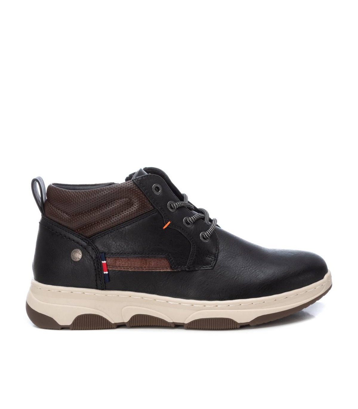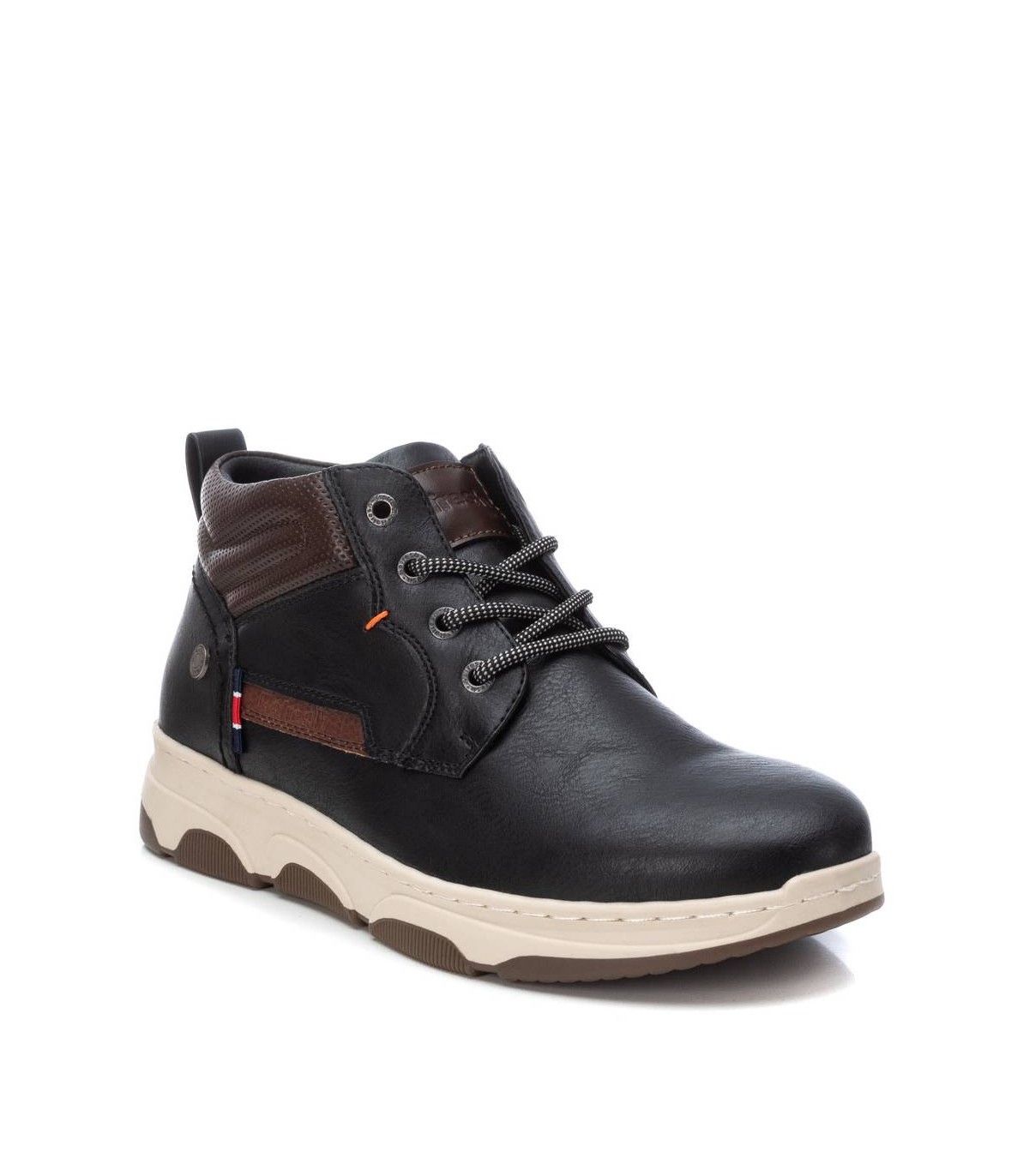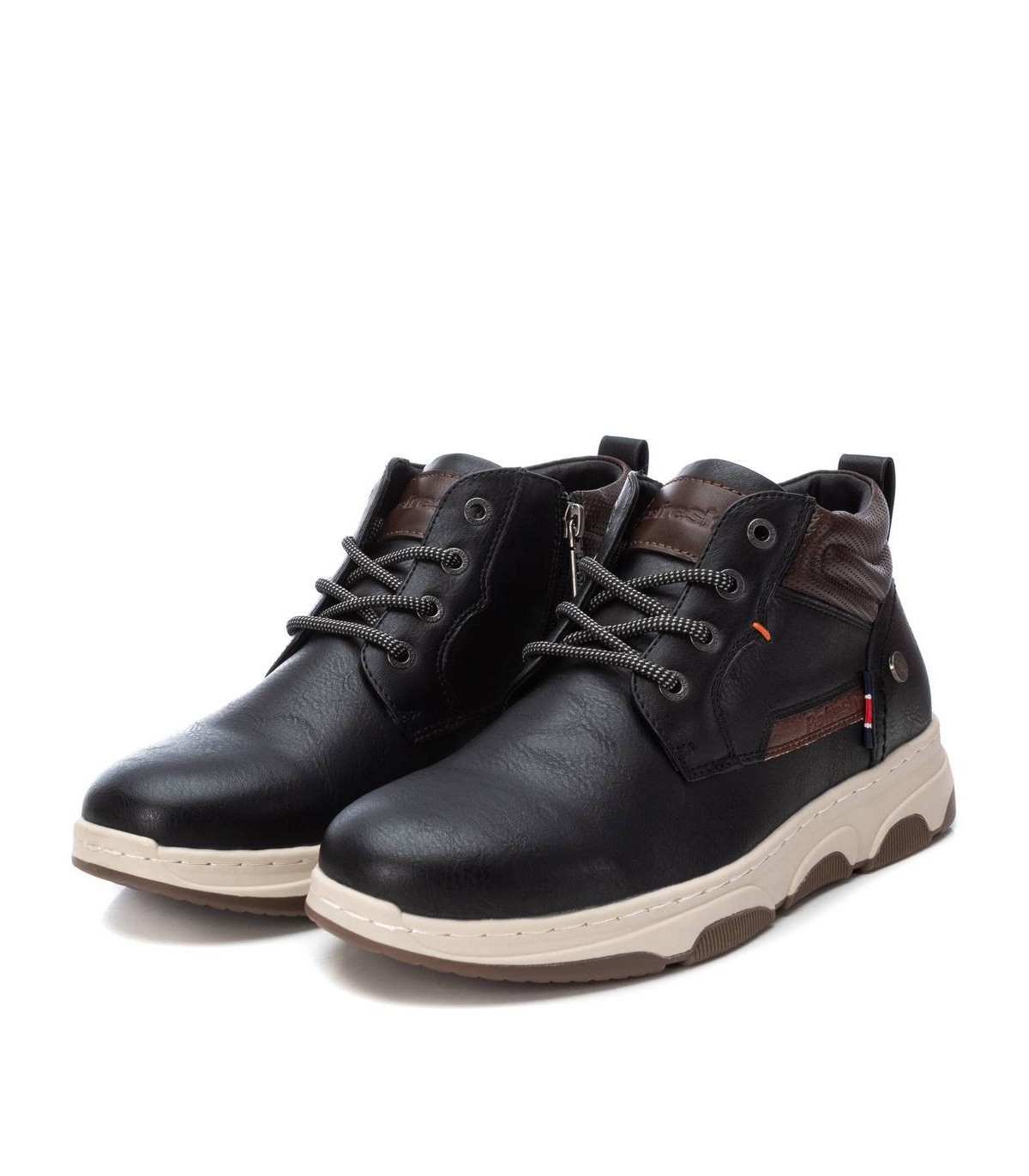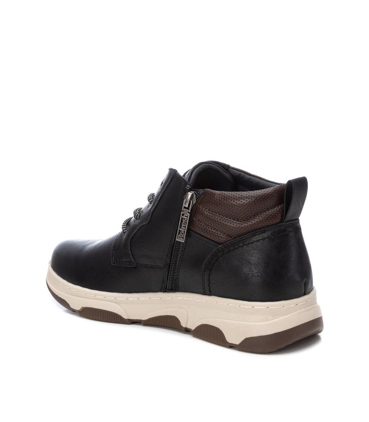 Botín de hombre, de la marca Refresh. Fabricado en un material que imita la piel. Cierre mediante cremallera lateral y cordones para un buen ajuste. Tirador trasero para facilitar la puesta. Cómoda suela de goma antideslizante. Este modelo ha obtenido el certificado vegano por la organización mundial PETA (Organización de los derechos de los animales).