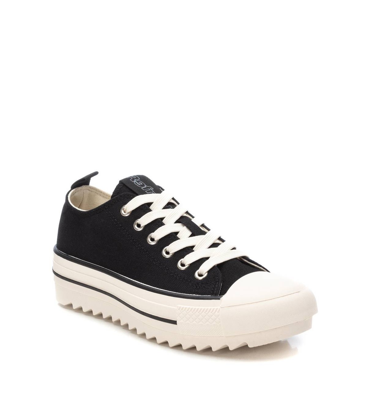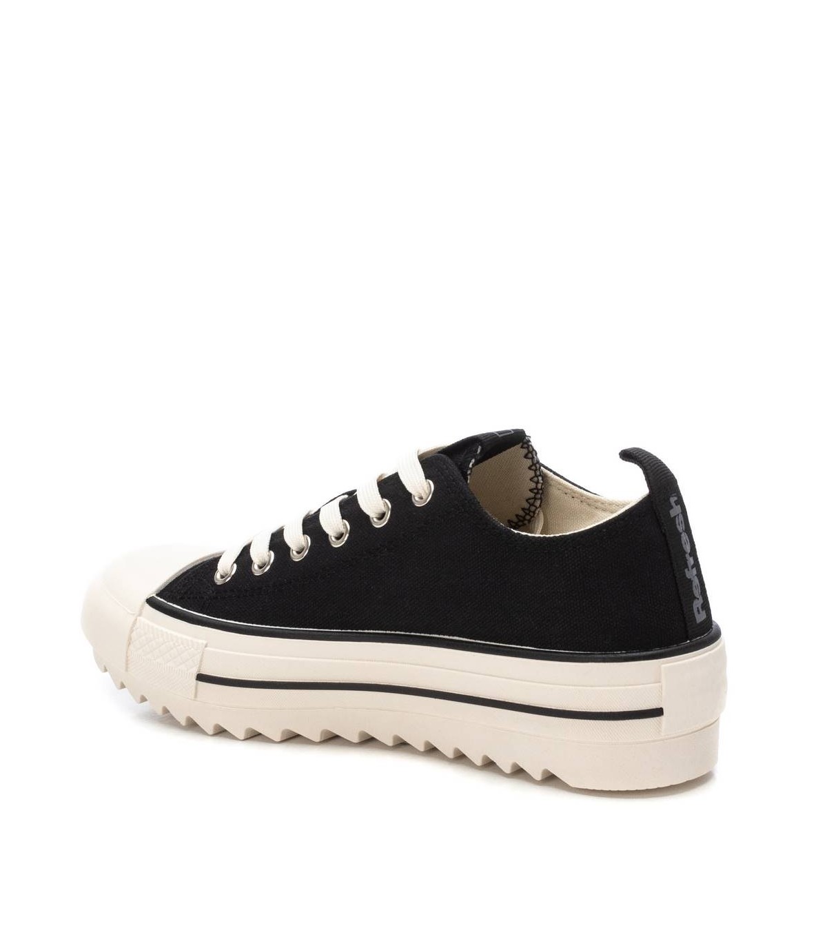 Zapatilla de mujer, de la marca Refresh. Fabricado material textil. Cierre mediante cordones ajustables. Tirador trasero para facilitar la puesta. Doble suela dentada, cómoda y antideslizante. Con plantilla extraíble. Este modelo ha obtenido el certificado vegano por la organización mundial PETA (Organización de los derechos de los animales).