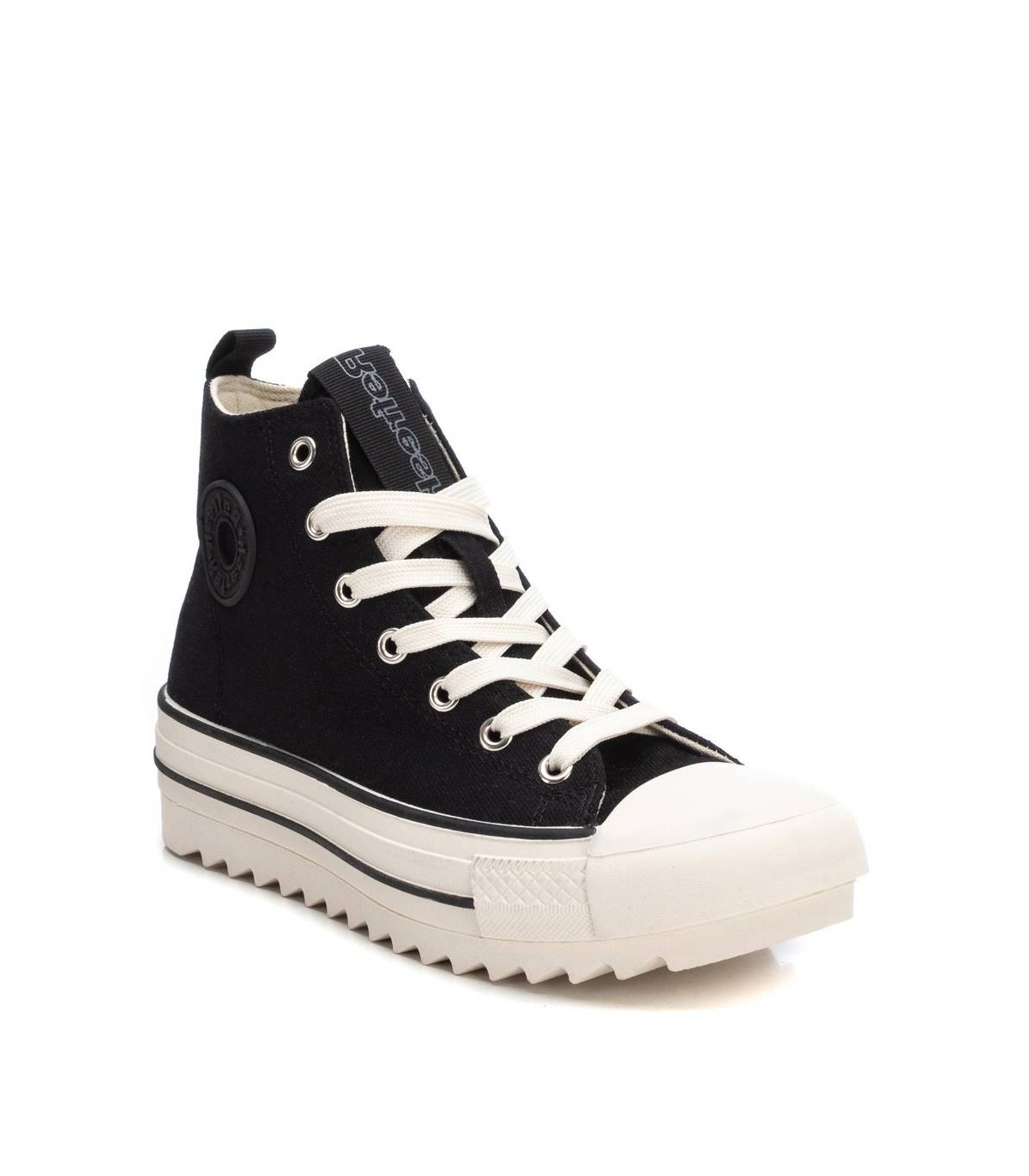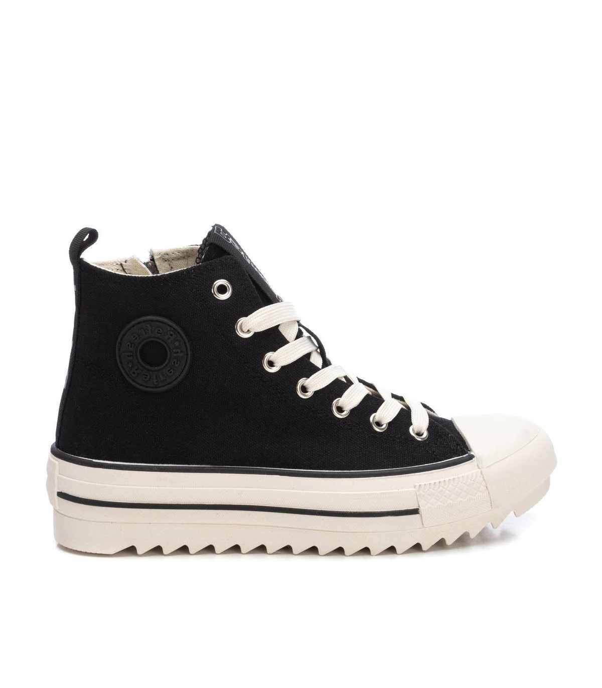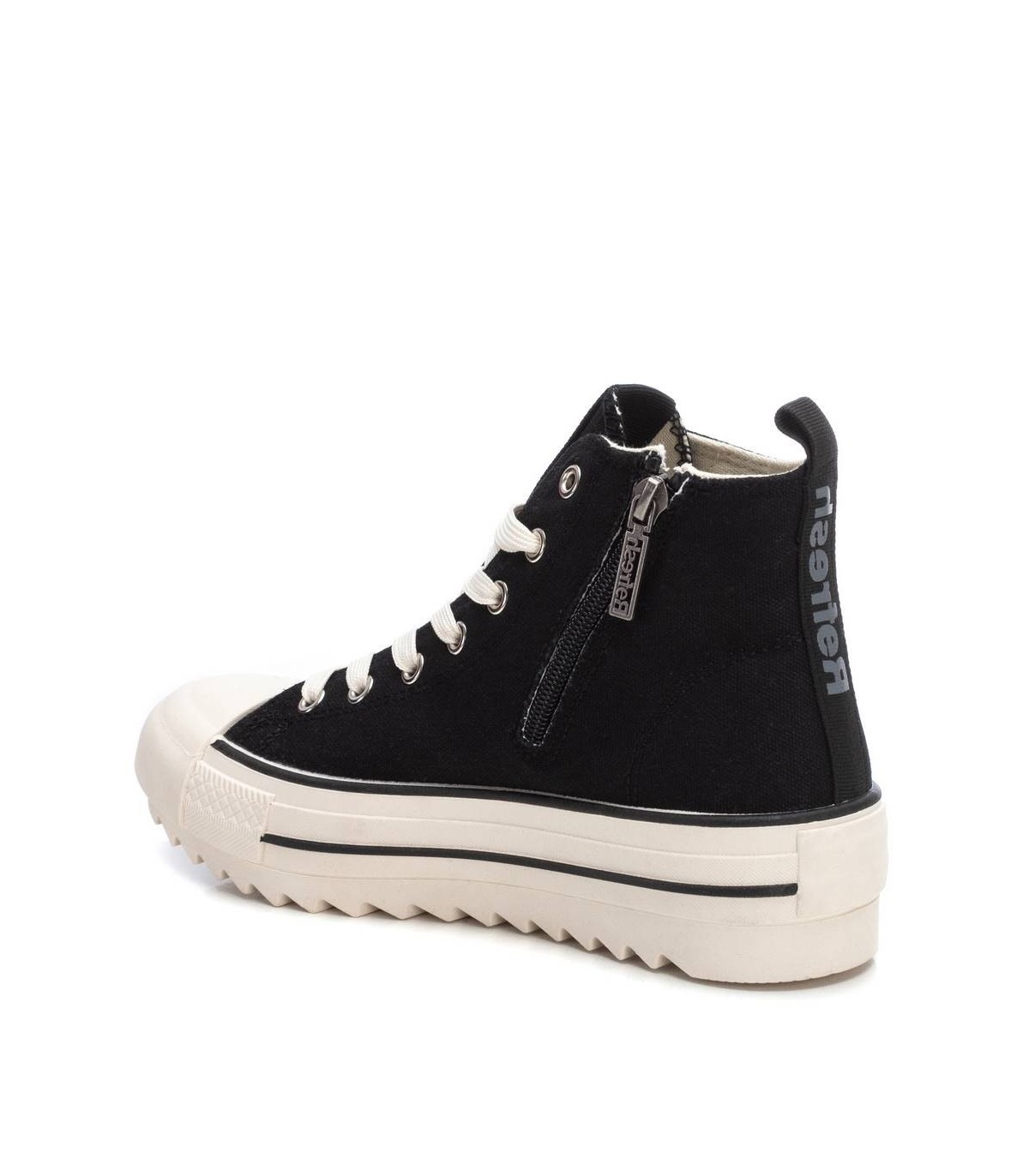 Botín de mujer, de la marca Refresh. Fabricado en material textil. Cierre mediante cremallera lateral y cordones ajustables. Tirador trasero para facilitar la puesta. Doble suela gruesa y dentada. Modelo atemporal que no puede faltar en tu armario esta temporada. Con plantilla extraíble. Este modelo ha obtenido el certificado vegano por la organización mundial PETA (Organización de los derechos de los animales).