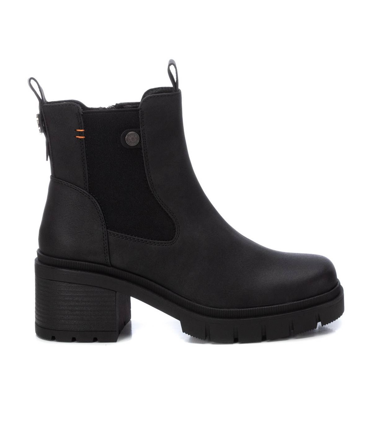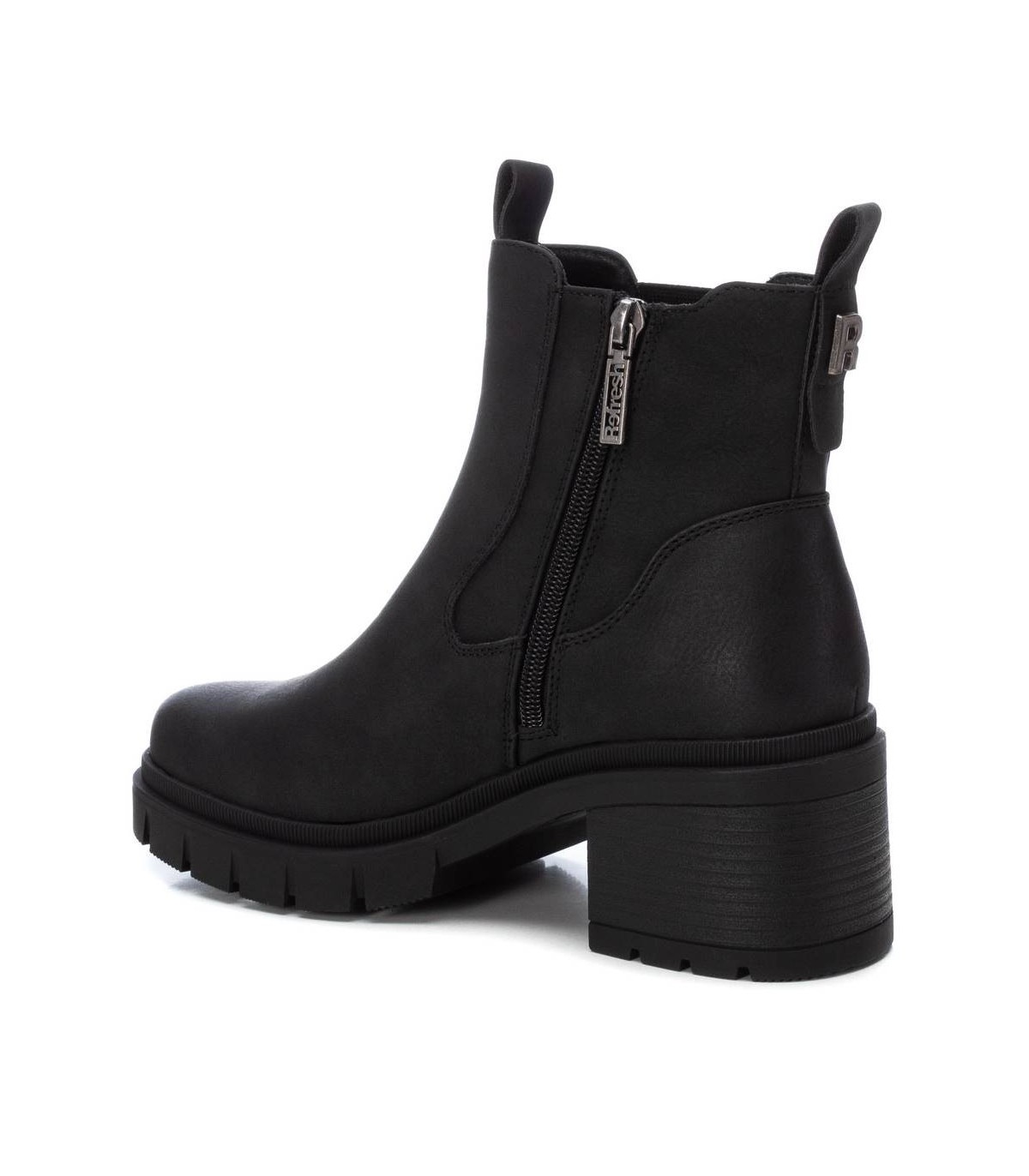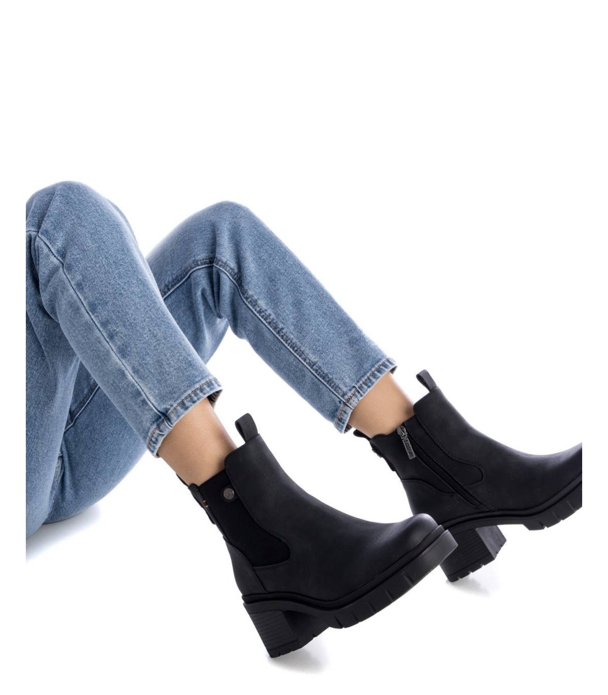 Botín de mujer, de la marca Refresh. Fabricado en un material que imita la piel. Cierre mediante cremallera lateral. Modelo tipo Chelsea con elástico lateral y tirador trasero para facilitar la puesta. Tacón 6 cm con suela de goma antideslizante. Un básico que no puede faltar en tu armario este invierno. Este modelo ha obtenido el certificado vegano por la organización mundial PETA (Organización de los derechos de los animales).