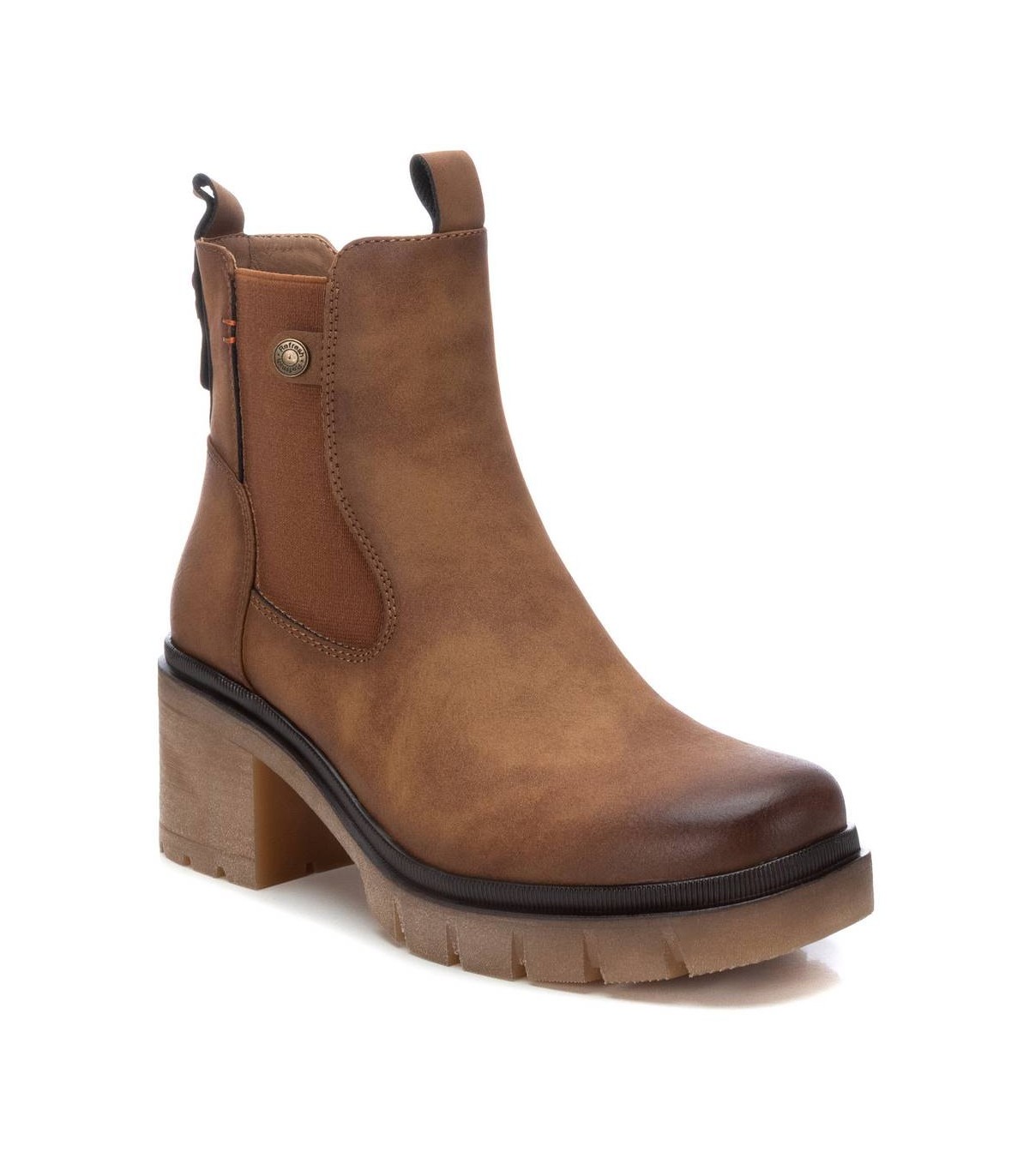 Botín de mujer, de la marca Refresh. Fabricado en un material que imita la piel. Cierre mediante cremallera lateral. Modelo tipo Chelsea con elástico lateral y tirador trasero para facilitar la puesta. Tacón 6 cm con suela de goma antideslizante. Un básico que no puede faltar en tu armario este invierno. Este modelo ha obtenido el certificado vegano por la organización mundial PETA (Organización de los derechos de los animales).