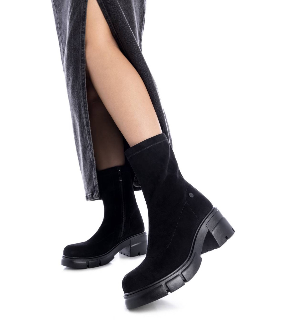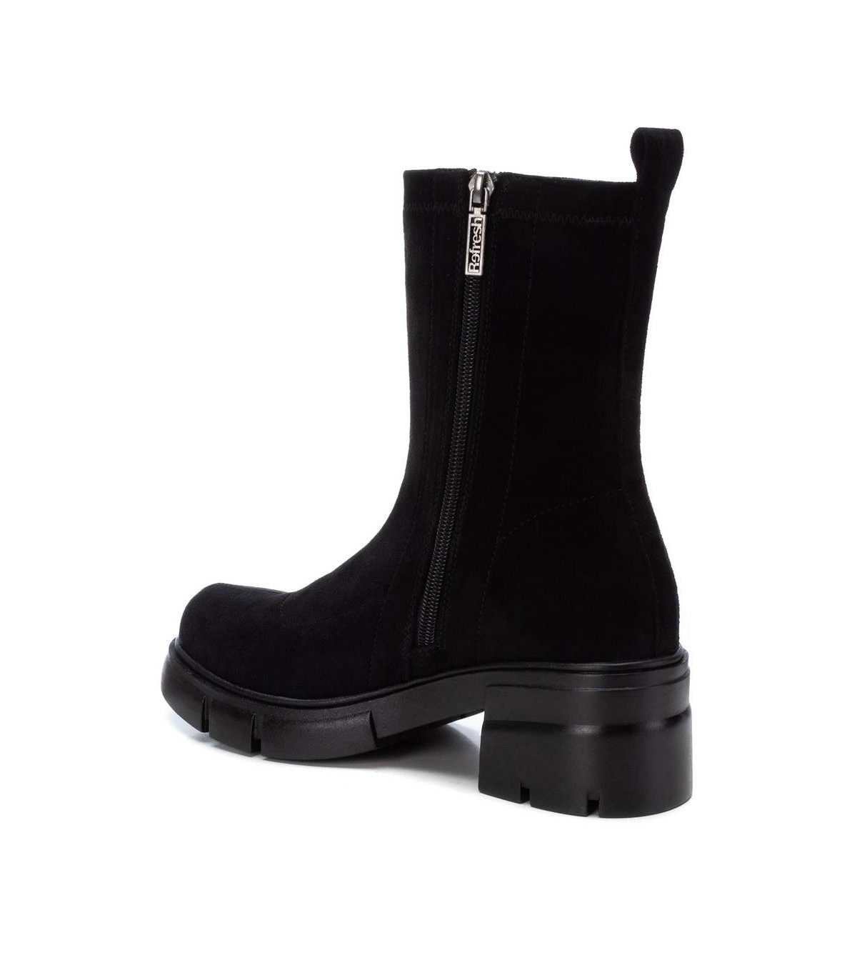 Botín de mujer, de la marca Refresh. Fabricado en una suave antelina. Cierre mediante cremallera lateral. Caña de botín elástica para un mejor ajuste. Tirador trasero para facilitar la puesta. Suela de goma antideslizante. Este modelo ha obtenido el certificado vegano por la organización mundial PETA (Organización de los derechos de los animales).