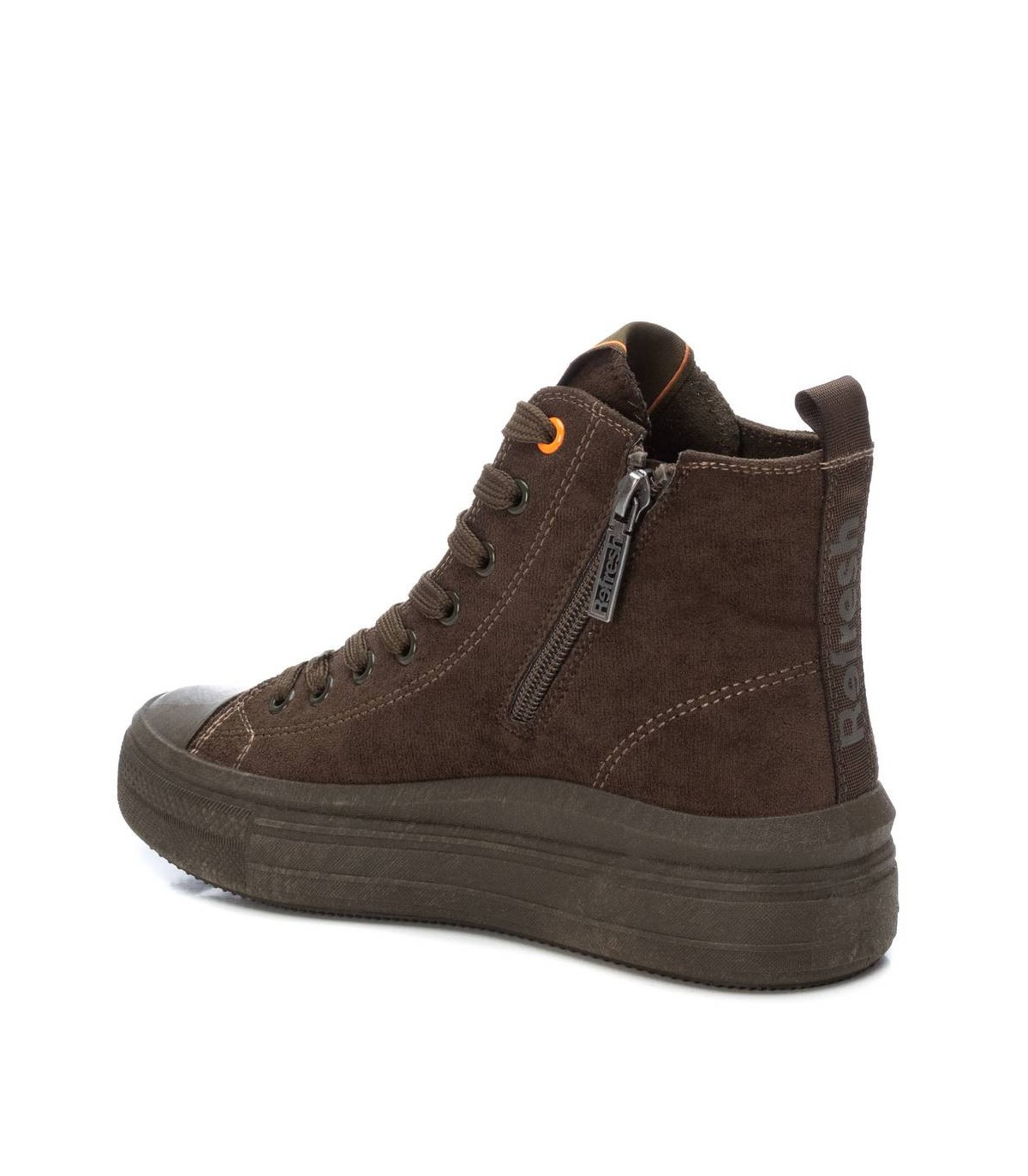 Botín de mujer, de la marca Refresh. Fabricada en antelina. Cierre mediante cremallera interior. Cordones regulables al tono. Un básico que no puede faltar en tu armario esta temporada. Con cómoda suela de goma antideslizante. Este modelo ha obtenido el certificado vegano por la organización mundial PETA (Organización de los derechos de los animales).