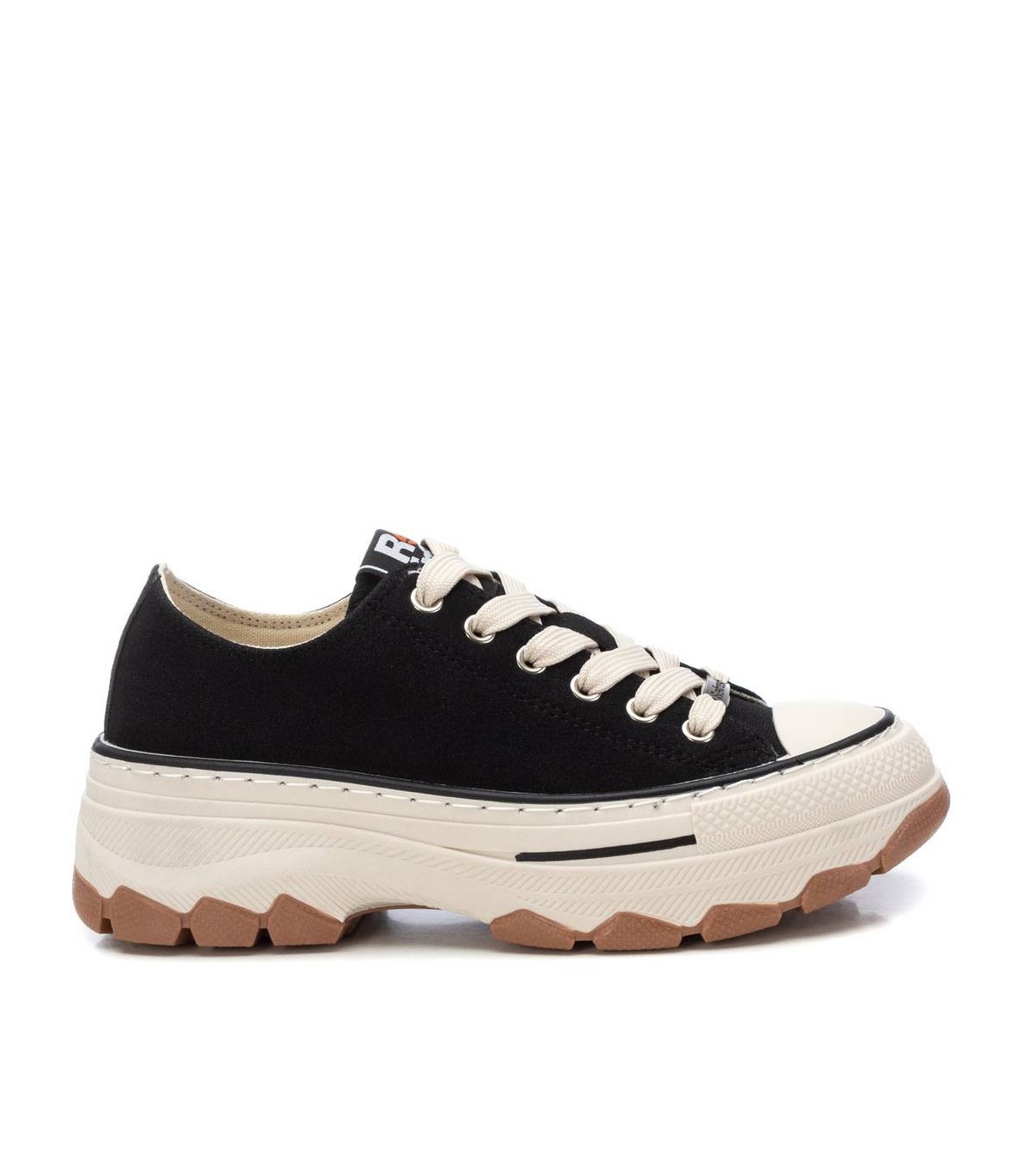 Zapatilla de mujer, de la marca Refresh. Fabricado en un material que imita la piel. Cierre mediante cordones ajustables. Piso volumen con suela dentada de goma antideslizante. Modelo en tendencia esta temporada. Con plantilla extraíble. Este modelo ha obtenido el certificado vegano por la organización mundial PETA (Organización de los derechos de los animales).