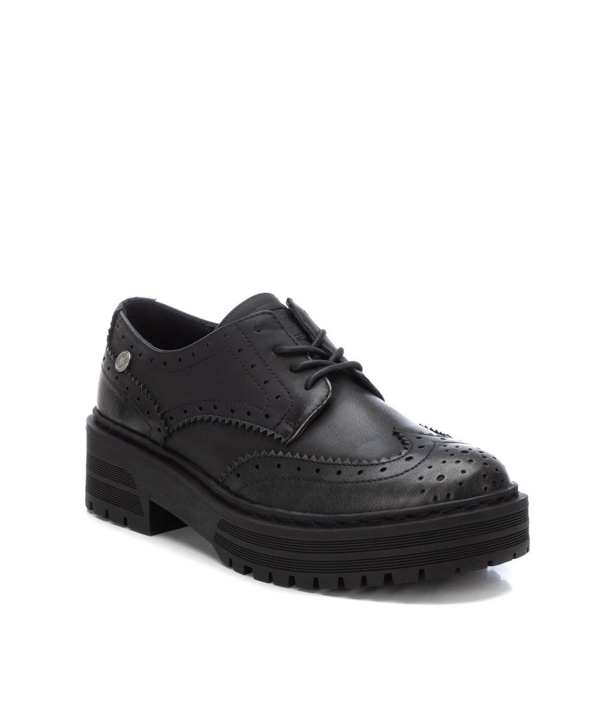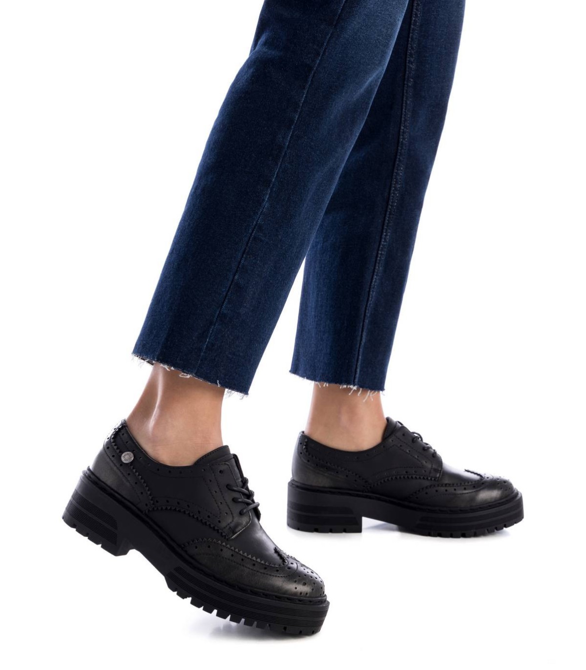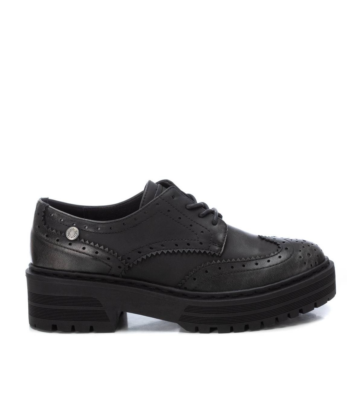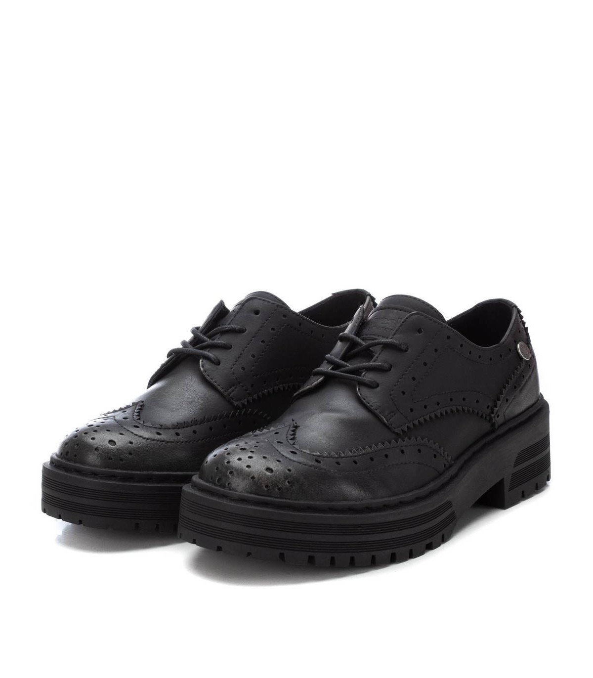 Zapato de mujer, de la marca Refresh. Fabricado en un material que imita la piel. Cordones ajustables. Piso de 5 cm con suela de goma antideslizante. Diseño decorativo calado. Un básico para este invierno. Este modelo ha obtenido el certificado vegano por la organización mundial PETA (Organización de los derechos de los animales).