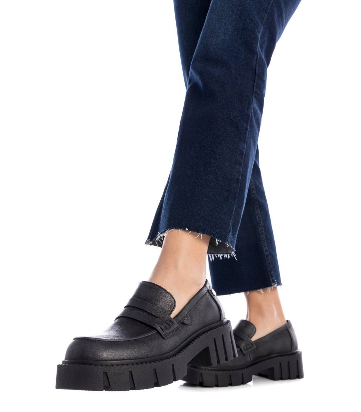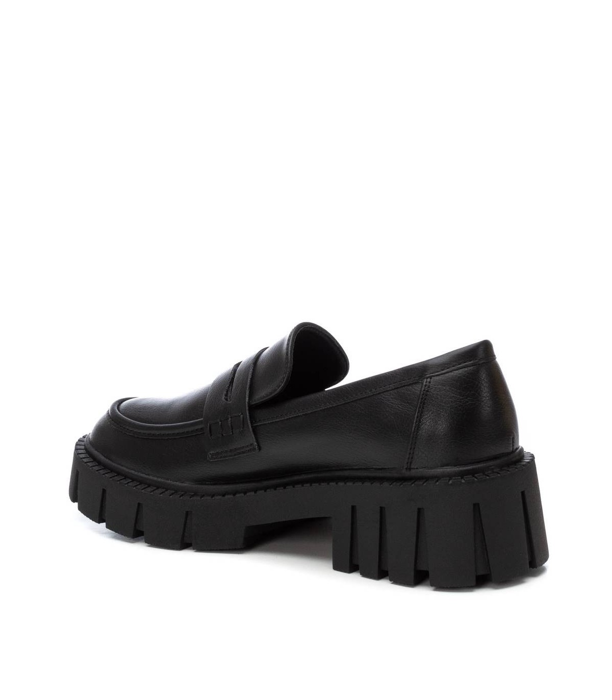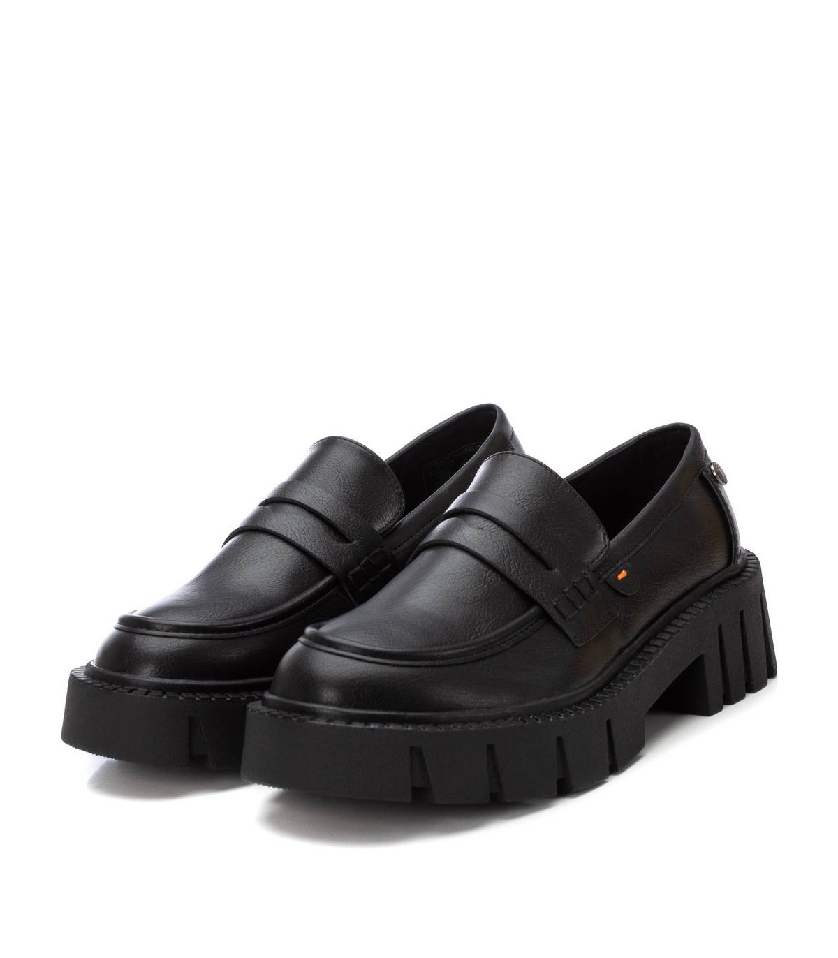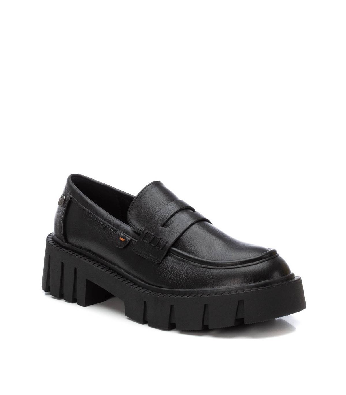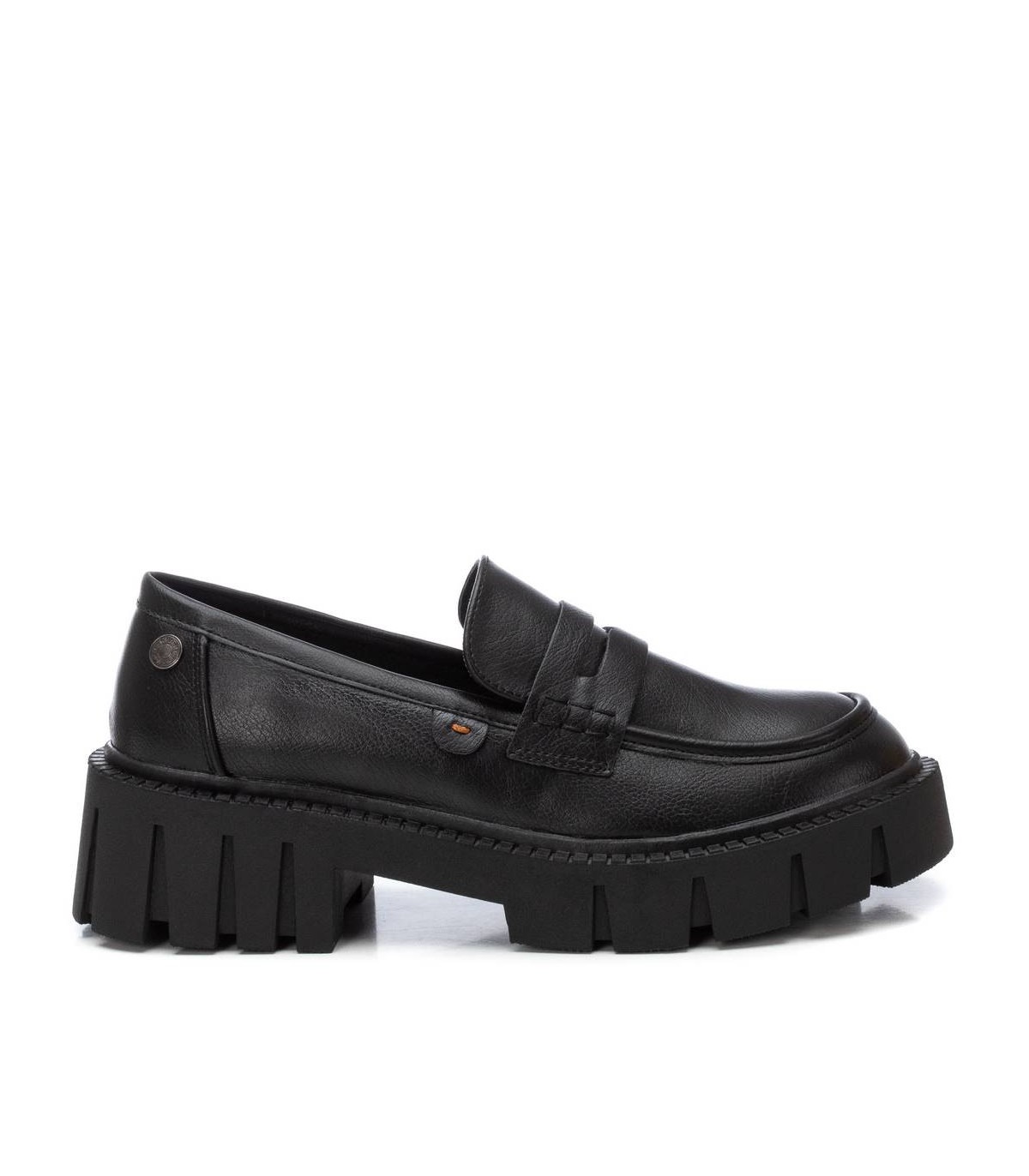 Mocasín de mujer, de la marca Refresh. Fabricado en un material que imita la piel. Detalle antifaz decorativo. Cómoda planta acolchada y suela volumen dentada antideslizante. Este modelo ha obtenido el certificado vegano por la organización mundial PETA (Organización de los derechos de los animales).