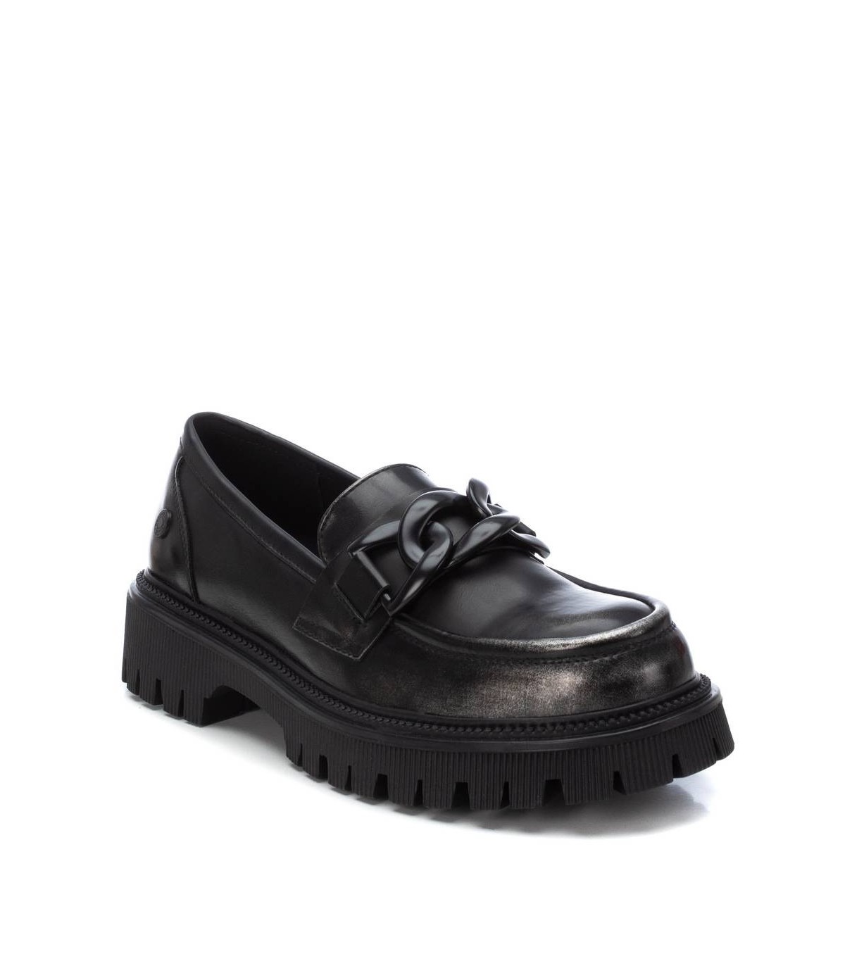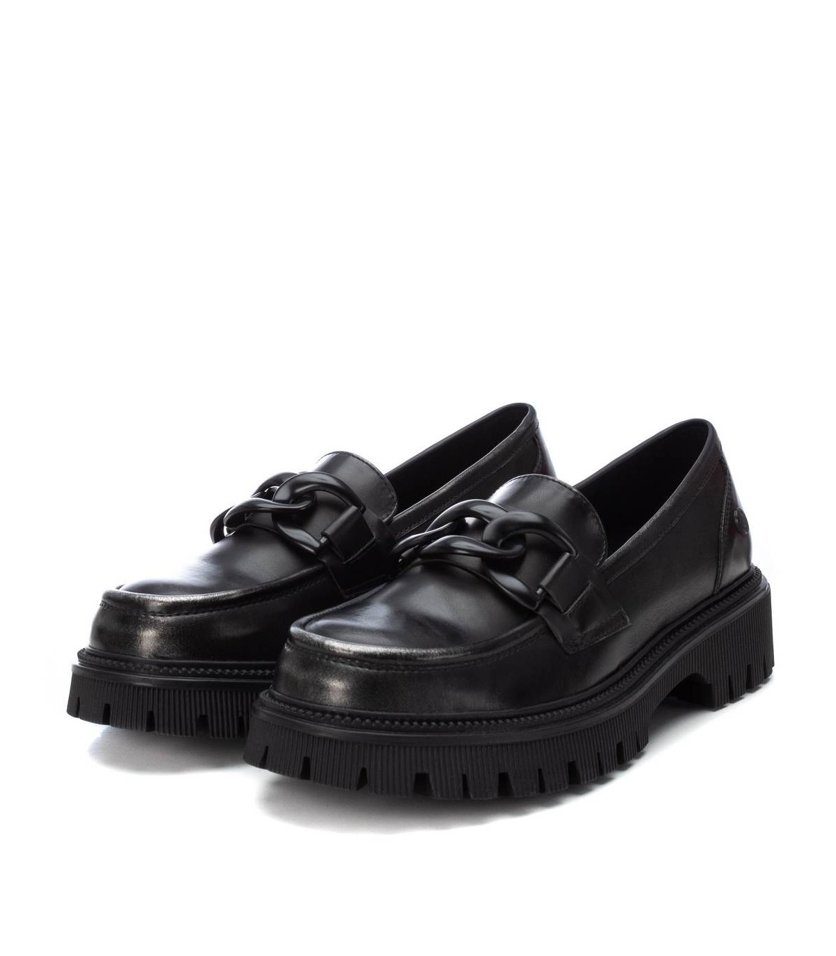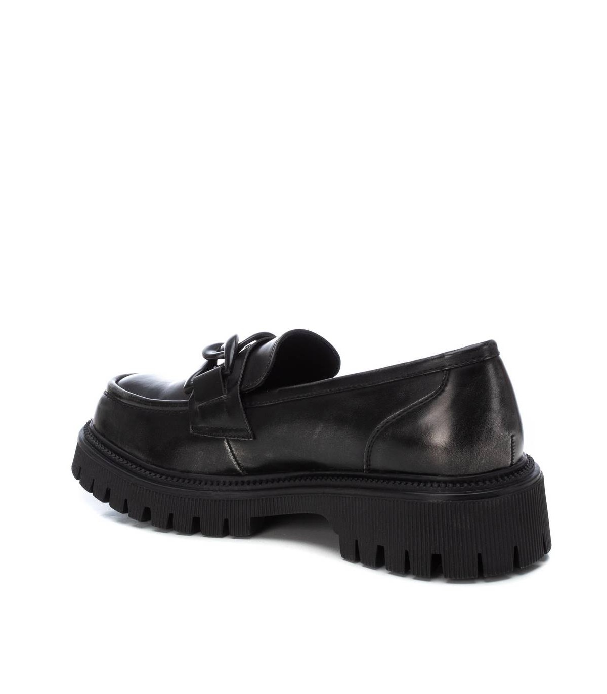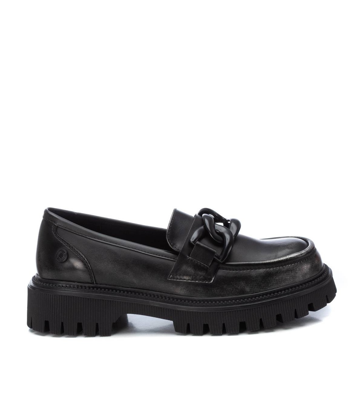Mocasín de mujer, de la marca Refresh. Fabricado en un material que imita la piel. Antifaz en el frente con correa decorativa. Modelo clásico que no puede faltar en el armario, ideal para completar tus looks. Suela gruesa antideslizante. Con plantilla extraíble. Este modelo ha obtenido el certificado vegano por la organización mundial PETA (Organización de los derechos de los animales).