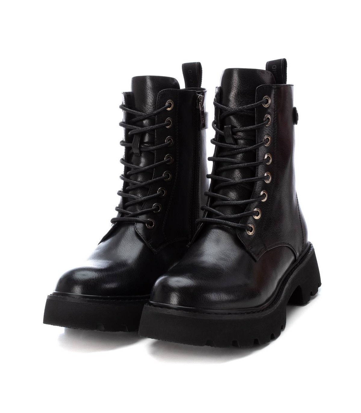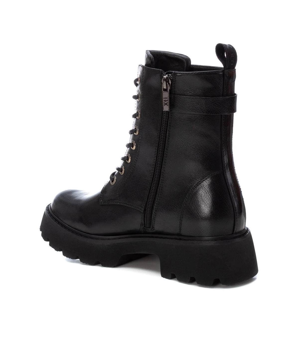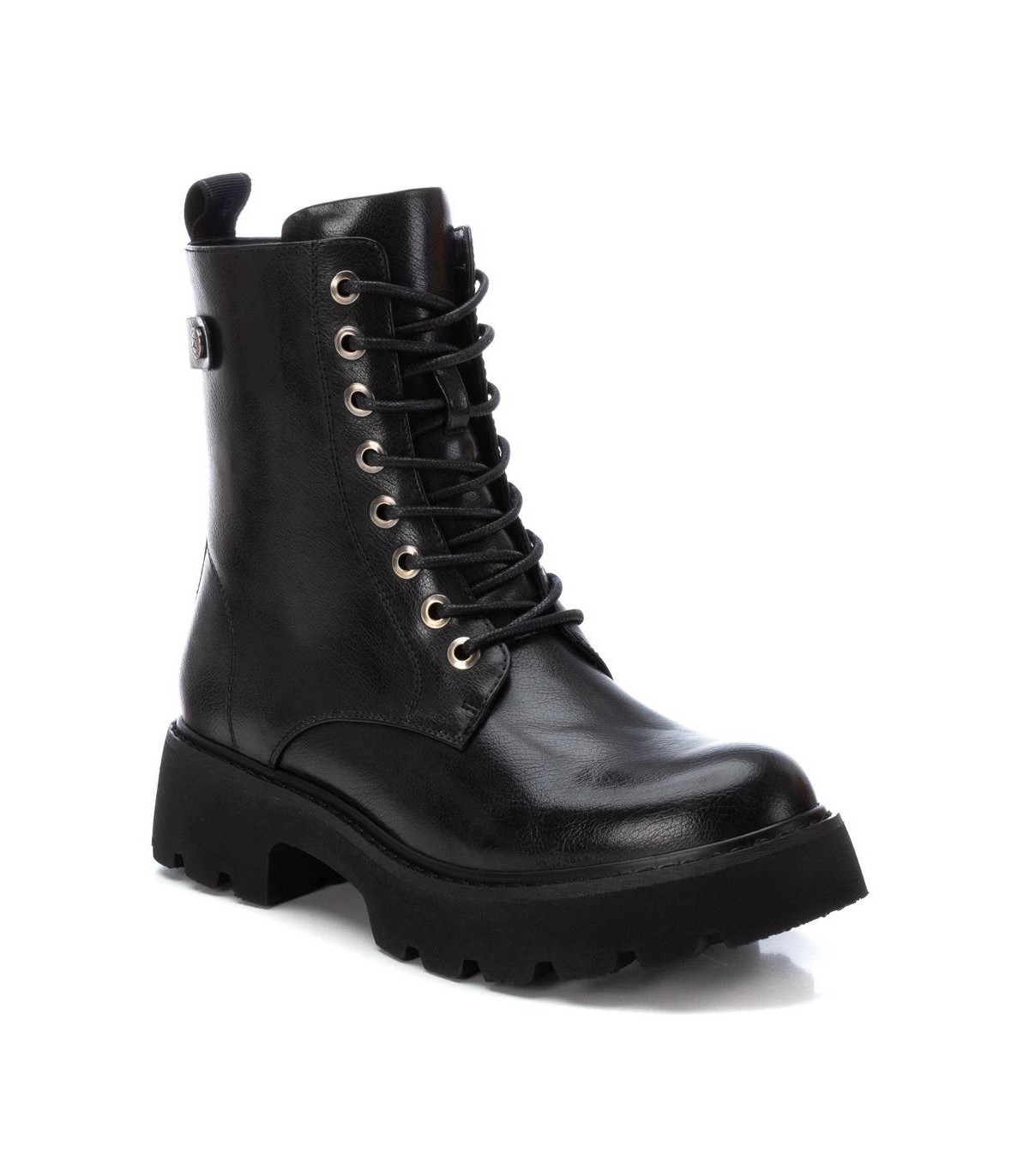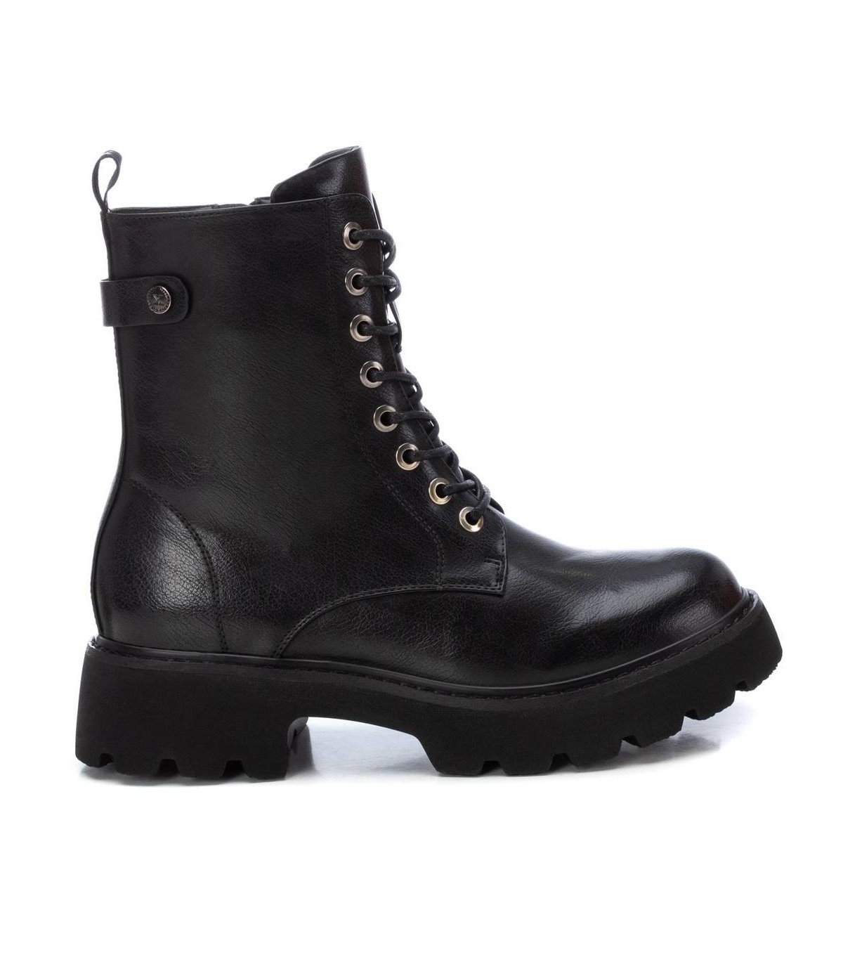 Botín de mujer, de la marca Xti. Fabricado en material que imita la piel. Cierre mediante cremallera lateral y cordones para un buen ajuste. Tirador trasero para facilitar la puesta. Suela gruesa de goma antideslizante. Un buen básico para tu armario. Este modelo ha obtenido el certificado vegano por la organización mundial PETA (Organización de los derechos de los animales).