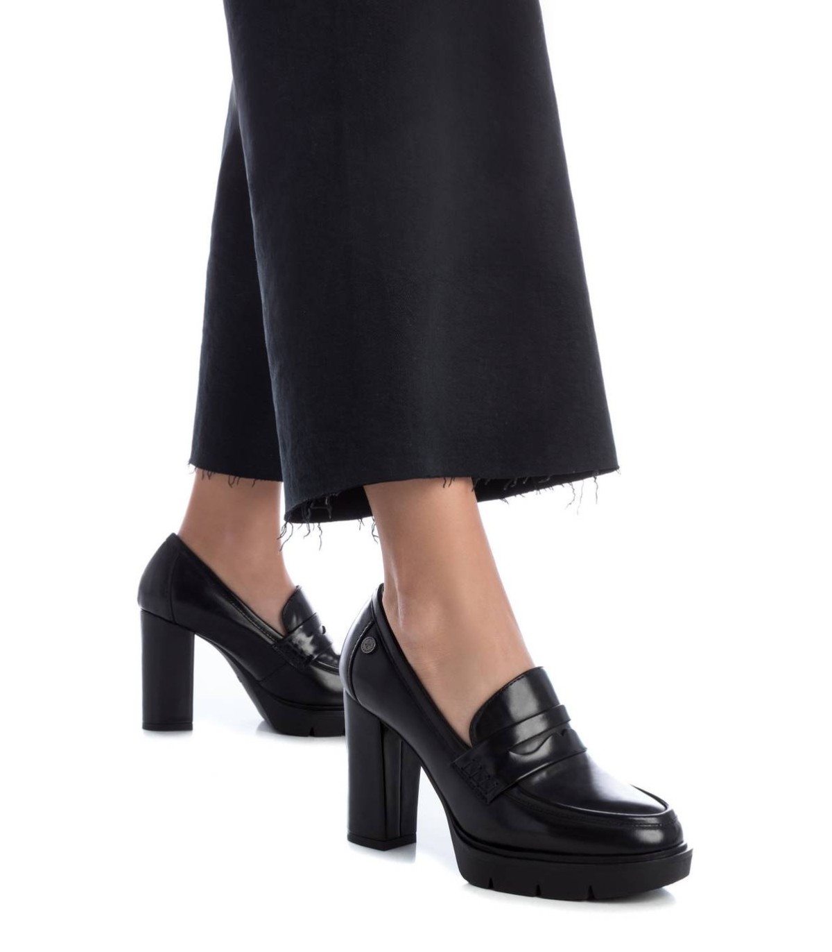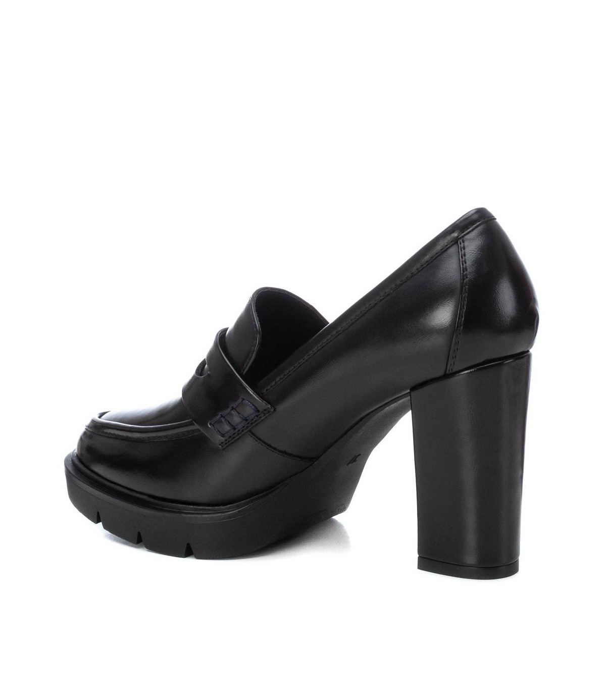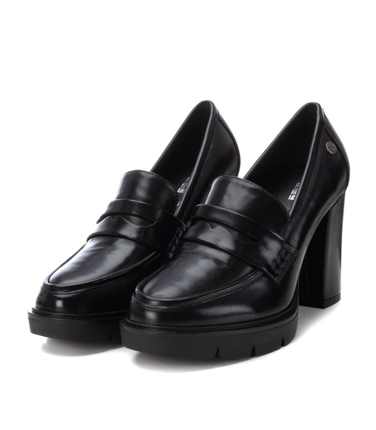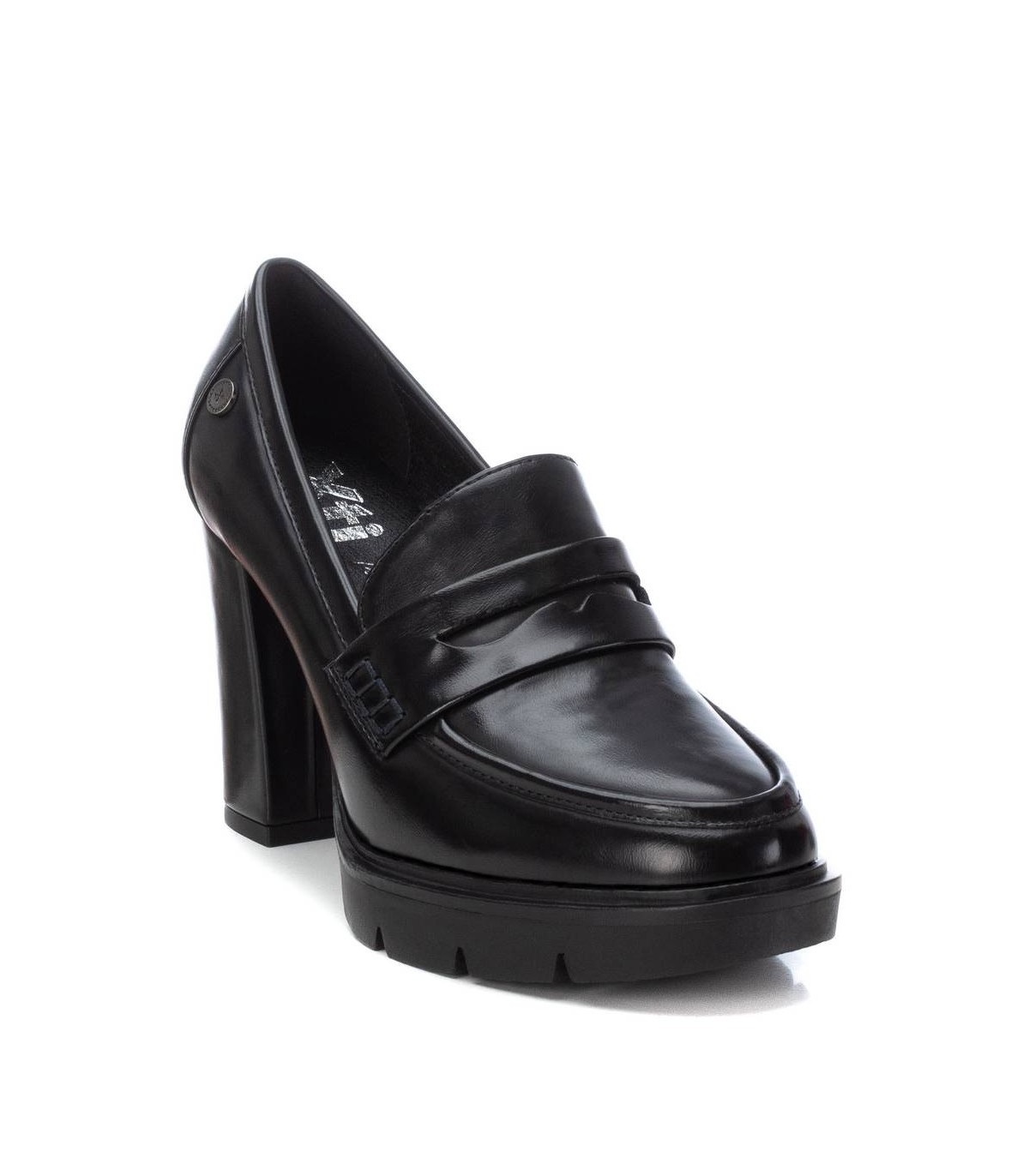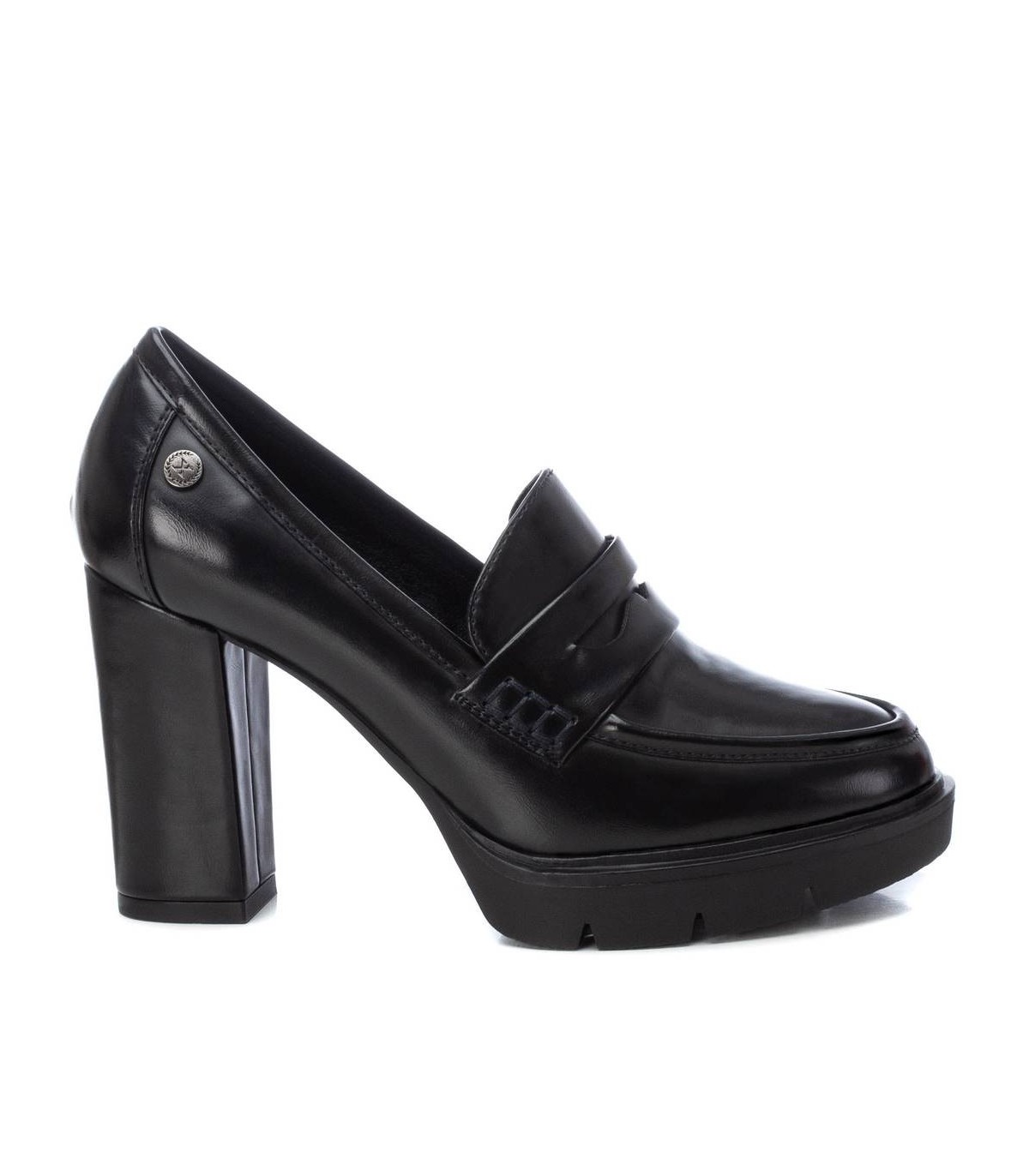 Mocasín de mujer, de la marca Xti. Fabricado en material que imita la piel. Cómodo tacón ancho de 9 cm con plataforma de la delantera. Ideal para tu fondo de armario. Este modelo ha obtenido el certificado vegano por la organización mundial PETA (Organización de los derechos de los animales).
