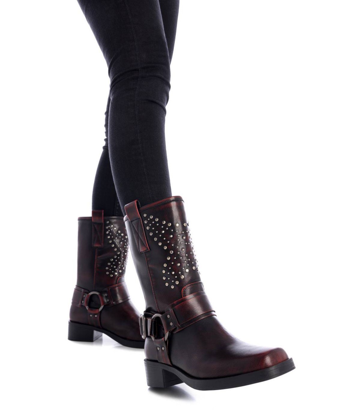Botín motero de mujer, de la marca Xti. Fabricada en material que imita la piel. Cierre mediante cremallera interior, la cual facilita la puesta. Además de los detalles que trae haciendo un modelo único y diferente. Únete a la tendencia motera de esta temporada. Este modelo ha obtenido el certificado vegano por la organización mundial PETA (Organización de los derechos de los animales).
