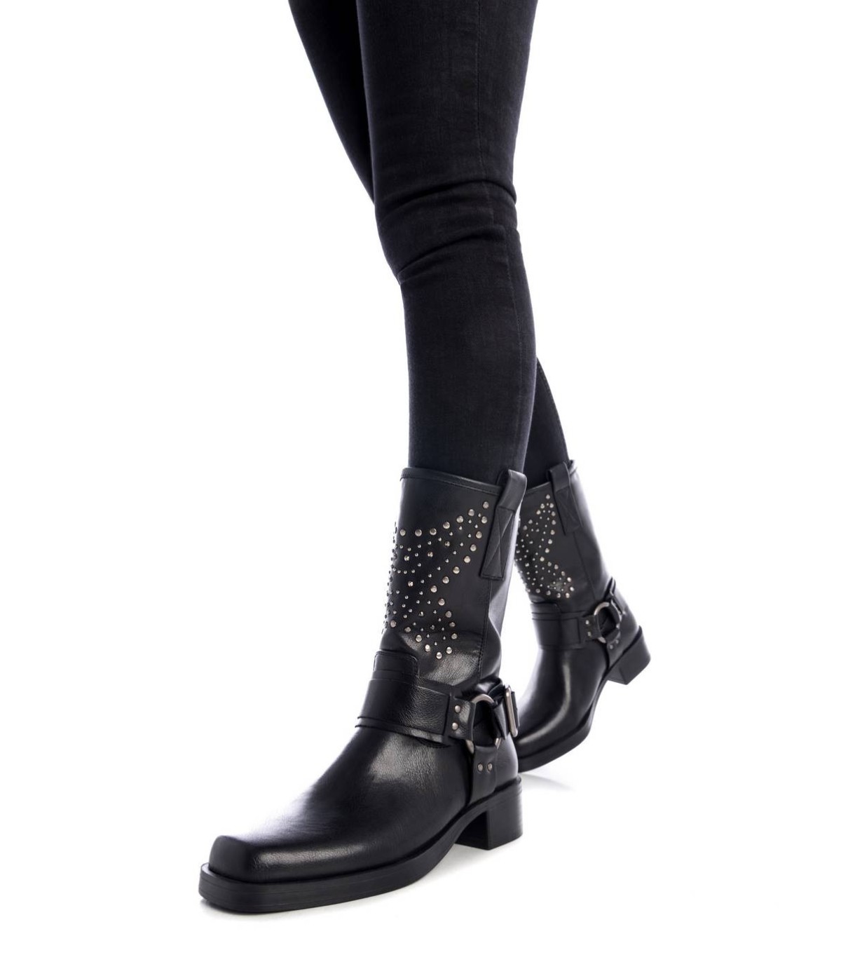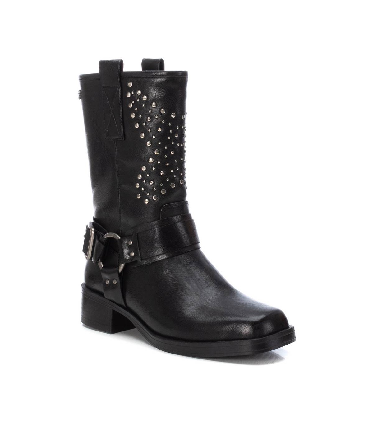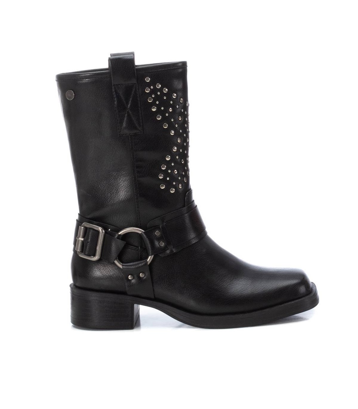 Botín motero de mujer, de la marca Xti. Fabricada en material que imita la piel. Cierre mediante cremallera interior, la cual facilita la puesta. Además de los detalles que trae haciendo un modelo único y diferente. Únete a la tendencia motera de esta temporada. Este modelo ha obtenido el certificado vegano por la organización mundial PETA (Organización de los derechos de los animales).