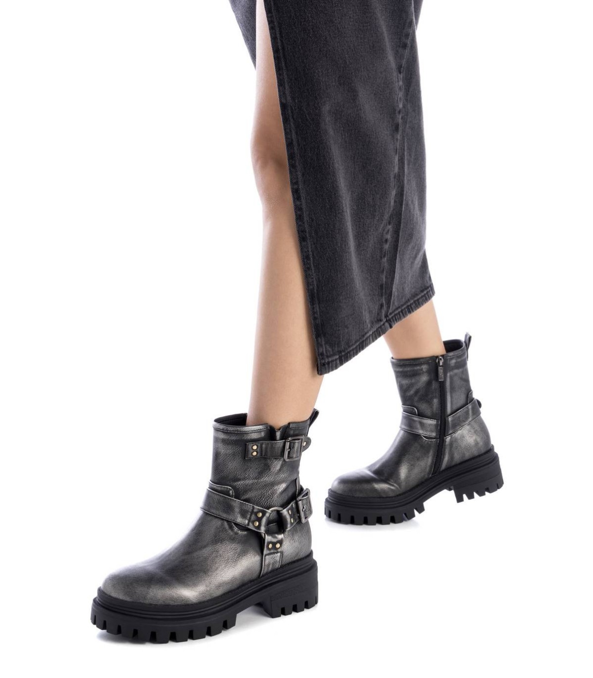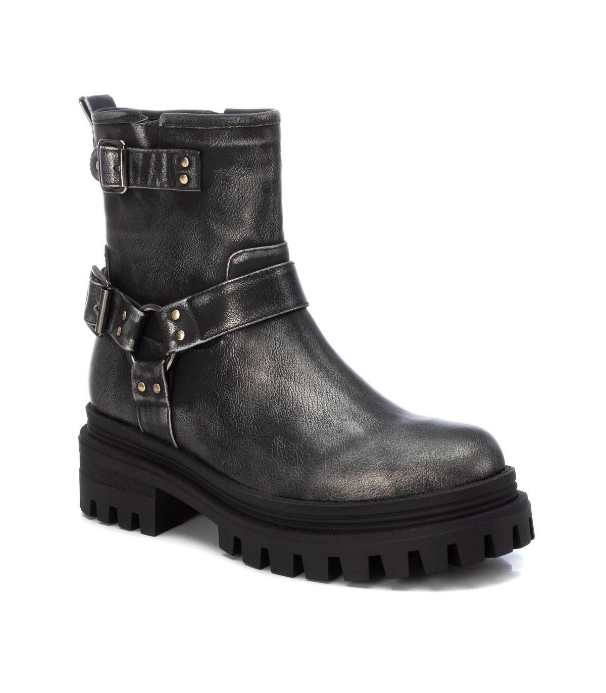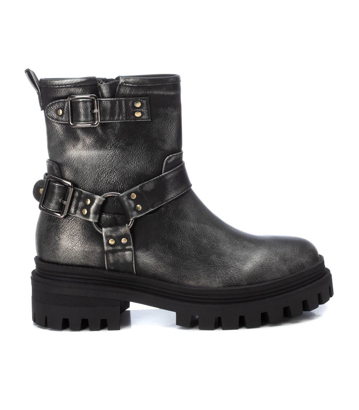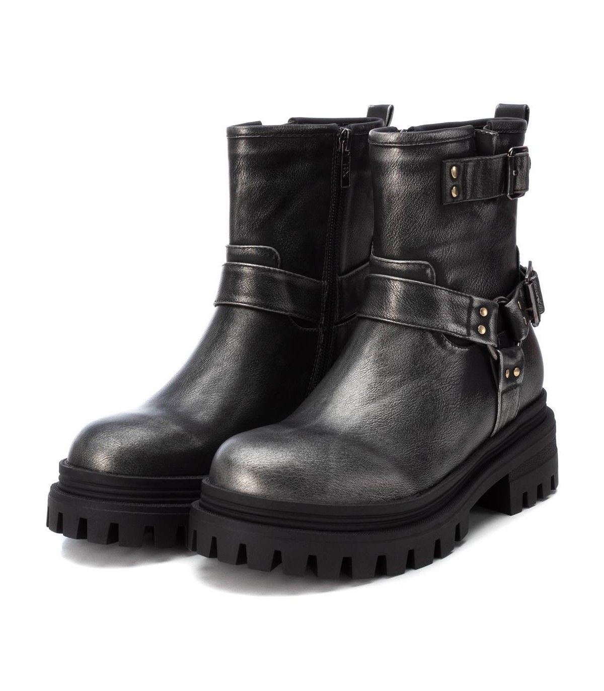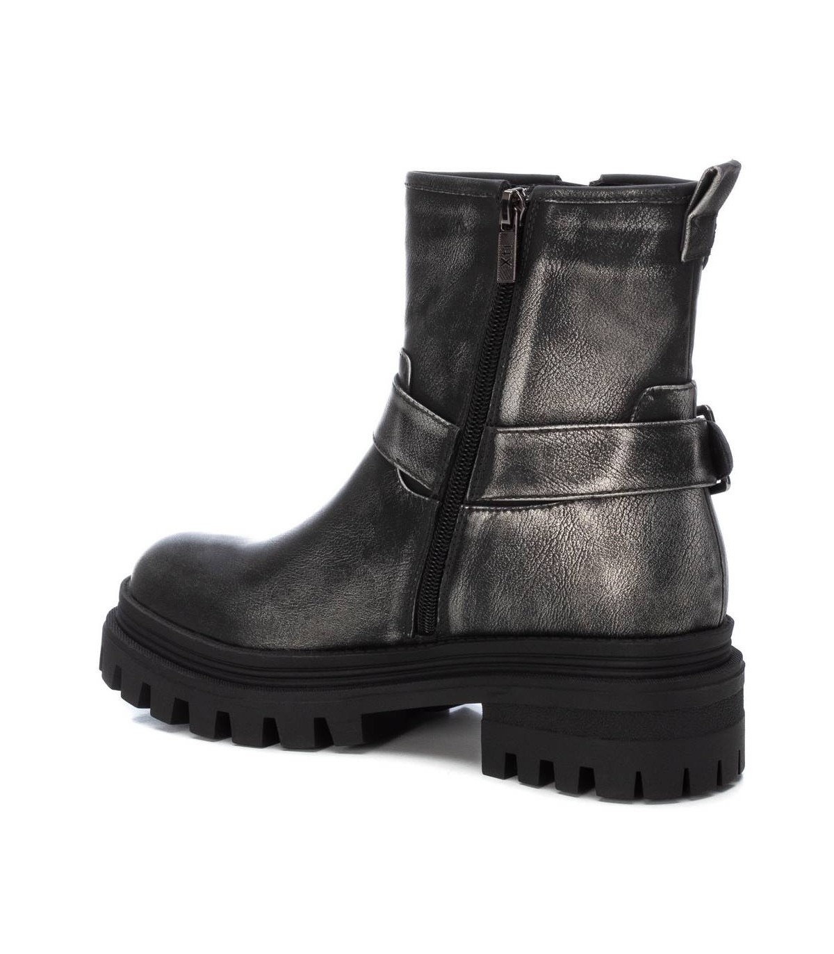 Botín motero de mujer, de la marca Xti. Fabricada en material que imita la piel. Cierre mediante cremallera interior, que con ayuda del tirador trasero facilitara la puesta. Suela gruesa antideslizante. Únete a la tendencia motera de esta temporada. Este modelo ha obtenido el certificado vegano por la organización mundial PETA (Organización de los derechos de los animales).