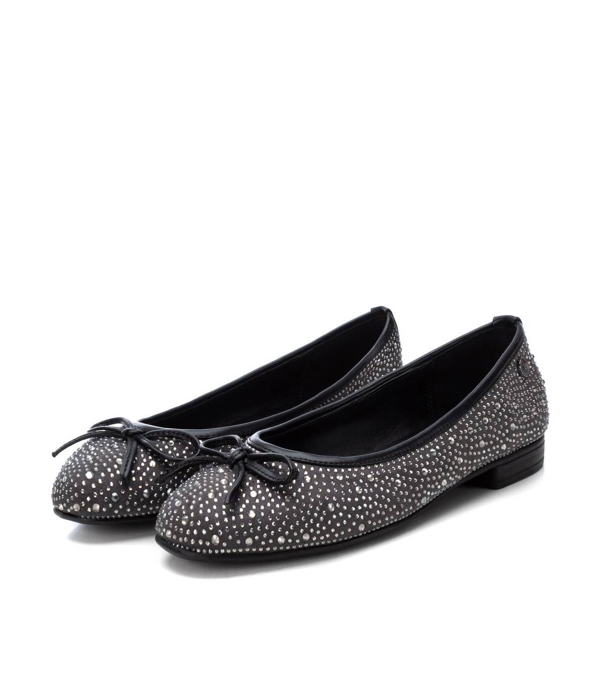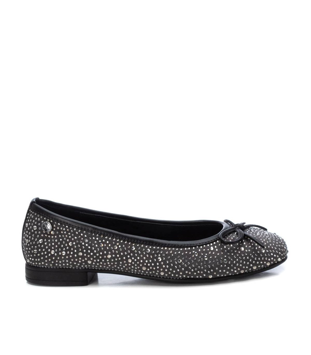 Bailarina de mujer, de la marca Xti. Fabricado en material textil, decorado con cristales decorativos al tono. Suelo de goma plana antideslizante. Muy en tendencia este invierno. Este modelo ha obtenido el certificado vegano por la organización mundial PETA (Organización de los derechos de los animales).