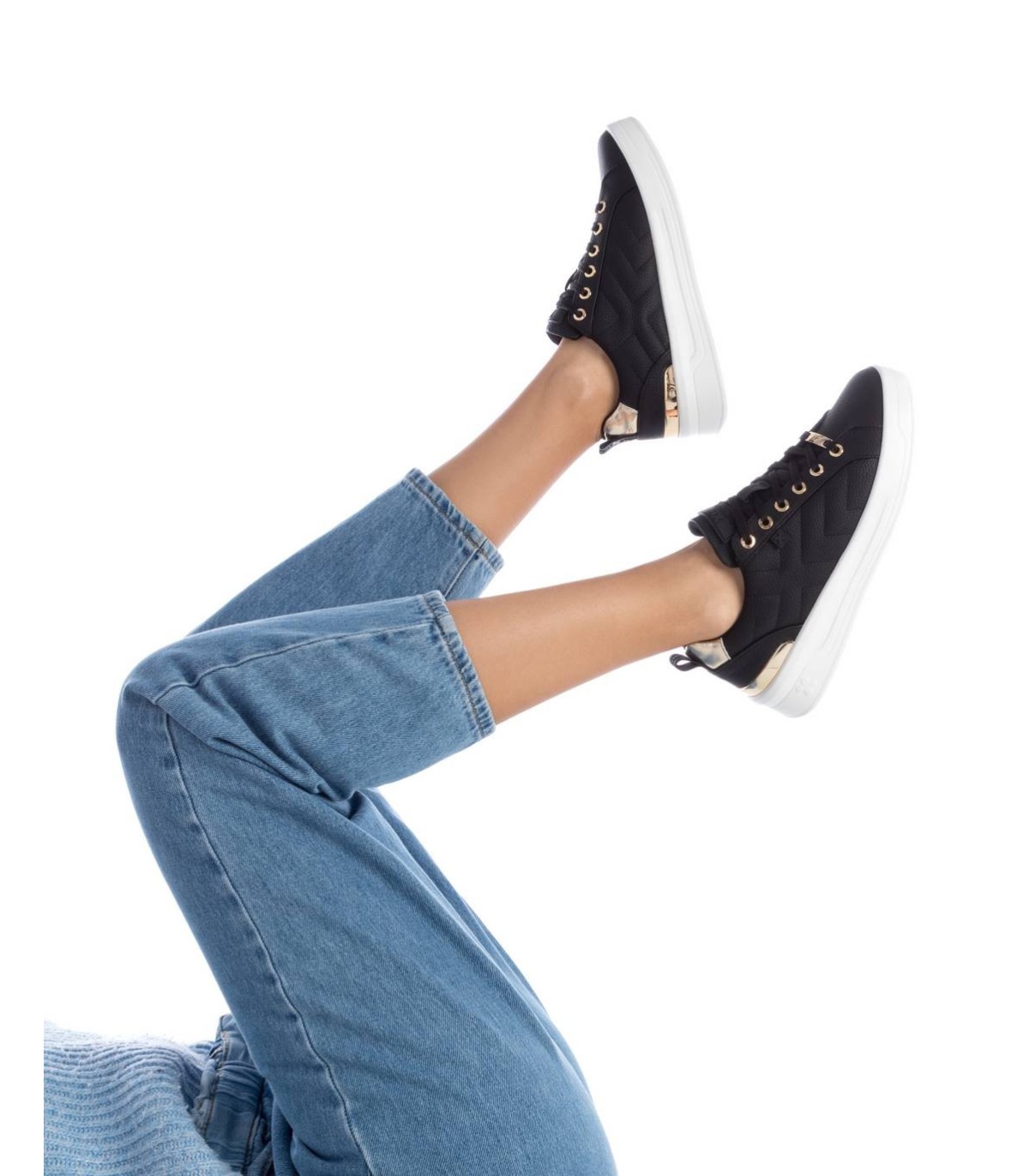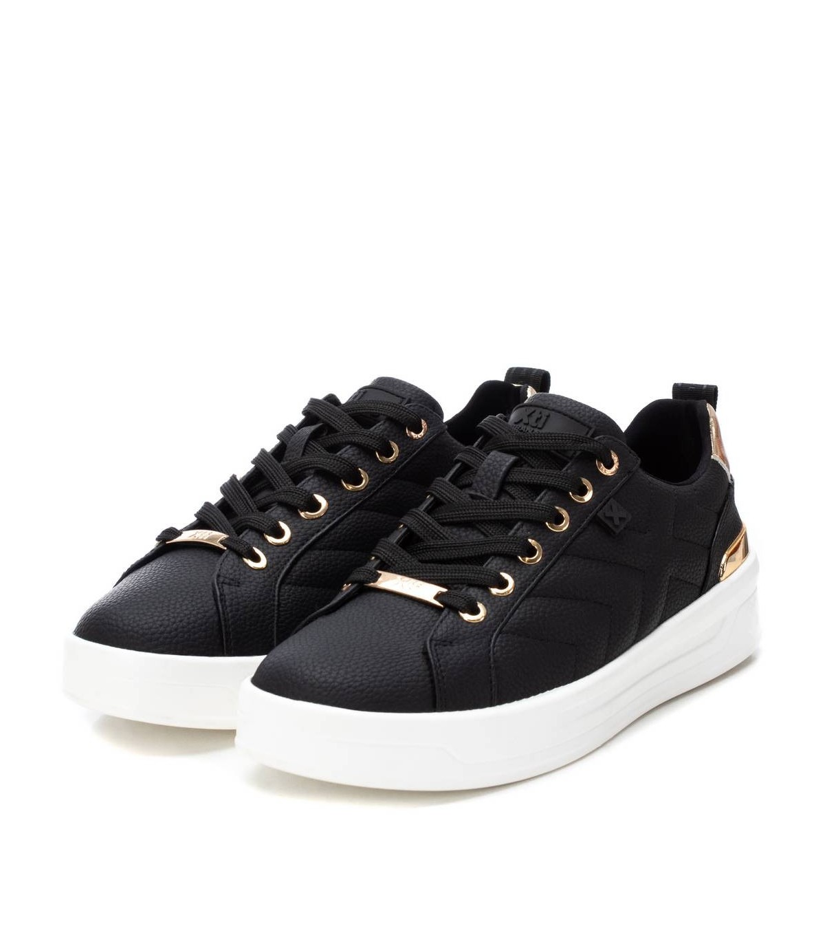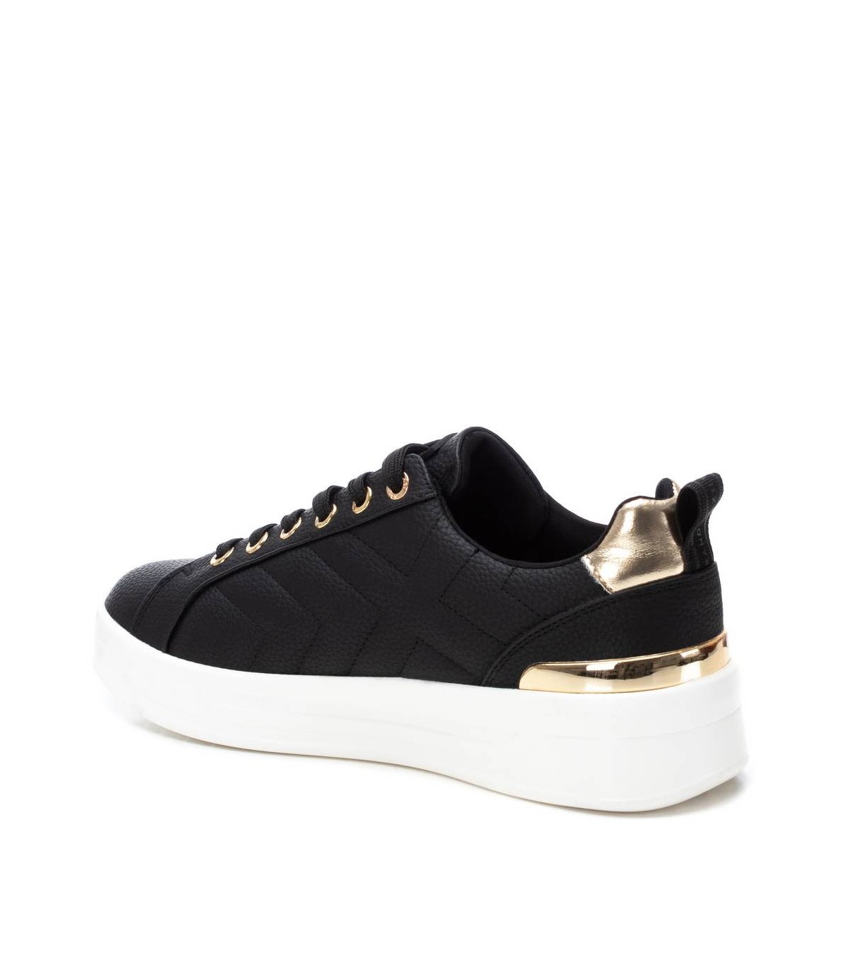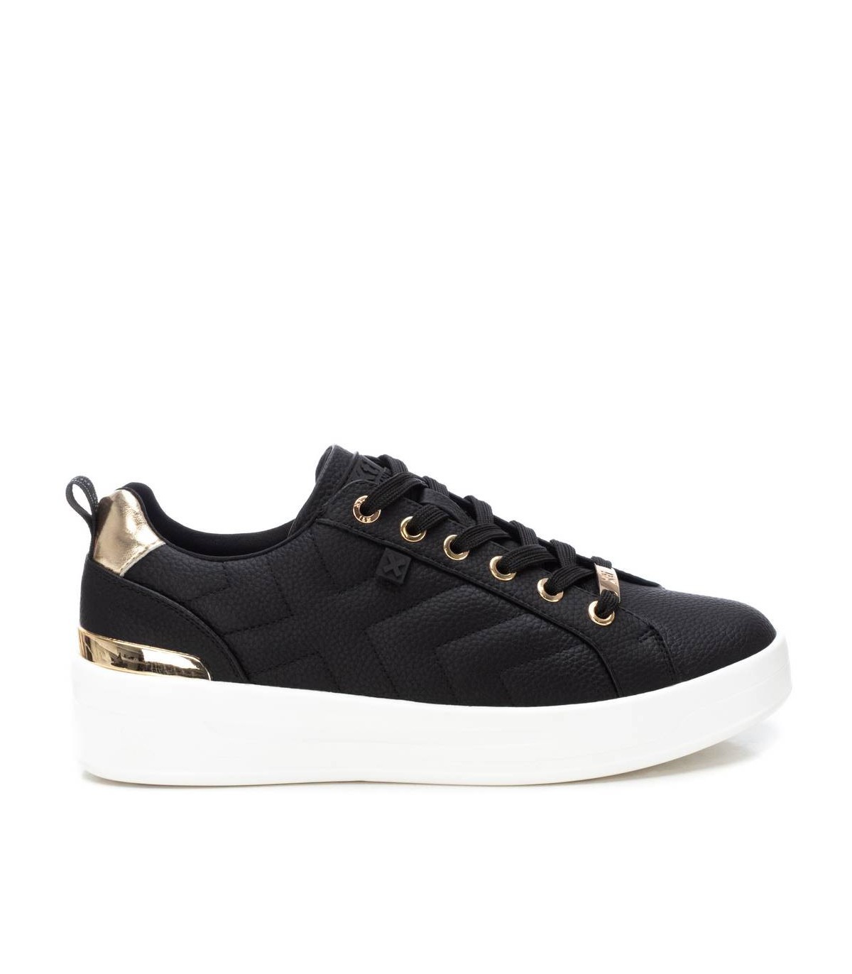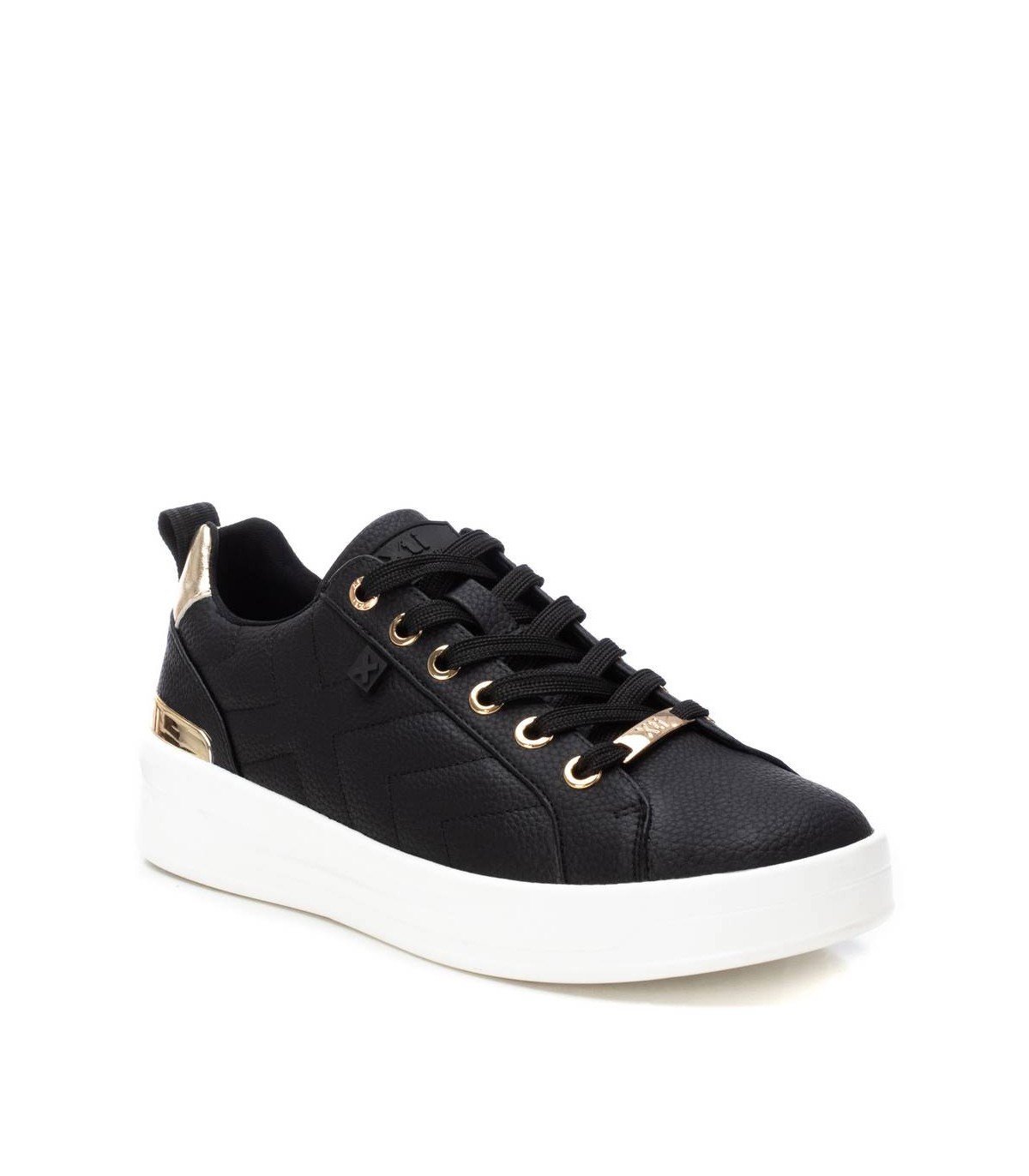 Zapatilla de mujer de la marca Xti, fabricado en material que imita la piel. Se trata de una zapatilla básica para el invierno que no puede faltar en tu armario. Cierre cordones regulables. Detalles metalizados. Con 4 cm de suela gruesa de goma antideslizante y cómoda. Con plantilla extraíble. Este modelo ha obtenido el certificado vegano por la organización mundial PETA (Organización de los derechos de los animales).