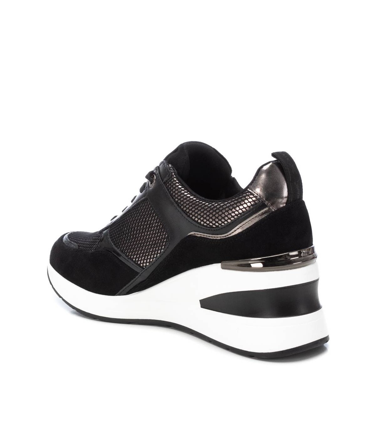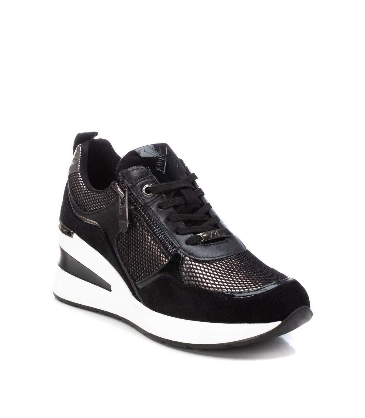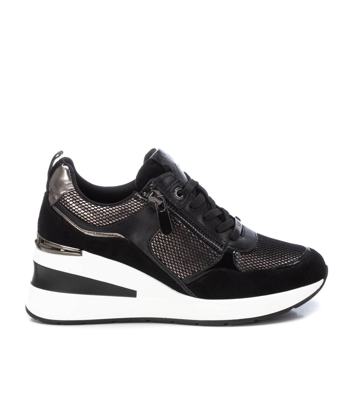 Zapatilla de mujer, de la marca Xti. Fabricado en material que imita la piel. Con cierre cremallera lateral y cordones ajustables para mayor comodidad y buen ajuste. Tirador trasero y delantero que facilitan la puesta. Cómoda cuña de 6 cm con suela de goma antideslizante. Con plantilla extraíble. Este modelo ha obtenido el certificado vegano por la organización mundial PETA (Organización de los derechos de los animales).