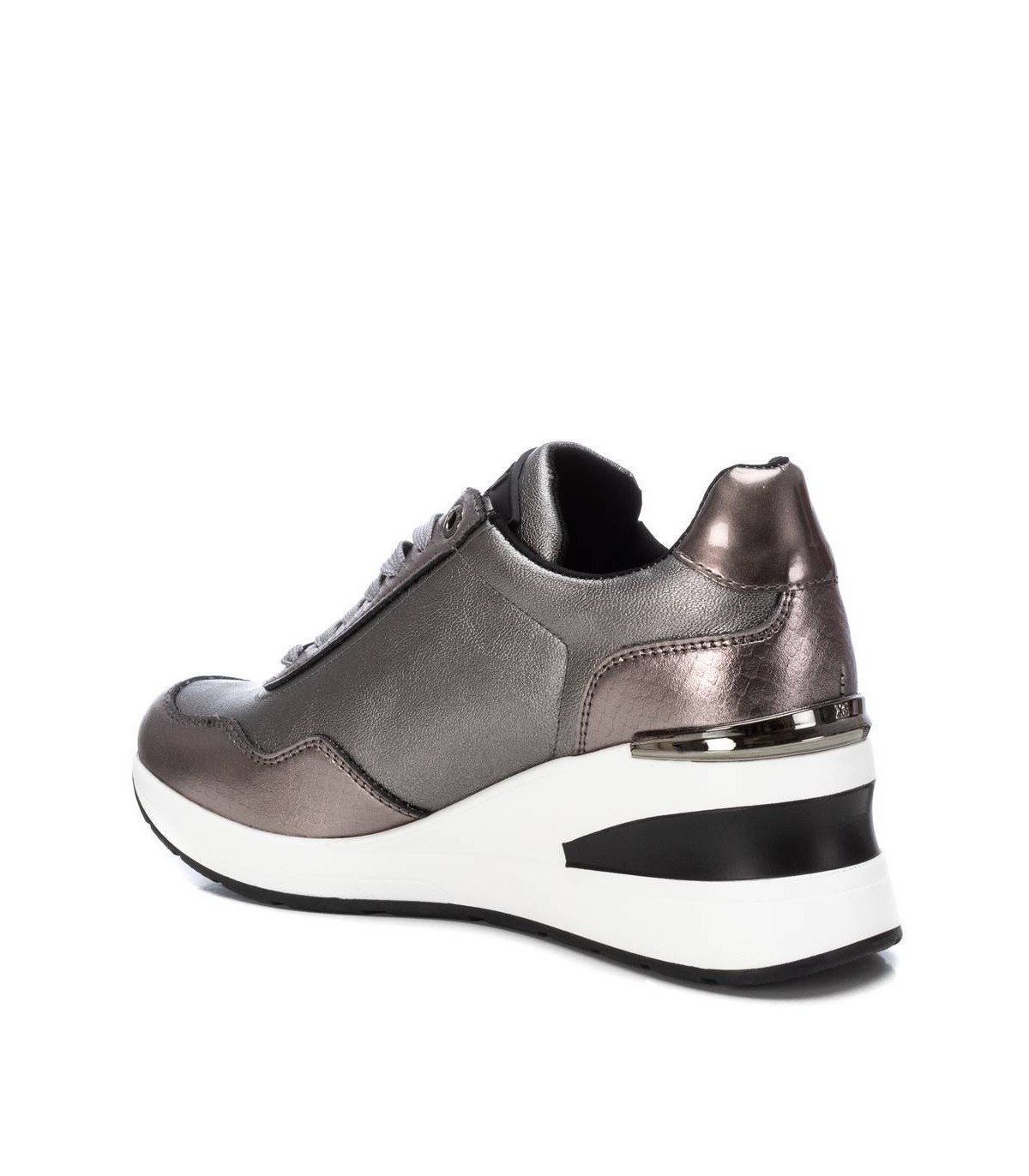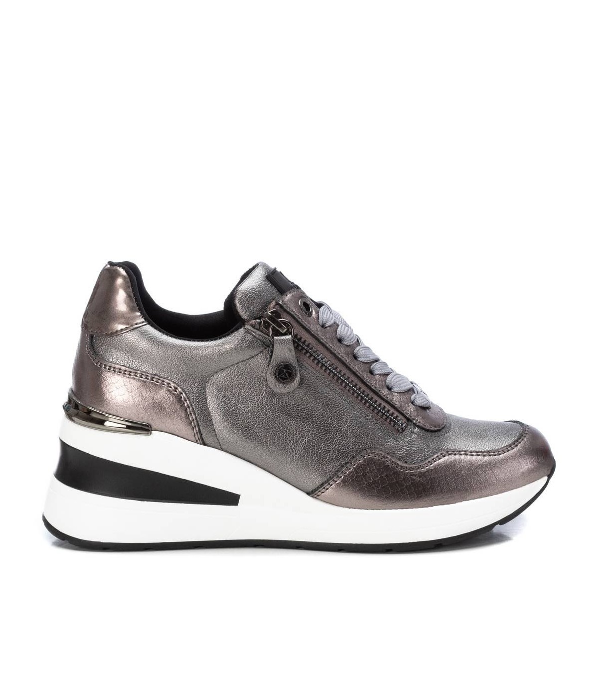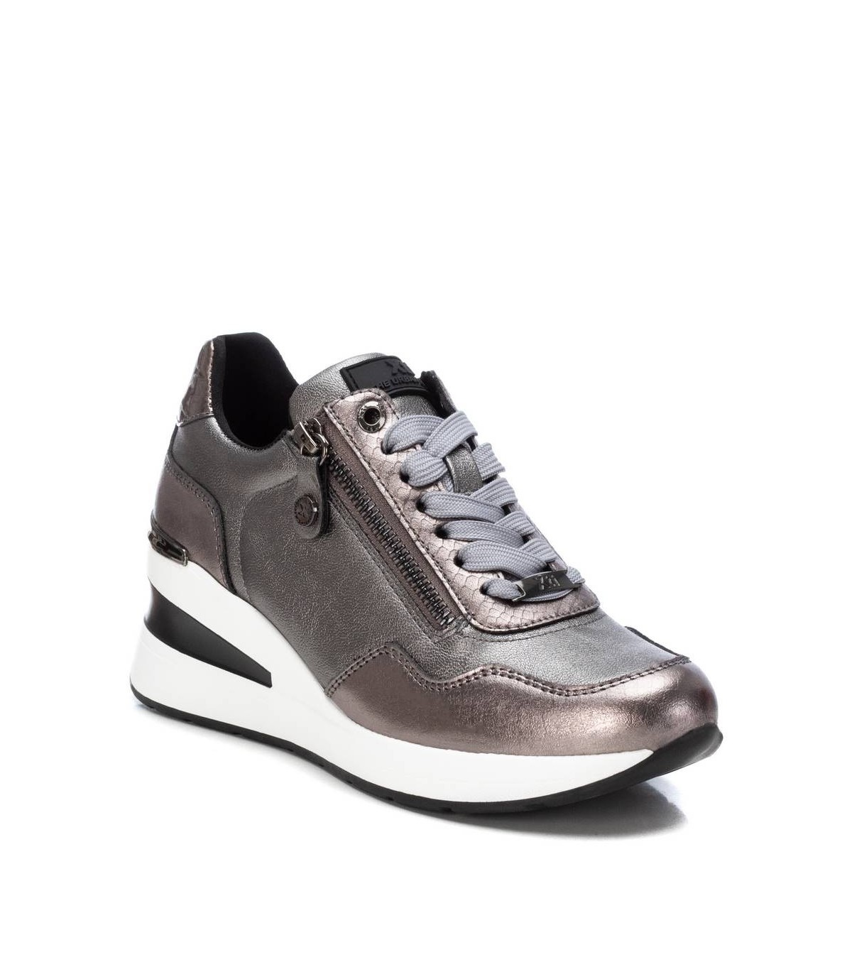 Zapatilla de mujer, de la marca Xti. Fabricado en material que imita la piel. Con cierre cremallera lateral y cordones ajustables para mayor comodidad y buen ajuste. Cómoda cuña de 6 cm con suela de goma dentada antideslizante. Con plantilla extraíble. Este modelo ha obtenido el certificado vegano por la organización mundial PETA (Organización de los derechos de los animales).