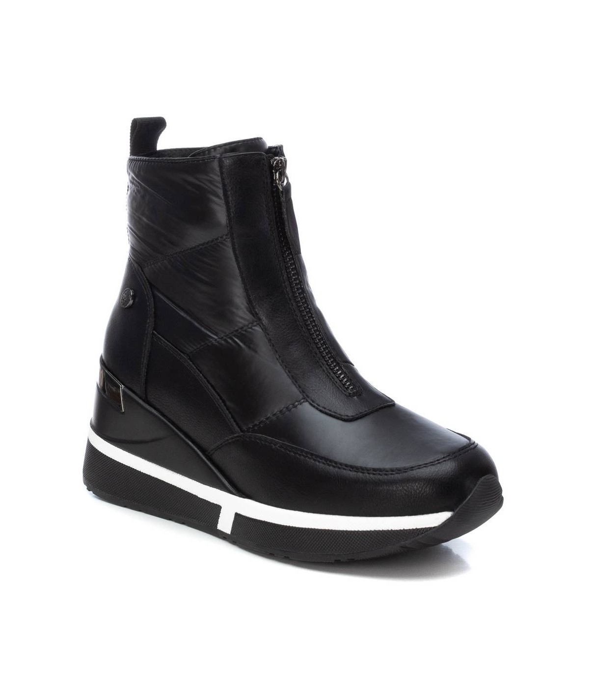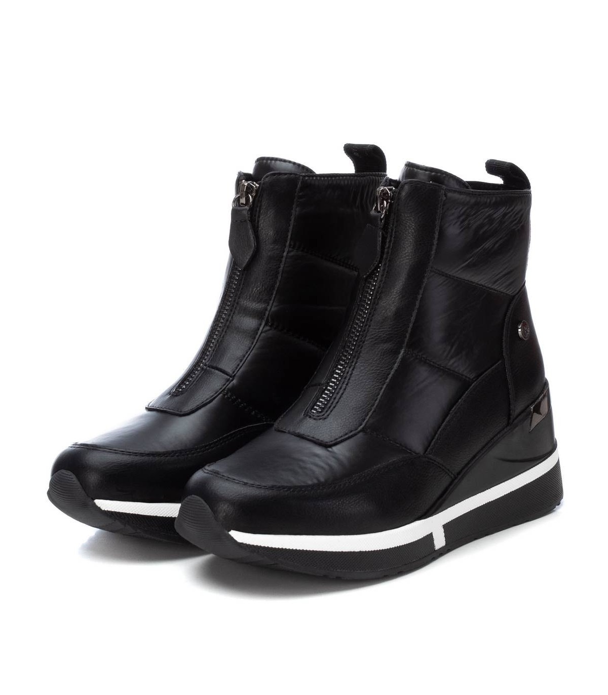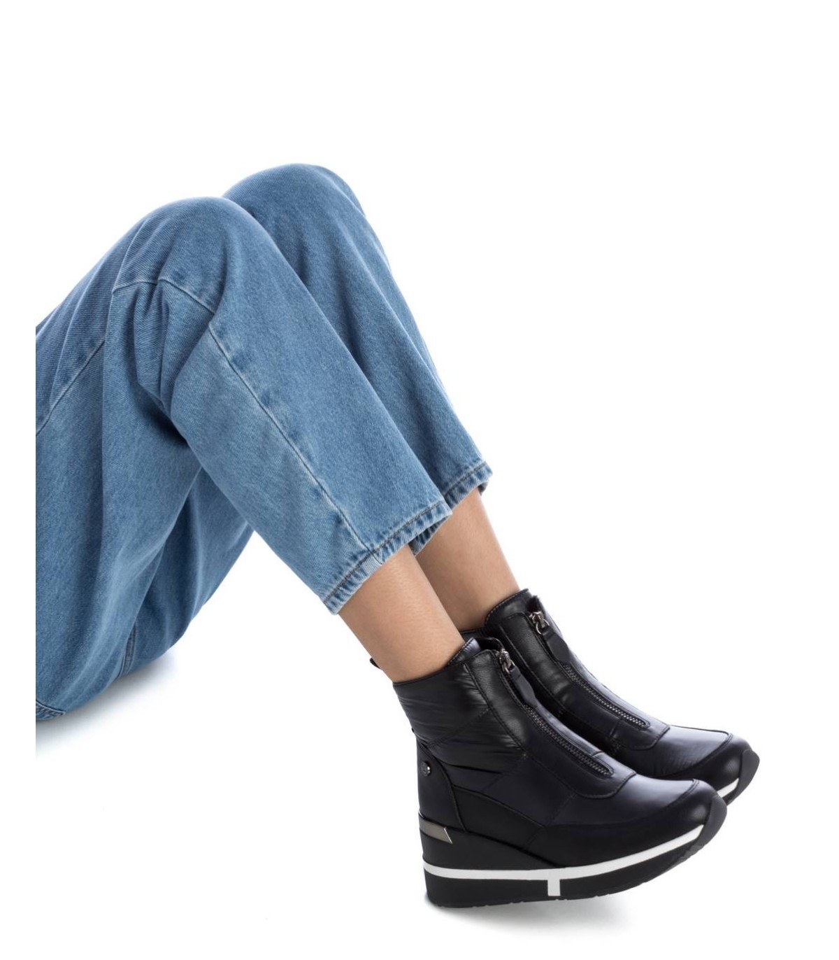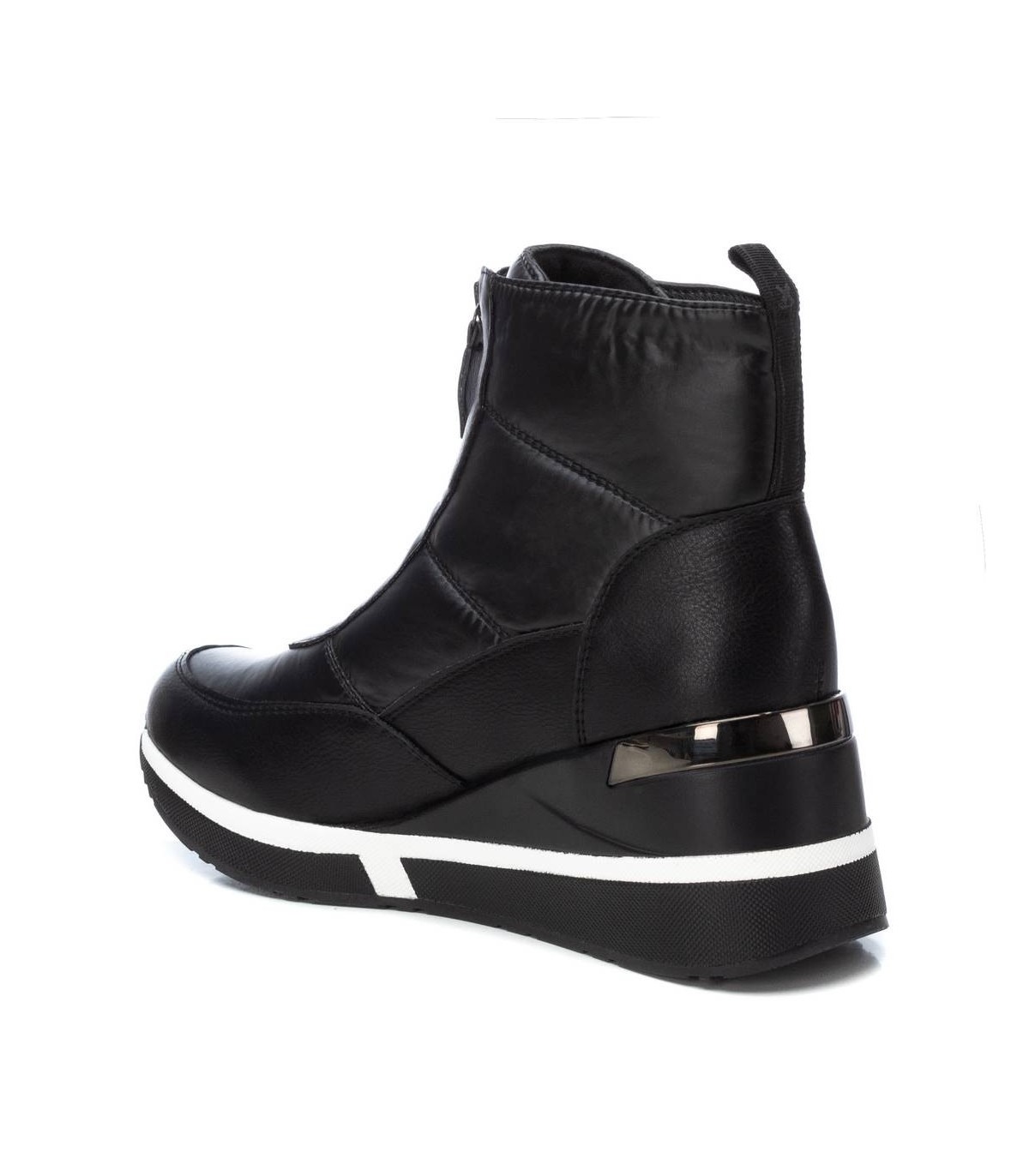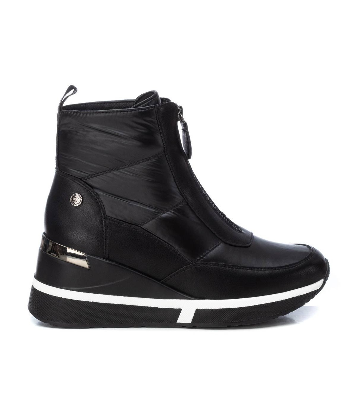 Botín de mujer, de la marca de Xti. Fabricada en textil metalizado. Con cierre de cremallera en la parte delantera para facilitar su puesta y comodidad, junto con cordones ajustables. Tirador trasero para facilitar el calce, suela de goma antideslizante. Con plantilla extraíble. Este modelo ha obtenido el certificado vegano por la organización mundial PETA (Organización de los derechos de los animales).