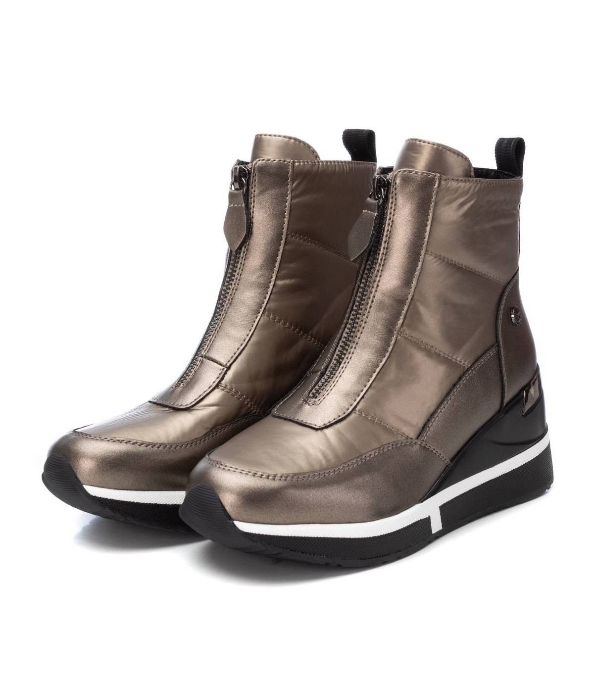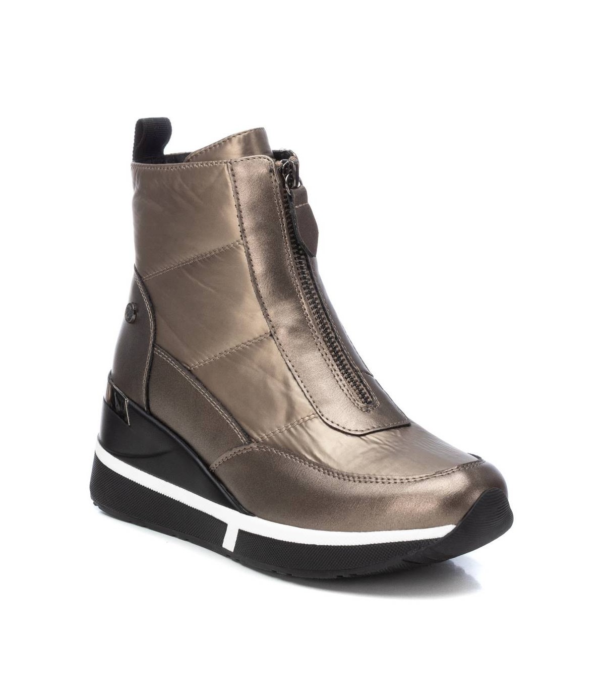 Botín de mujer, de la marca de Xti. Fabricada en textil metalizado. Con cierre de cremallera en la parte delantera para facilitar su puesta y comodidad, junto con cordones ajustables. Tirador trasero para facilitar el calce, suela de goma antideslizante. Con plantilla extraíble. Este modelo ha obtenido el certificado vegano por la organización mundial PETA (Organización de los derechos de los animales).