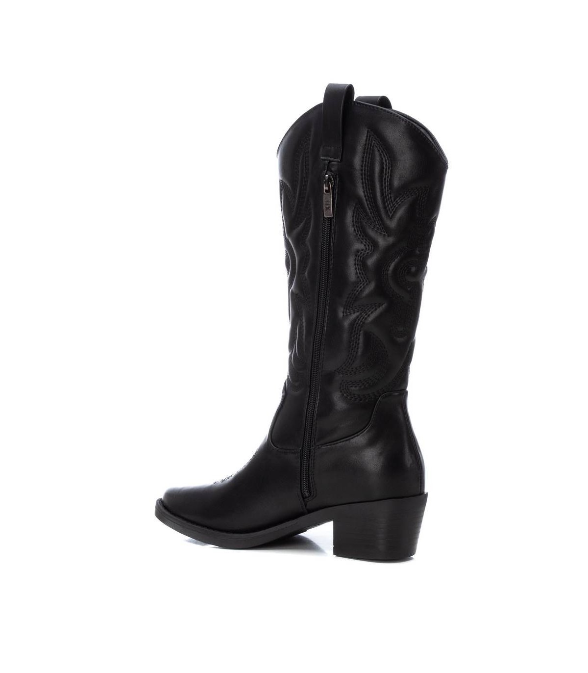 Bota cowboy de mujer, de la marca Xti. Fabricada en un material que imita la piel. Cierre mediante cremallera lateral. Bordado en la caña estilo cowboy. Un básico fácil de combinar con tus mejores looks. Este modelo ha obtenido el certificado vegano por la organización mundial PETA (Organización de los derechos de los animales).
