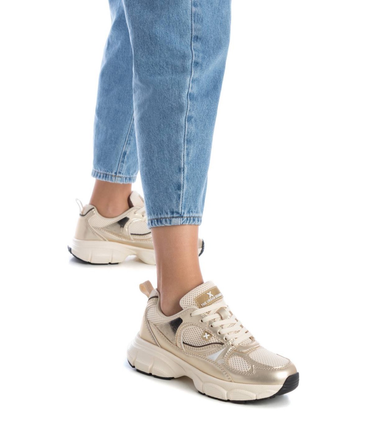 Zapatilla de mujer, de la marca Xti. Fabricado en un material que imita la piel. Cierre cordones para un mayor ajuste. Con tirador trasero para facilitar el calce. Ideal para un look sport. Suela gruesa deportiva antideslizante. Con plantilla extraíble. Este modelo ha obtenido el certificado vegano por la organización mundial PETA (Organización de los derechos de los animales).