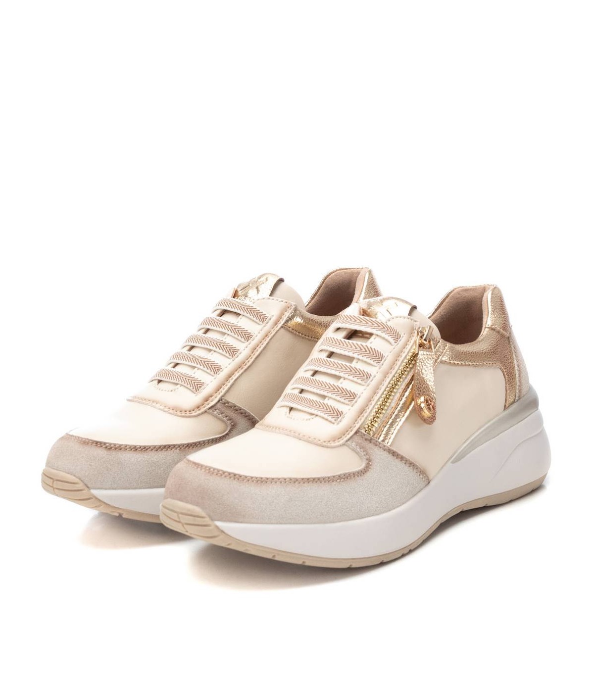 Zapatilla de mujer, de la marca Xti. Fabricada en un material que imita la piel. Detalles metalizados. Cierre cremallera lateral y cordones para un mayor ajuste. Suela de goma gruesa y antideslizante. Con plantilla extraíble. Este modelo ha obtenido el certificado vegano por la organización mundial PETA (Organización de los derechos de los animales).