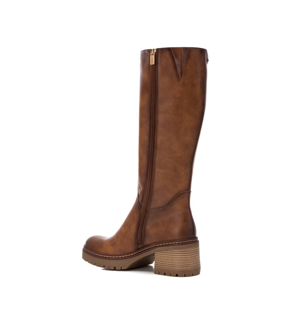 Bota de mujer, de la marca Xti. Fabricada en un material que imita la piel. Caña alta. Cierre cremallera en el lateral. Tacón grueso de 6 cm. Estilo motero, un indispensable para esta temporada. Este modelo ha obtenido el certificado vegano por la organización mundial PETA (Organización de los derechos de los animales).