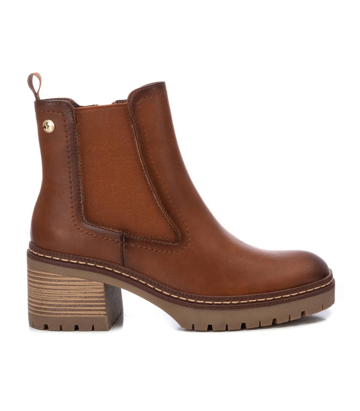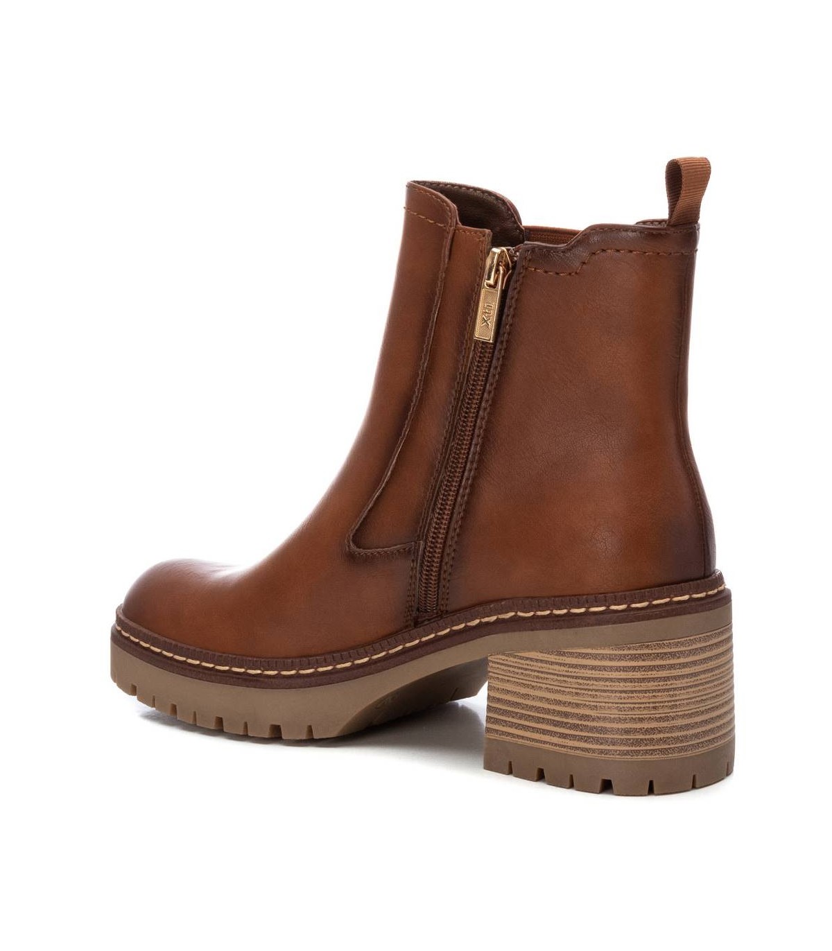 Botín de mujer, de la marca Xti. Fabricada en material que imita la piel. Botín estilo Chelsea con cierre cremallera y elástico en el lateral para mayor comodidad. Tirador trasero para facilitar el calce. Este modelo ha obtenido el certificado vegano por la organización mundial PETA (Organización de los derechos de los animales).