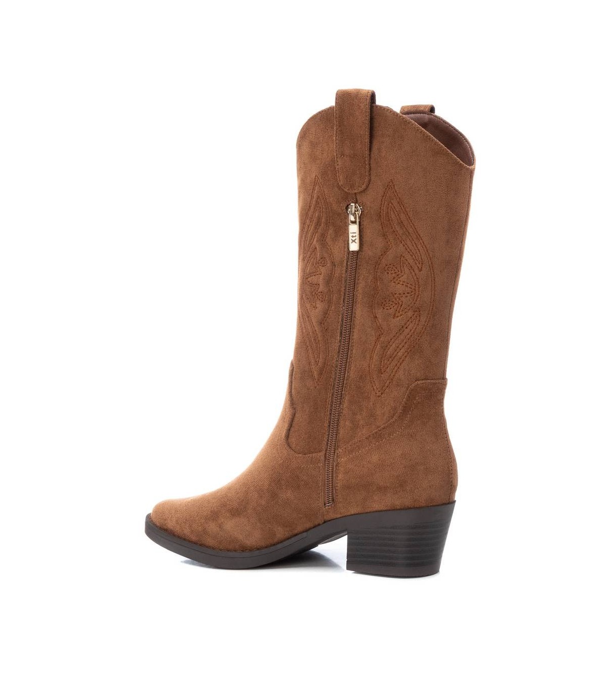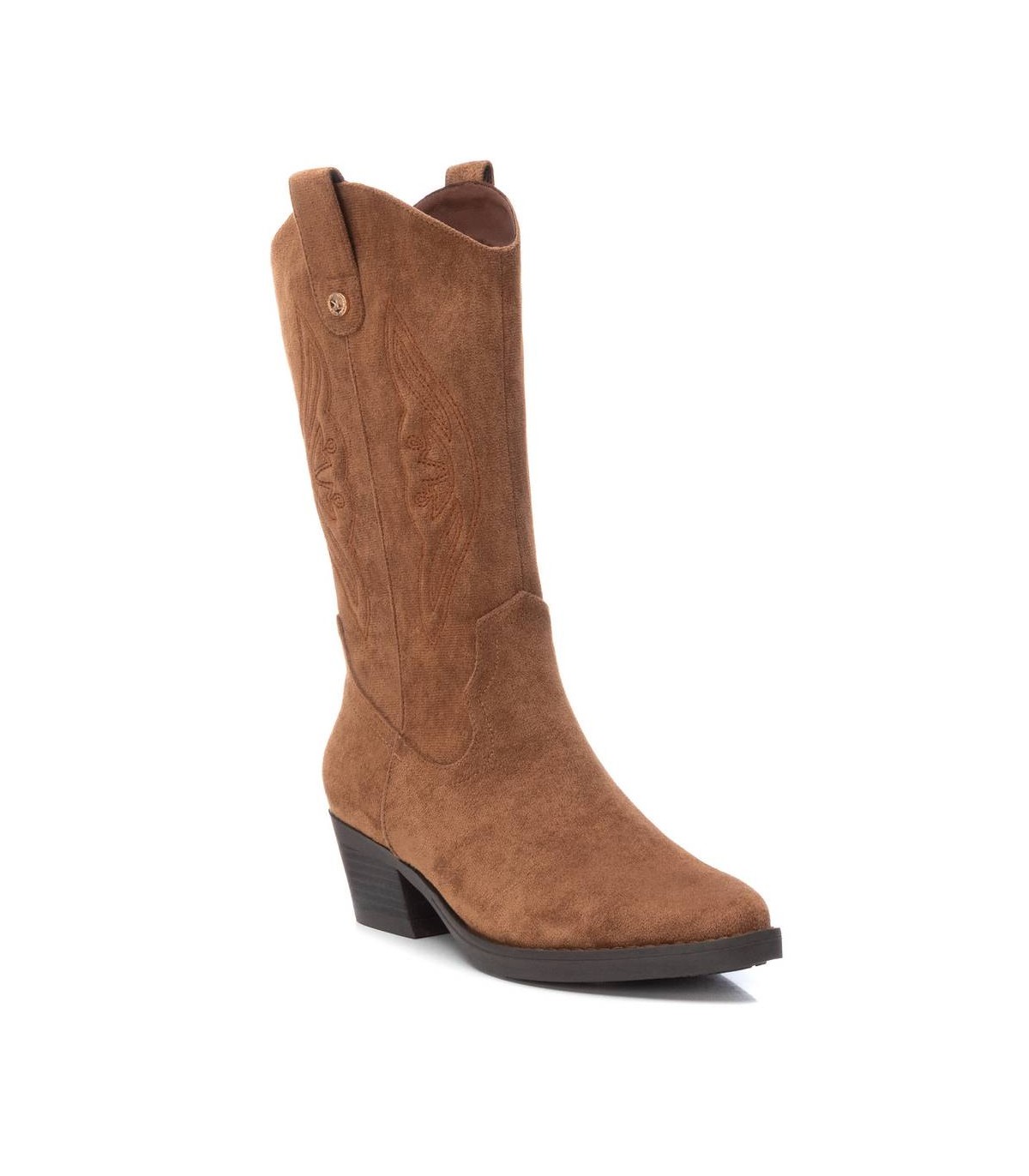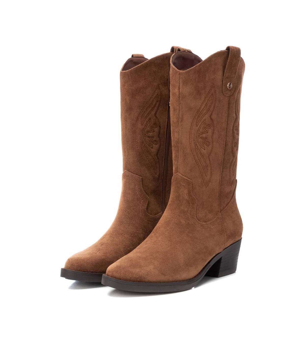 Bota de mujer, de la marca Xti. Fabricada en una suave antelina. Cierre mediante cremallera lateral. Bordado en la caña estilo cowboy. Modelo en tendencia. Este modelo ha obtenido el certificado vegano por la organización mundial PETA (Organización de los derechos de los animales).