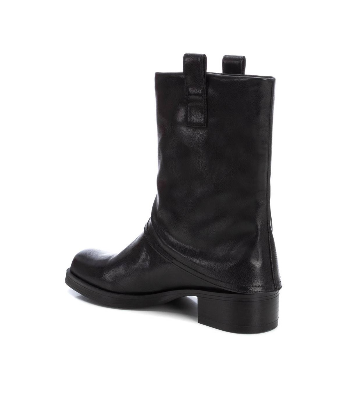 Botín de mujer, de la marca Xti. Fabricada en un material que imita la piel. Modelo con estilo clásico e innovador, un botín que no puede faltar este año en tu armario. Cierre cremallera y tiradores laterales para facilitar la puesta. Este modelo ha obtenido el certificado vegano por la organización mundial PETA (Organización de los derechos de los animales).