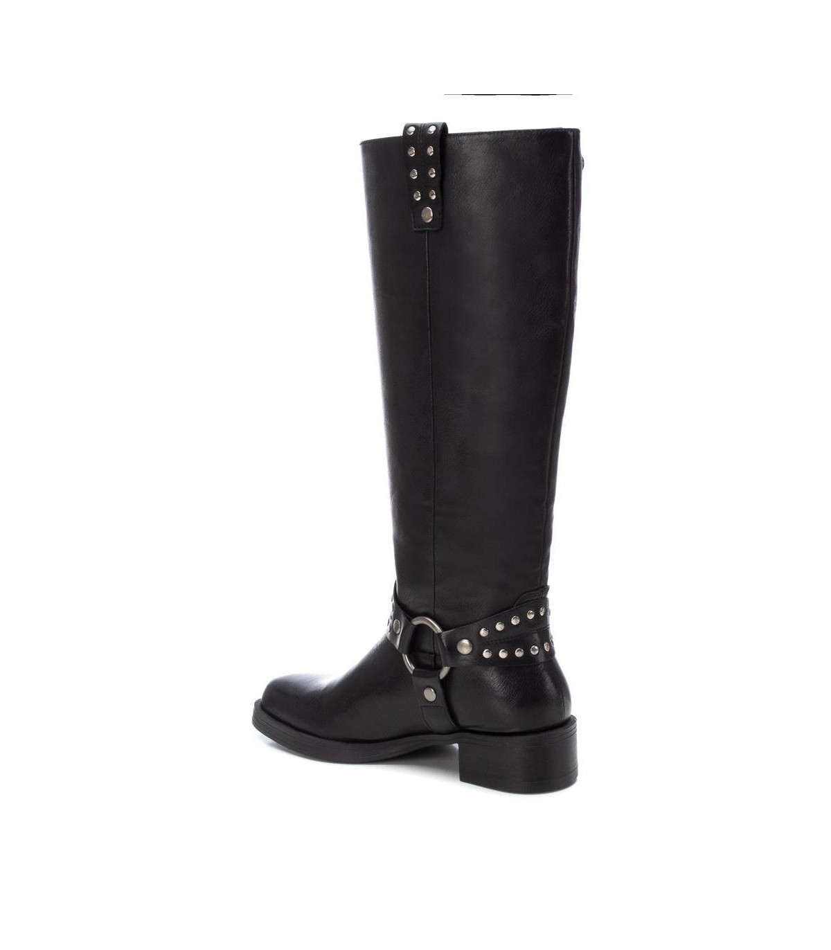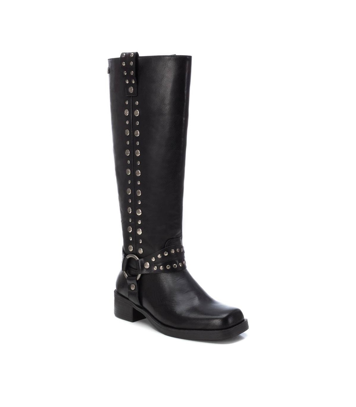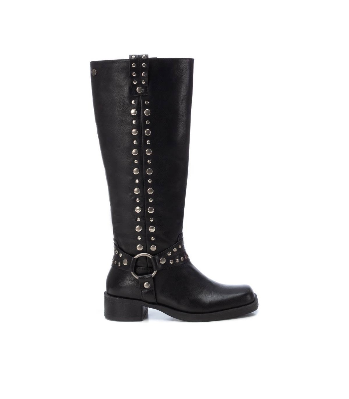 Bota de mujer, de la marca Xti. Fabricada en un material que imita la piel. Cierre cremallera para facilitar su puesta. Estilo motorista. Con hebilla decorativa. Modelo en tendencia esta temporada. Este modelo ha obtenido el certificado vegano por la organización mundial PETA (Organización de los derechos de los animales).