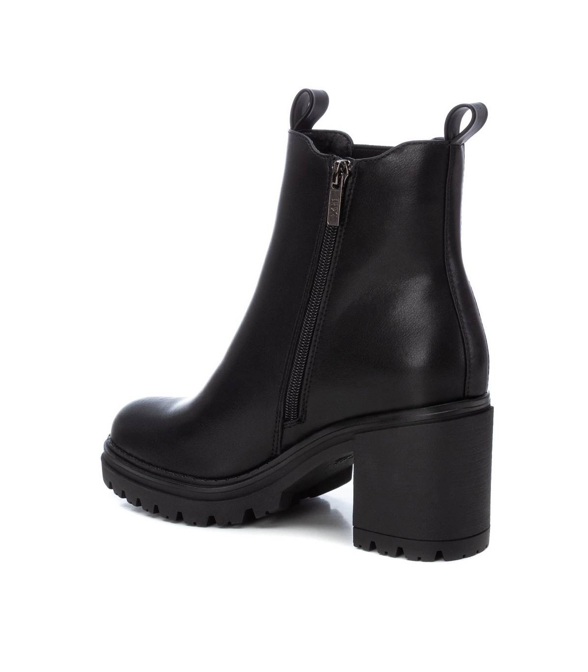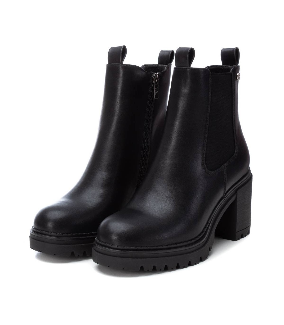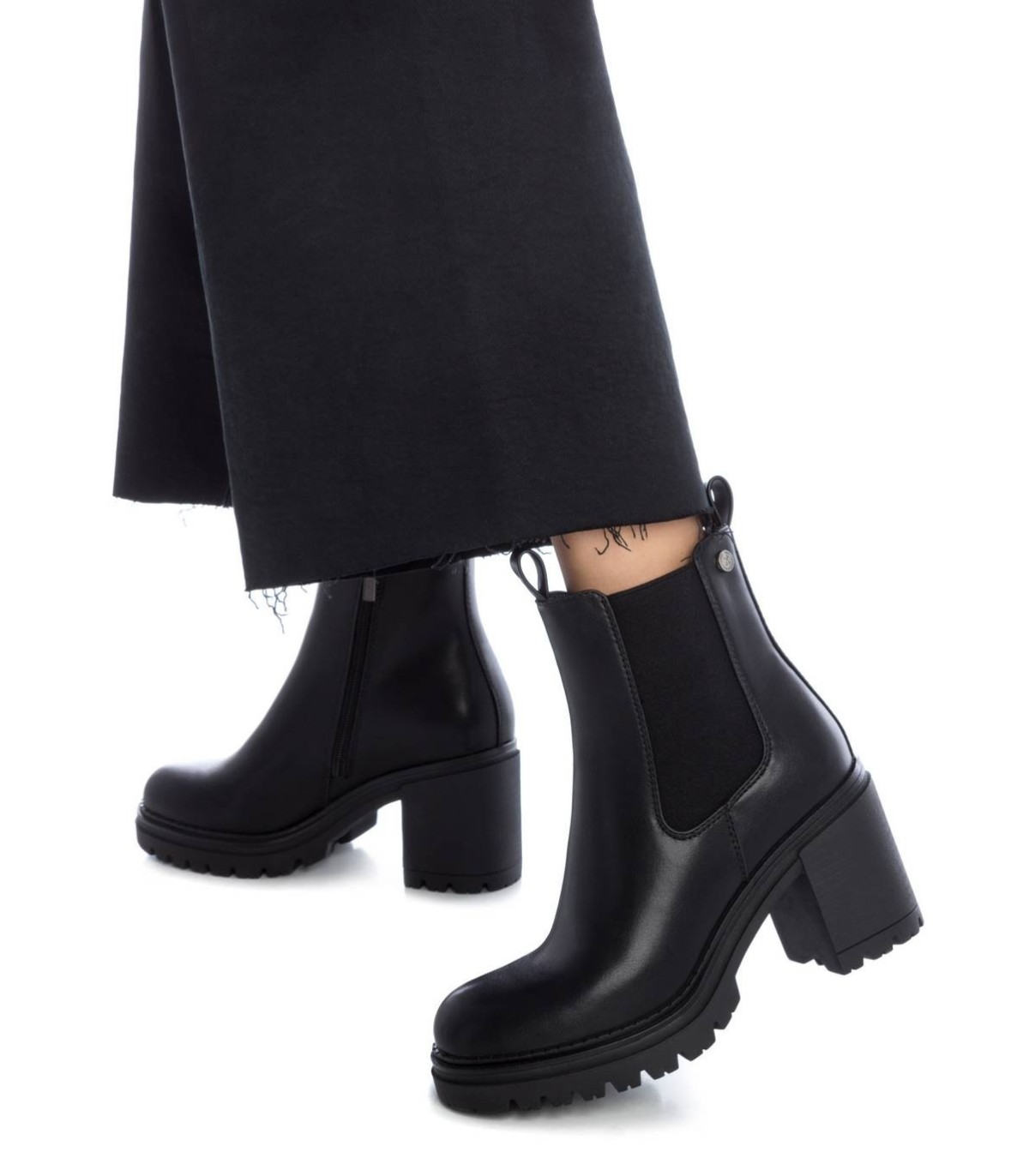 Botín de mujer, de la marca Xti. Fabricado en un material que imita la piel. Cierre lateral mediante cremallera y lateral elástico para mayor ajuste y comodidad. Suela gruesa, antideslizante y tacón de 7?cm. Este modelo ha obtenido el certificado vegano por la organización mundial PETA (Organización de los derechos de los animales).