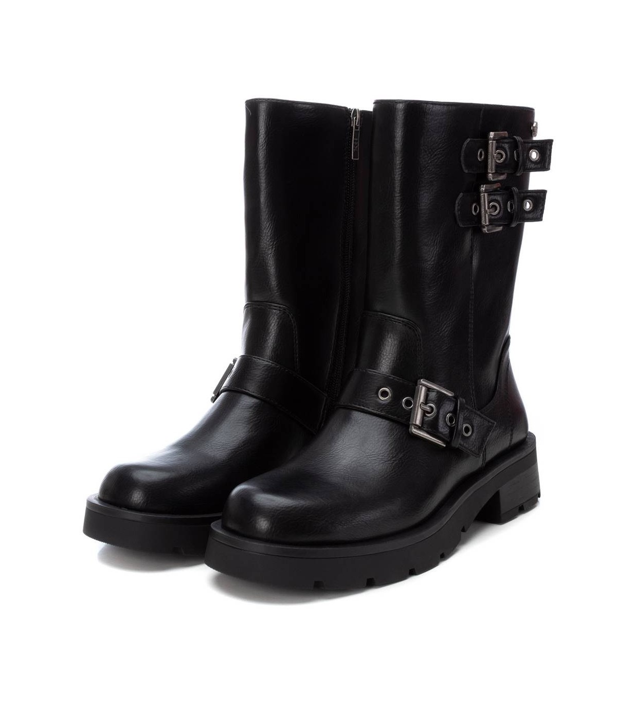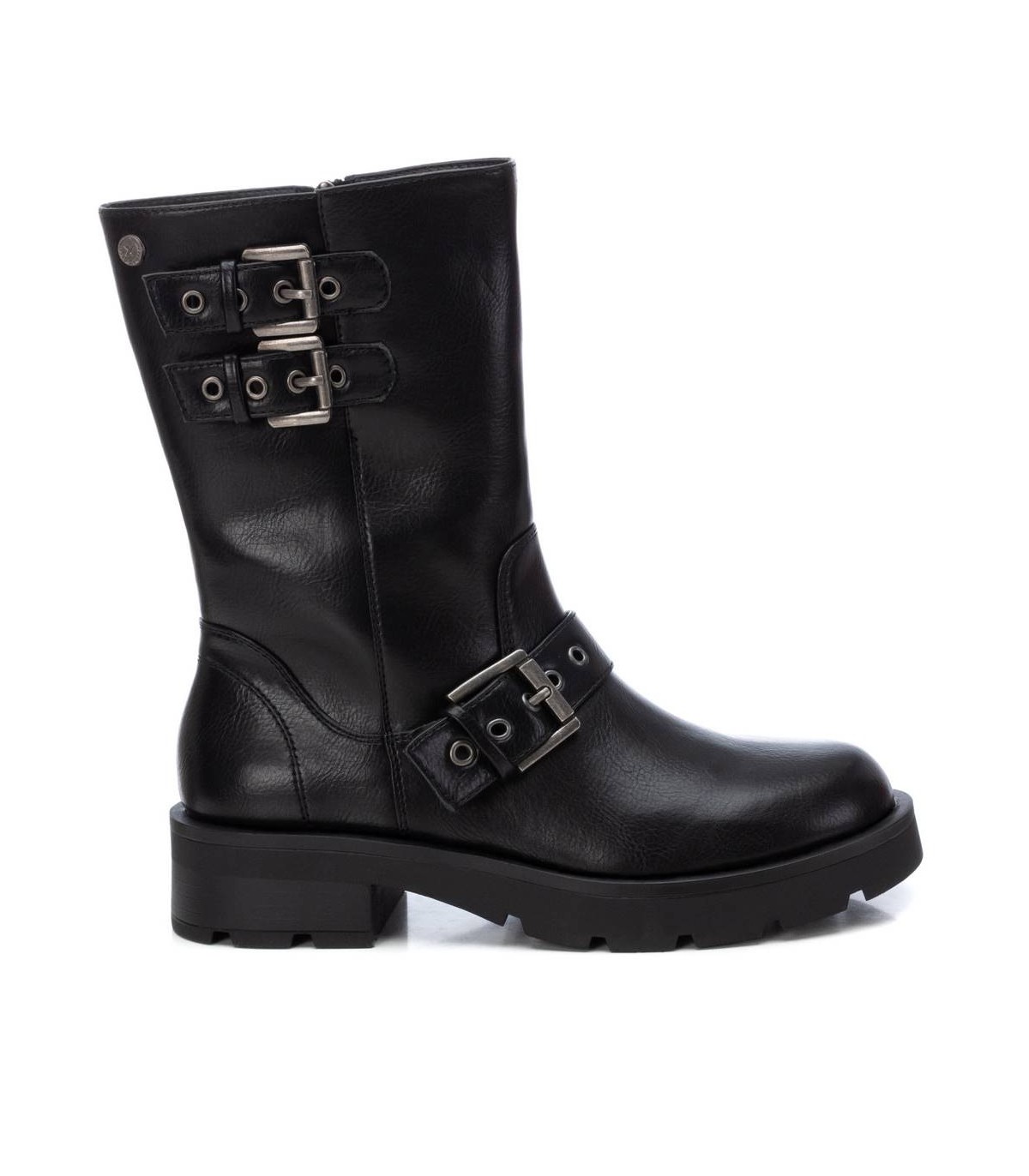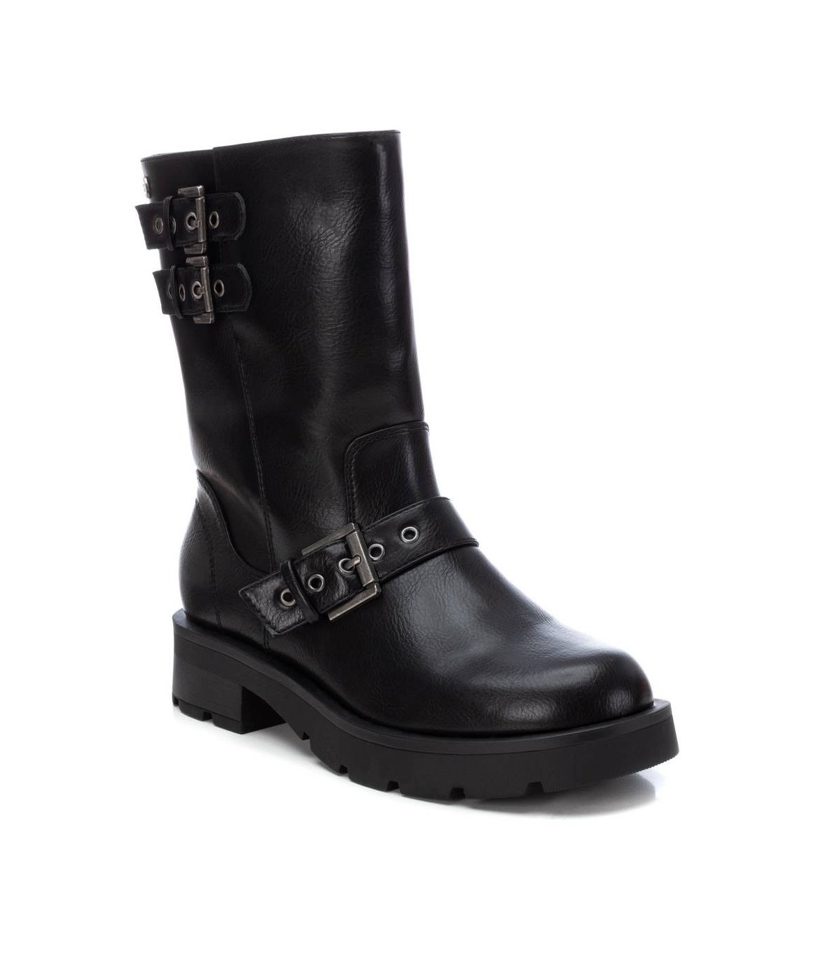 Botín de mujer, de la marca Xti. Fabricado en un material que imita la piel. Botín estilo biker, modelo en tendencia. Diseñado con hebillas decorativas. Cierre cremallera en el lateral, para mayor comodidad. Este modelo ha obtenido el certificado vegano por la organización mundial PETA (Organización de los derechos de los animales).