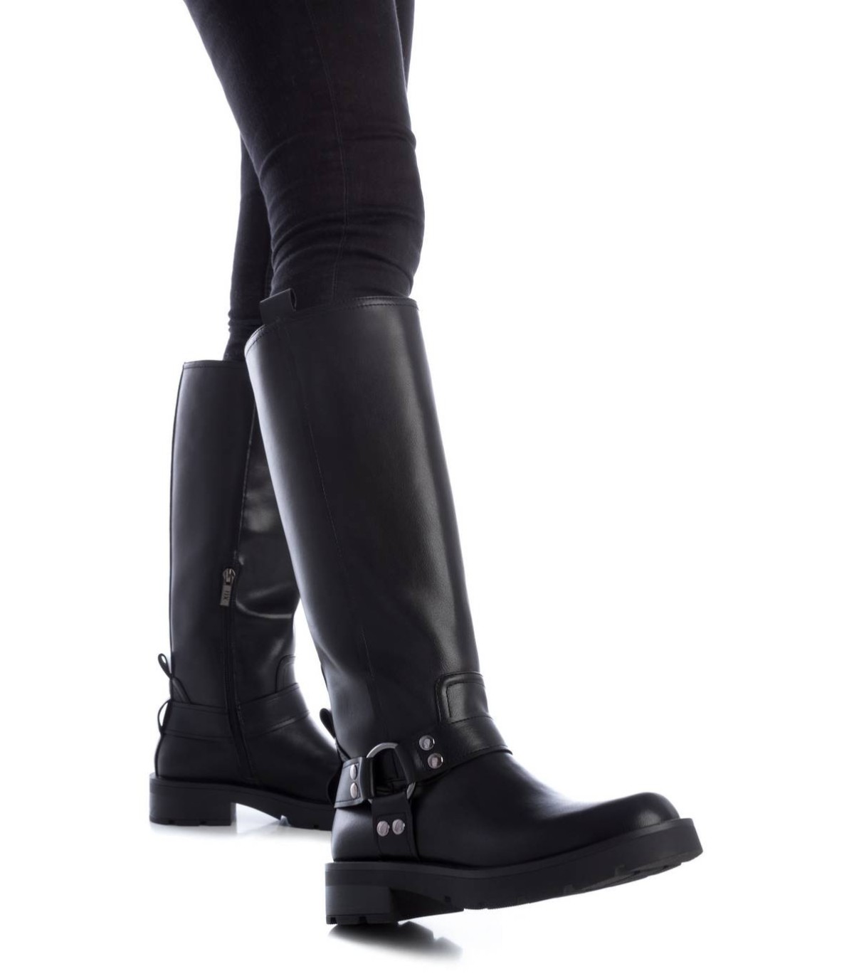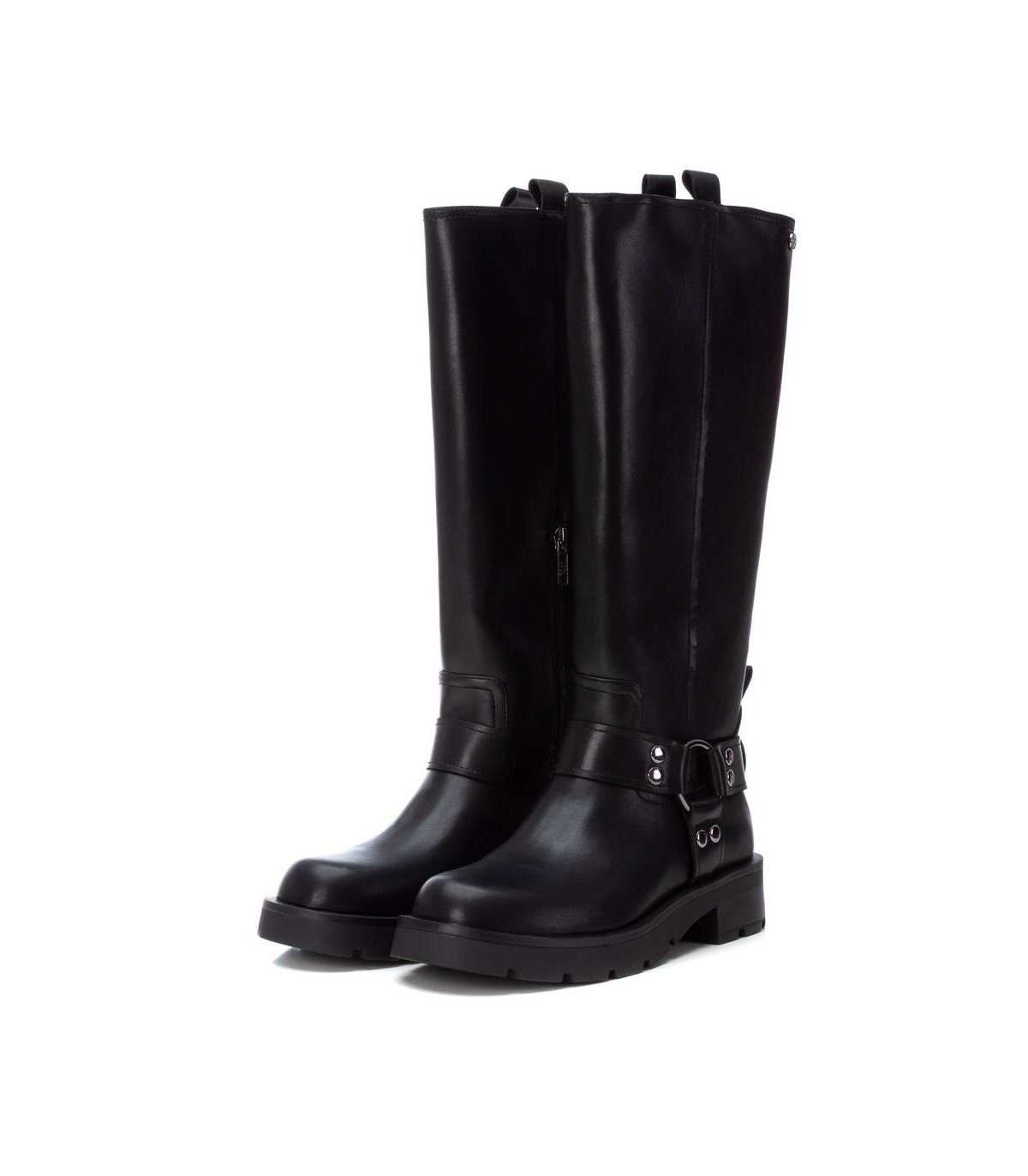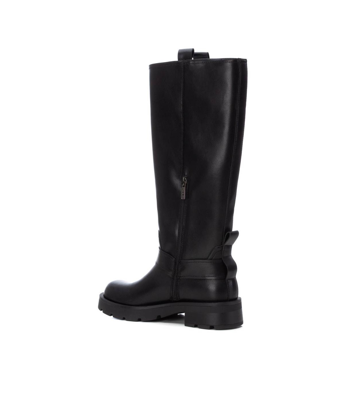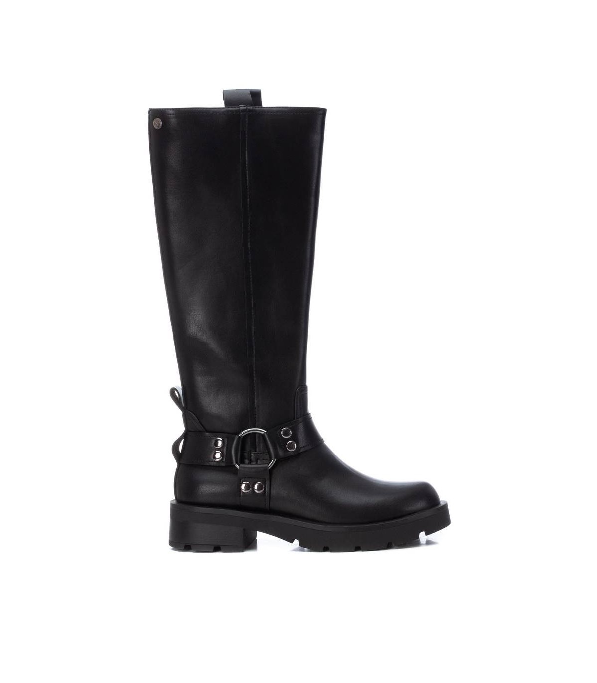 Bota de mujer, de la marca Xti. Fabricado en un material que imita la piel. Caña alta. Cierre mediante cremallera lateral para mayor comodidad. Suela gruesa dentada antideslizante. Este modelo ha obtenido el certificado vegano por la organización mundial PETA (Organización de los derechos de los animales).