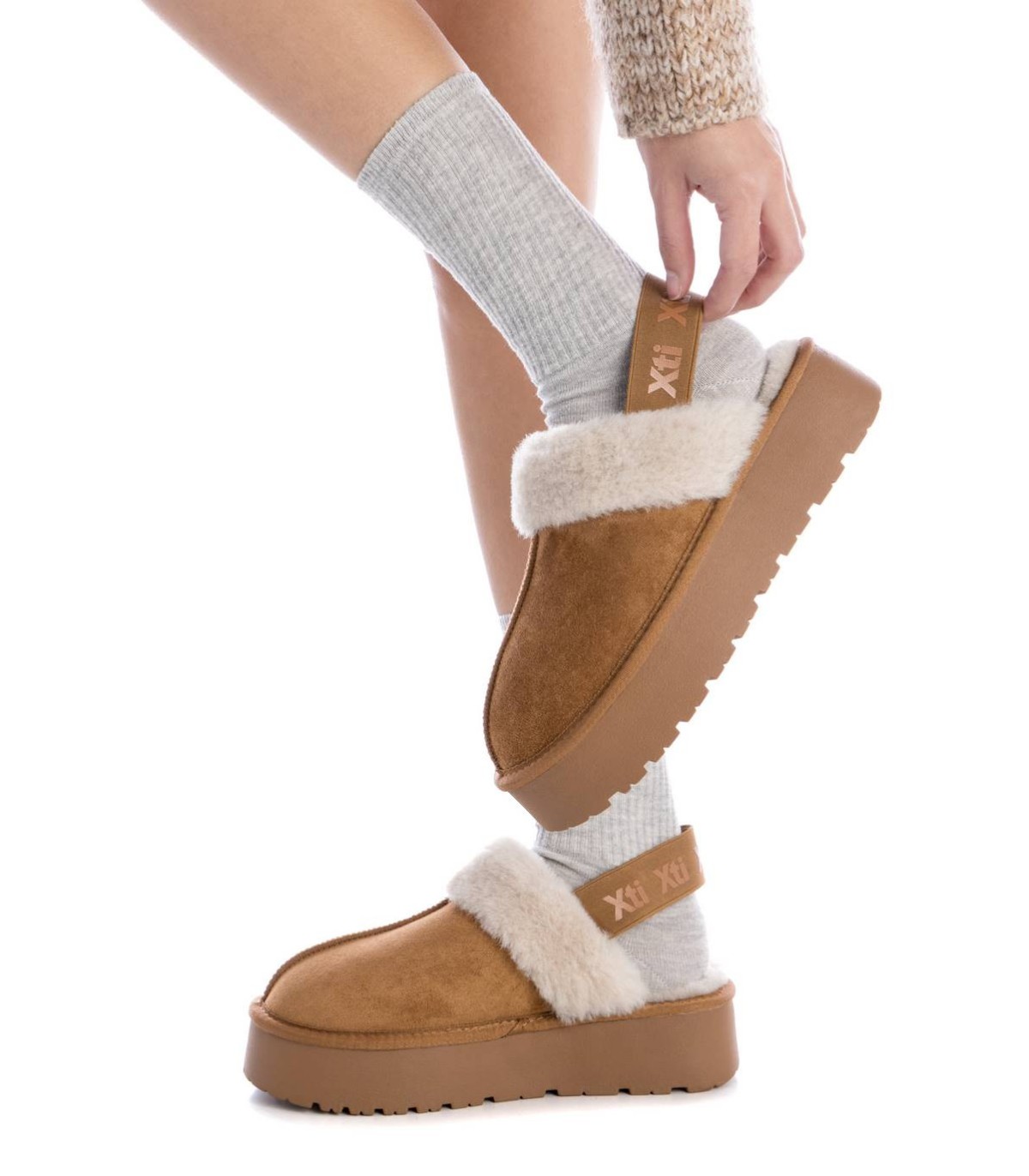 Zapatilla de mujer, de la marca Xti. Fabricado en una suave antelina. Zapatilla tipo australiana con goma para mayor sujeción, con pelo calentito para esos días más fríos del invierno. Este modelo ha obtenido el certificado vegano por la organización mundial PETA (Organización de los derechos de los animales).