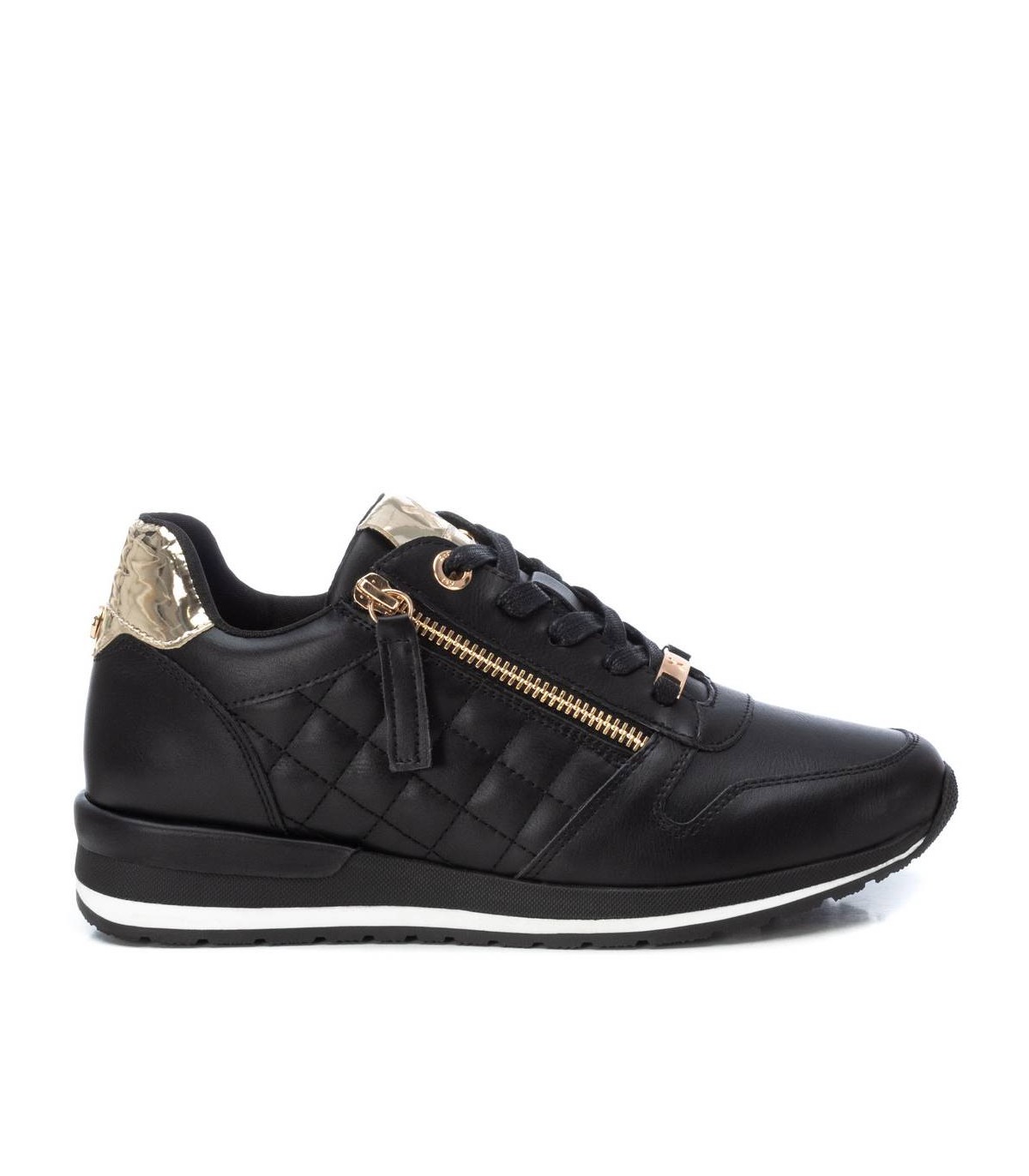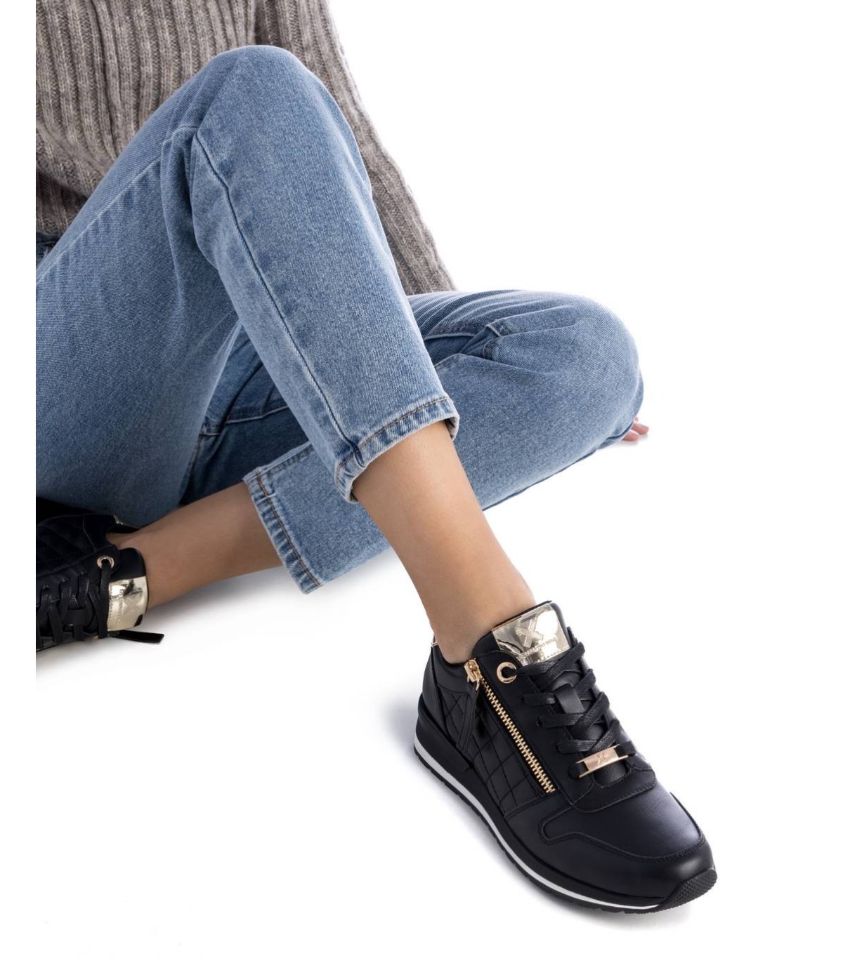 Zapatilla de mujer de la marca Xti. Fabricado en un material que imita la piel. Cierre mediante cremallera y cordones ajustables. Detalles acolchados y metalizados. Suela gruesa antideslizante. Con plantilla extraíble. Este modelo ha obtenido el certificado vegano por la organización mundial PETA (Organización de los derechos de los animales).