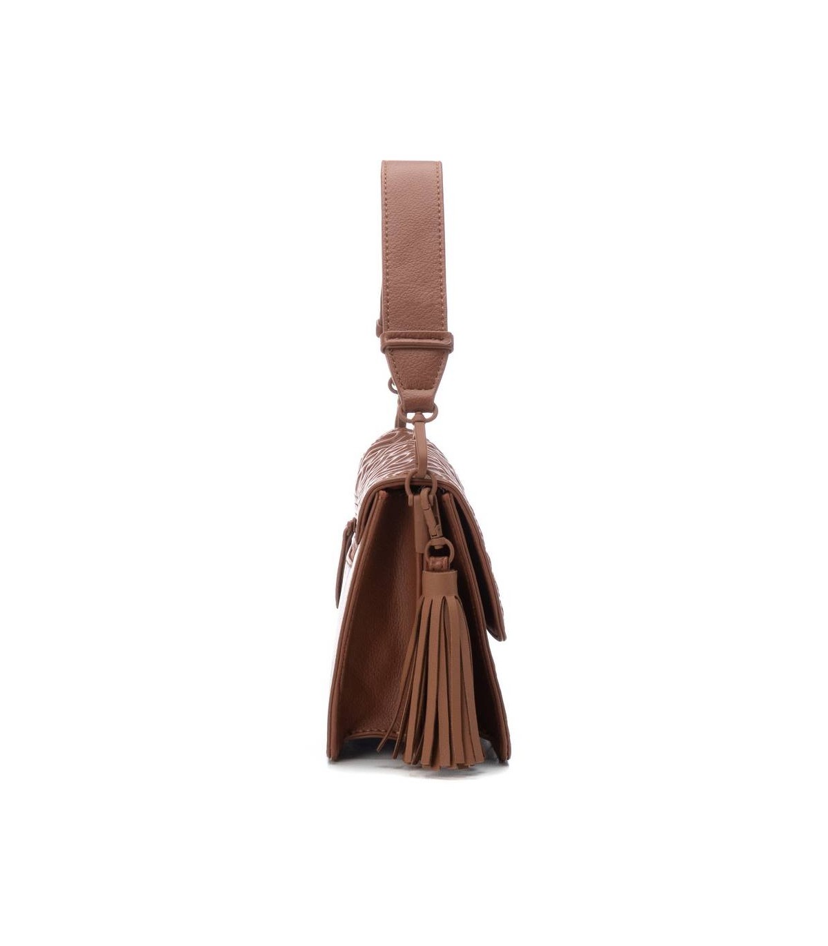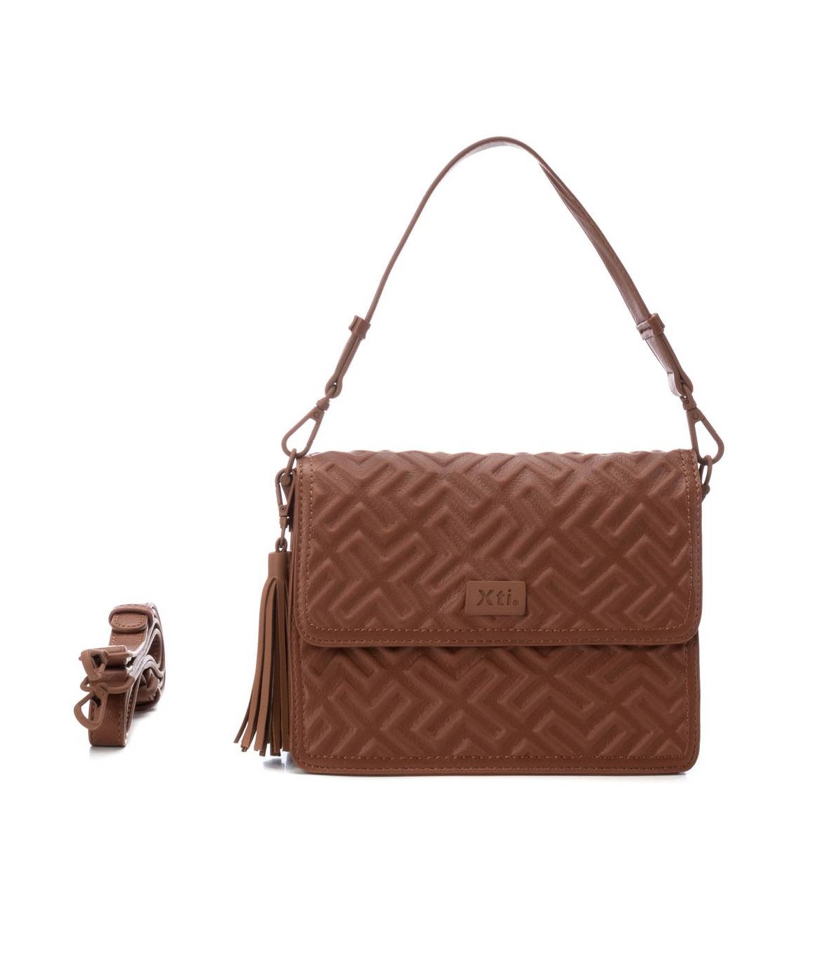 Bolso bandolera pequeño de mujer, de la marca Xti. Fabricado en un material que imita la piel con relieve decorativo. Diseño cómodo y práctico te permitirá llevar todo lo esencial sin la necesidad de cargar con un bolso demasiado voluminoso. Se puede llevar al hombro o cruzado gracias al asa bandolera. Medidas 17x21x8cm