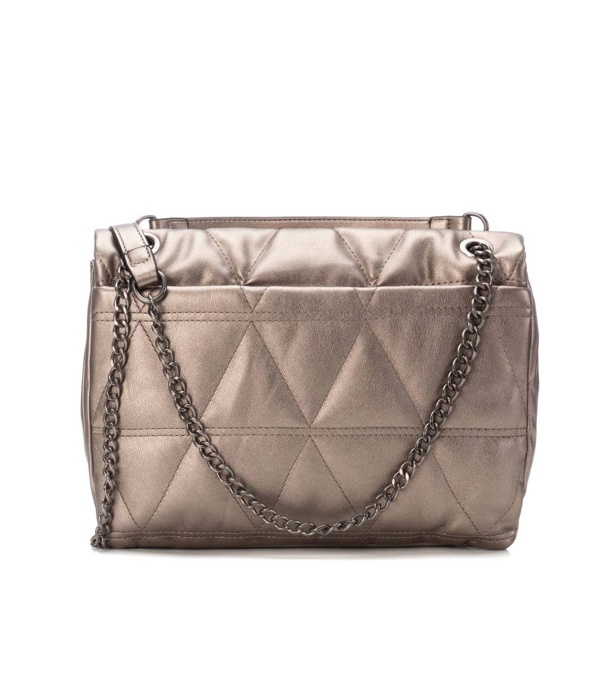 Bolso bandolera pequeño, de la marca Xti. Fabricado en material que imita la piel con efecto acolchado marcado por pespunte. Cadena bandolera metálica al tono. Cierre mediante cremallera. Un básico de invierno que no te puedes perder esta temporada. Medidas 23x29x8cm